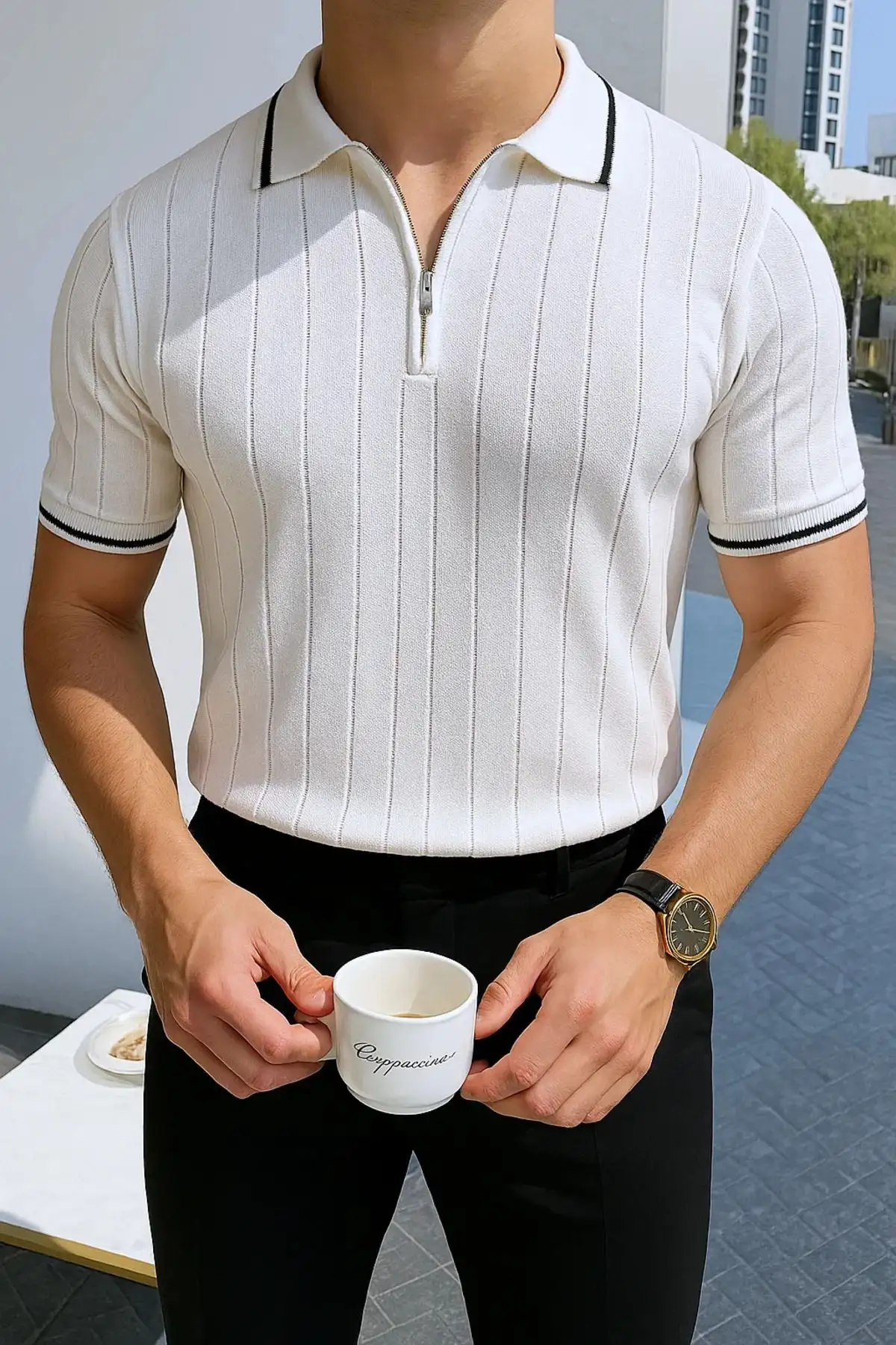 مناسب برای استفاده روزمره، مهمانیها و یا حتی ورزشهای سبک میباشد. این پولو با زیپ، به شما اجازه میدهد تا به راحتی آن را بپوشید و درآورید.