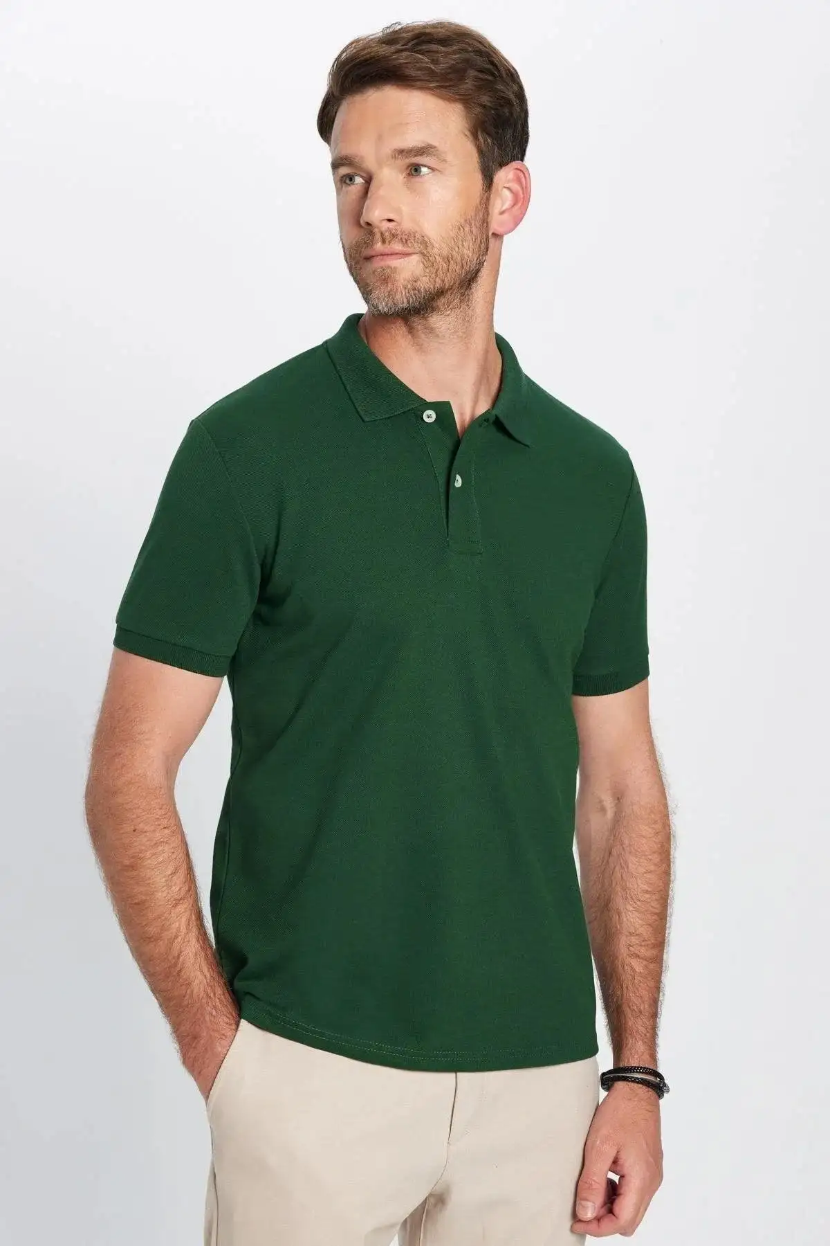 پک ۵ تایی تیشرت یقه polo با طرح ساده در رنگهای قهوهای، سرمهای، سبز تیره، شن و مشکی از جنس پنبه و با فیت اسلیم – 10337