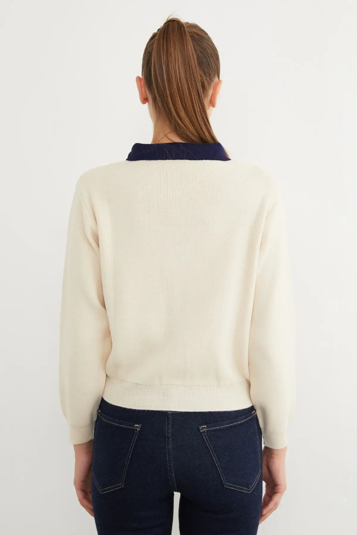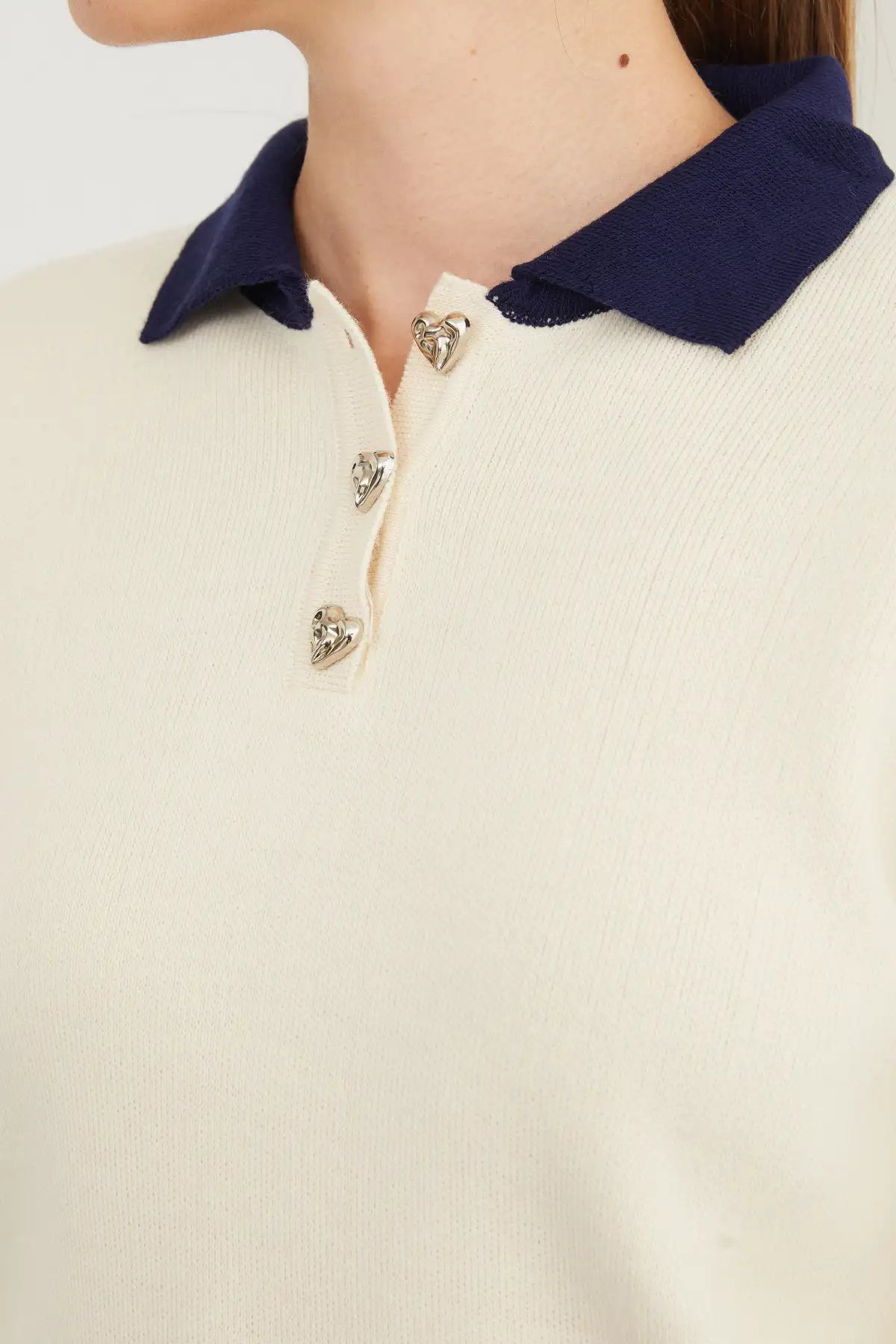 پیراهن با یقه نپ سوزنی نیمه‌دکمه‌ای