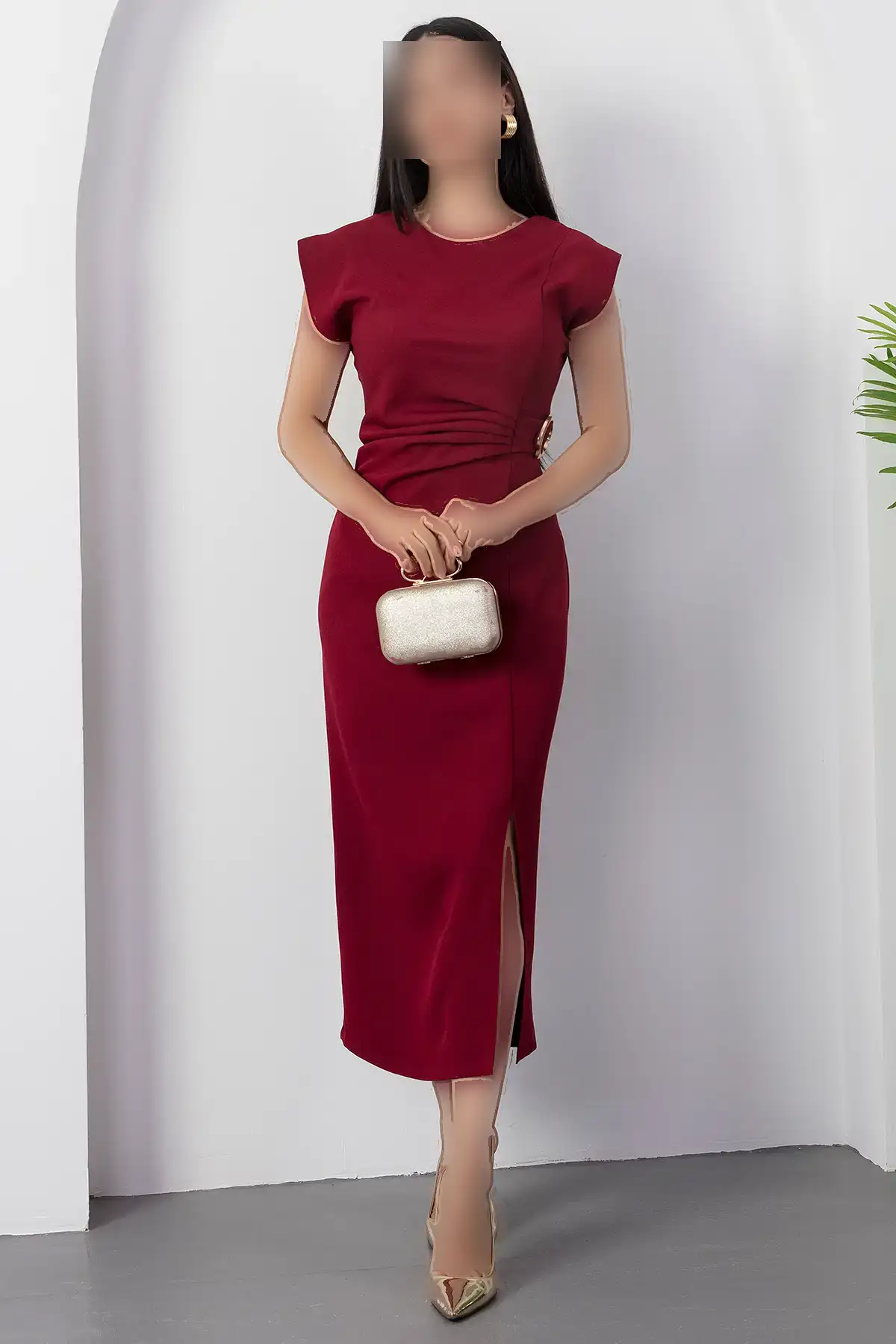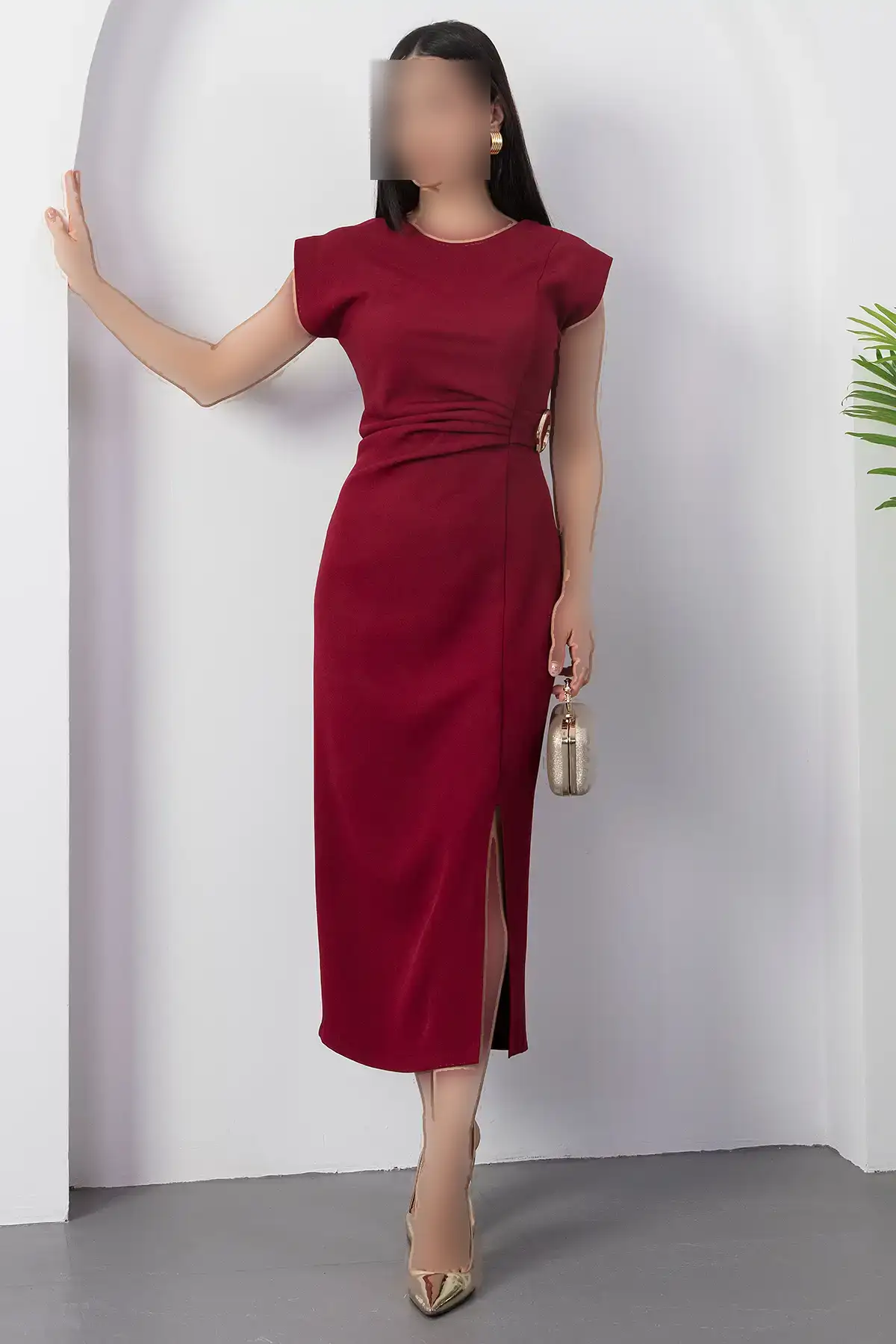 لباس با جزئیات قلاب فلزی یقه V کد NY4506 - 11412