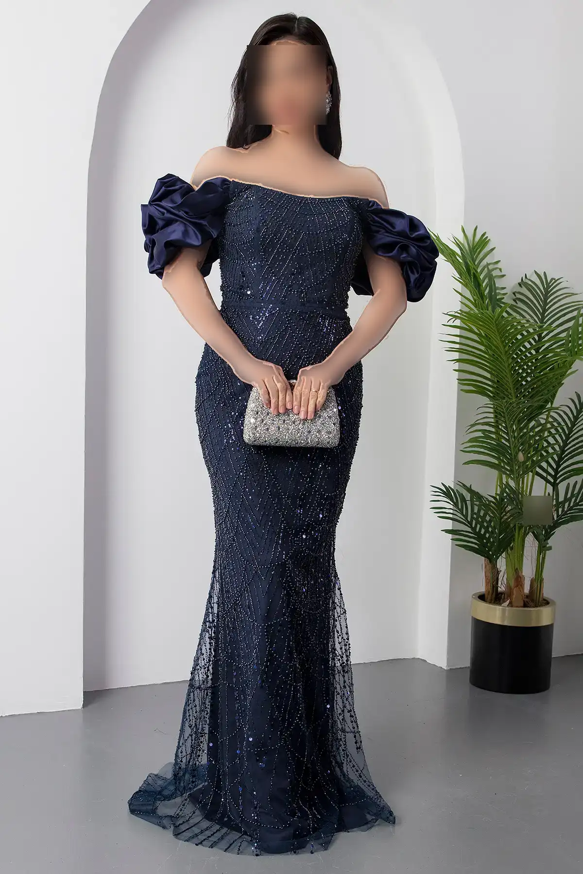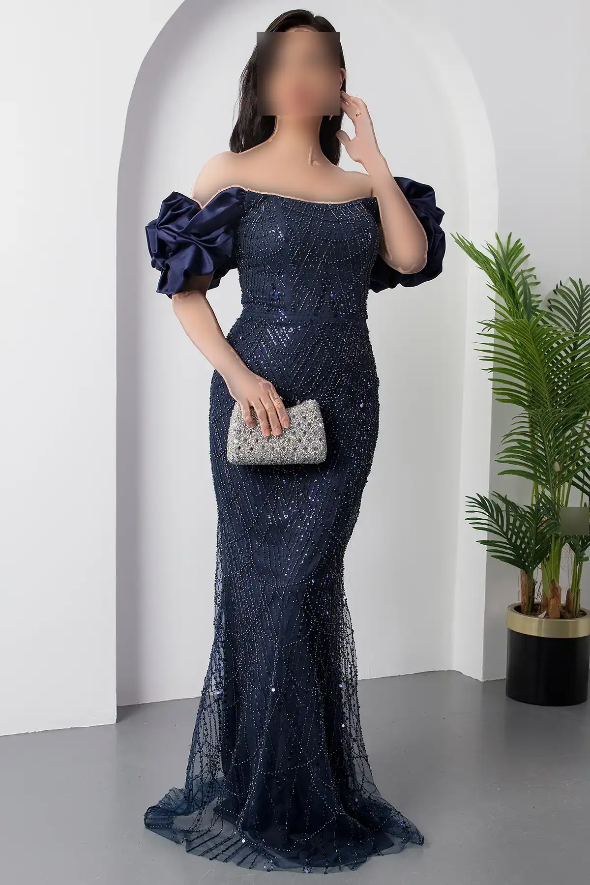 پیراهن توری ترک زنانه مرواریدی – 11409