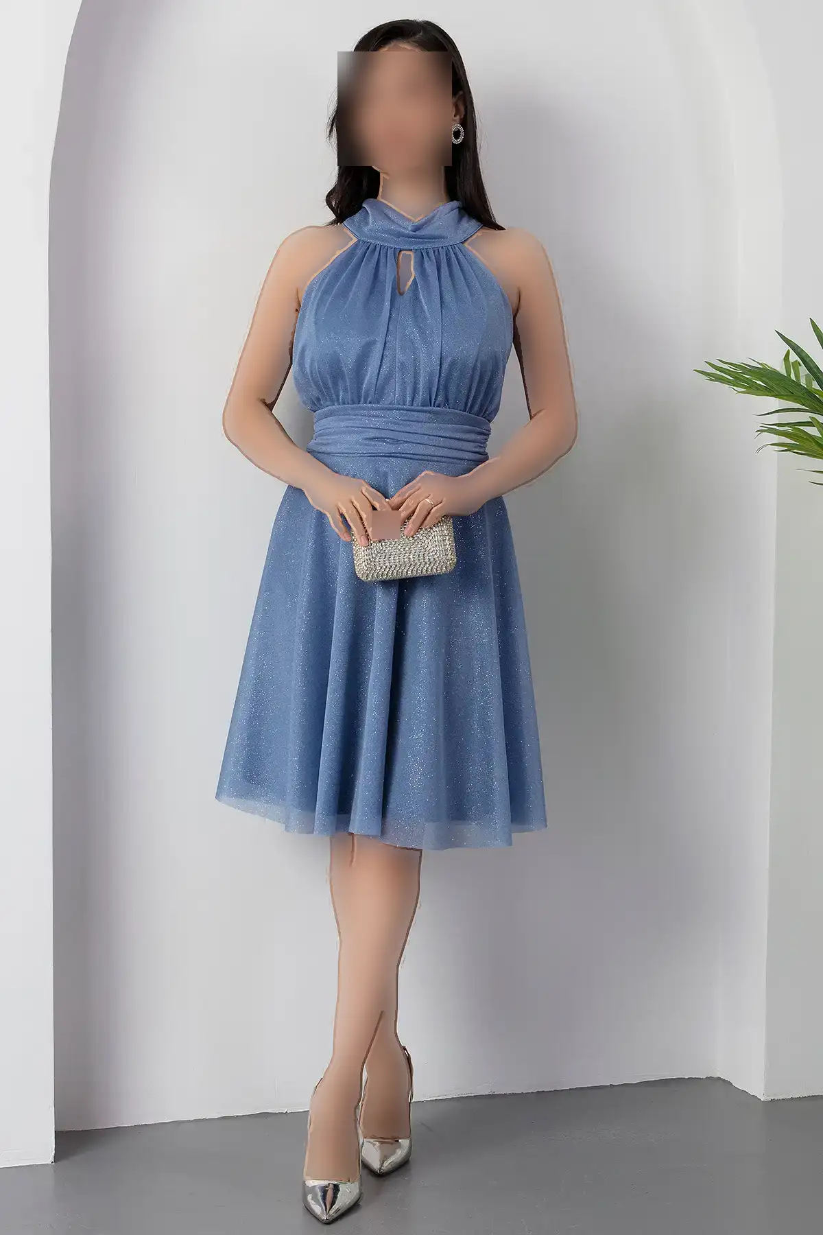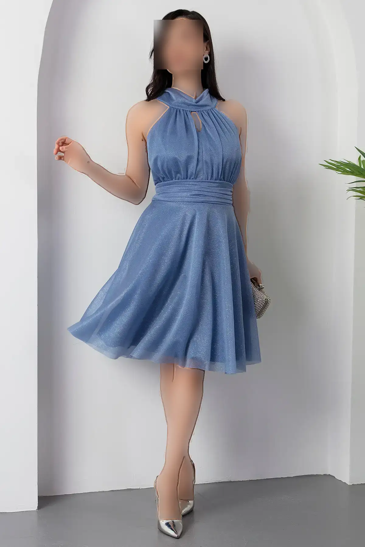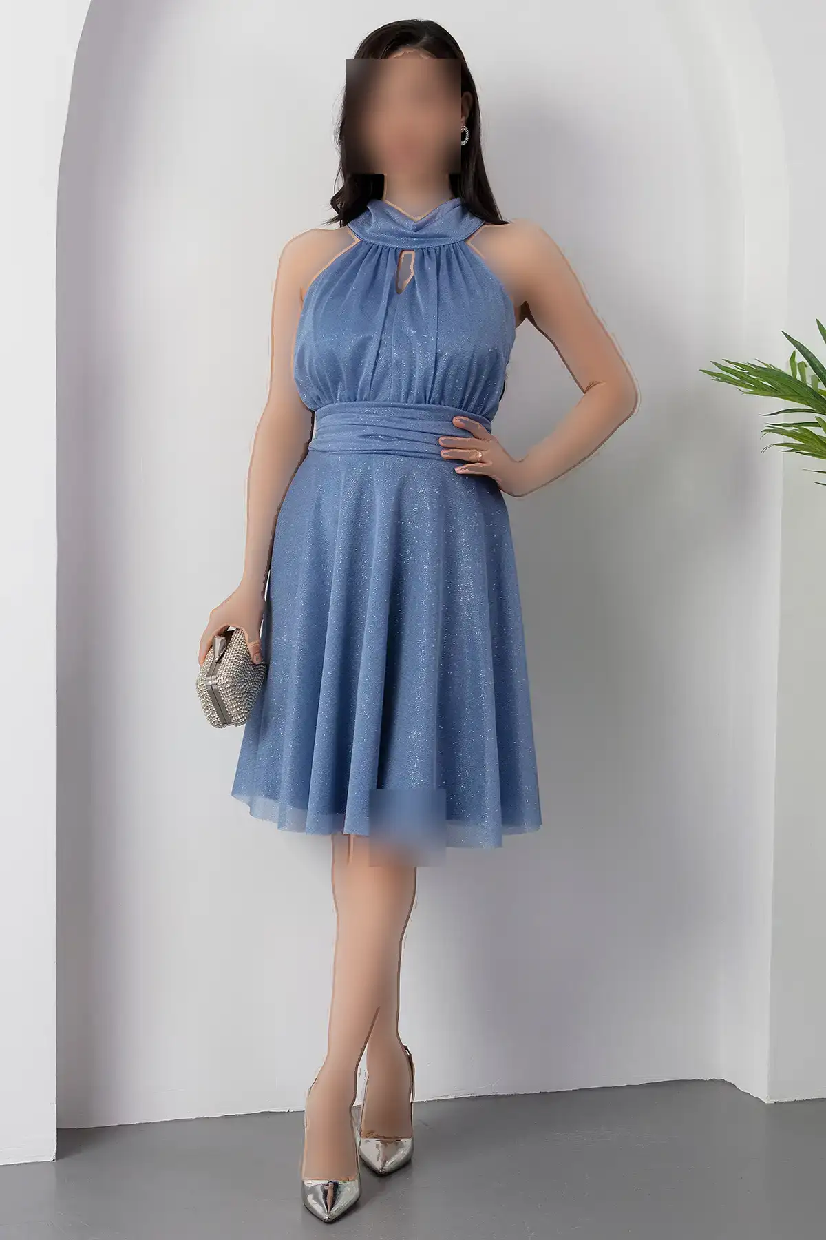 پیراهن توری نقرهای با یقه C 13376 – 11312