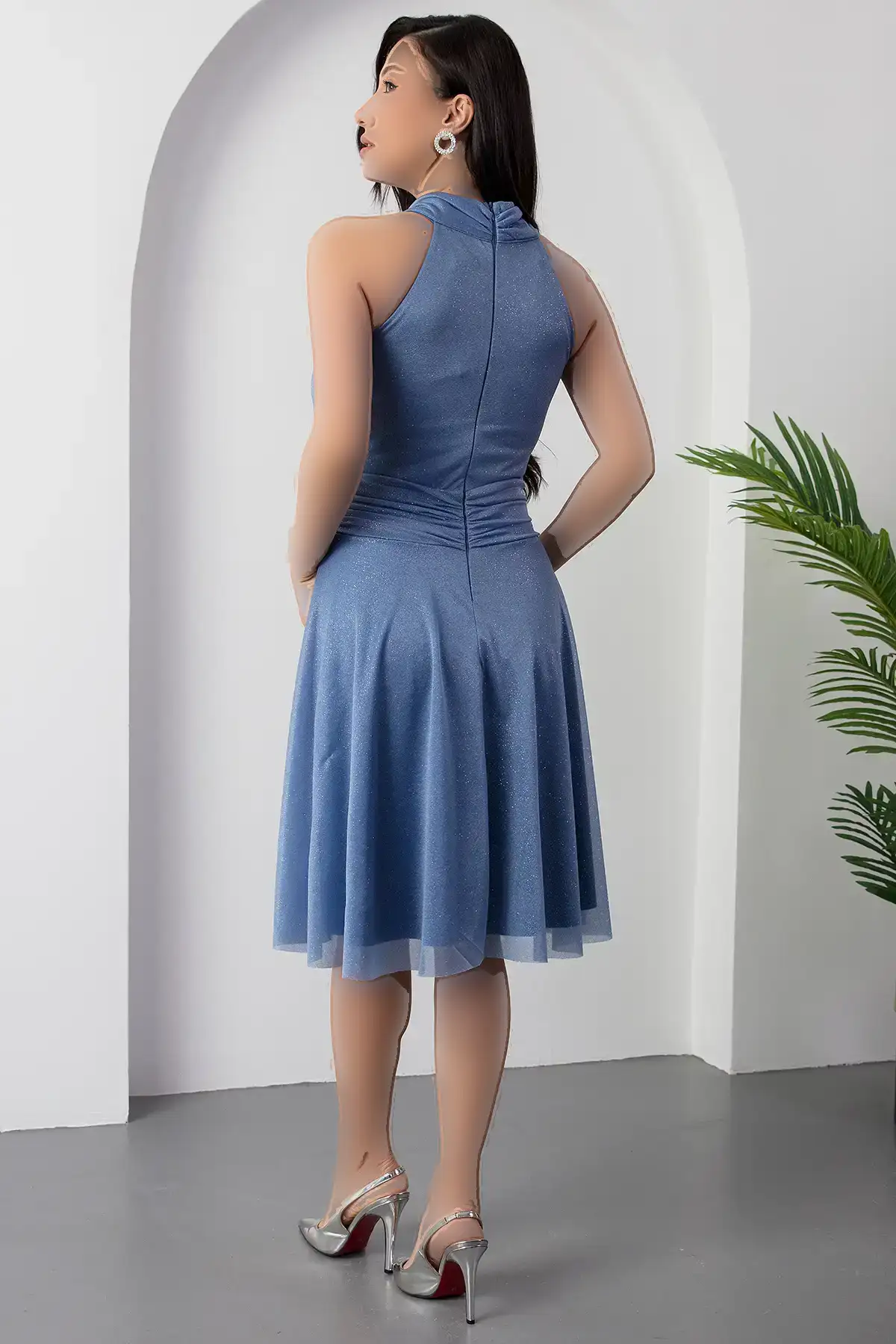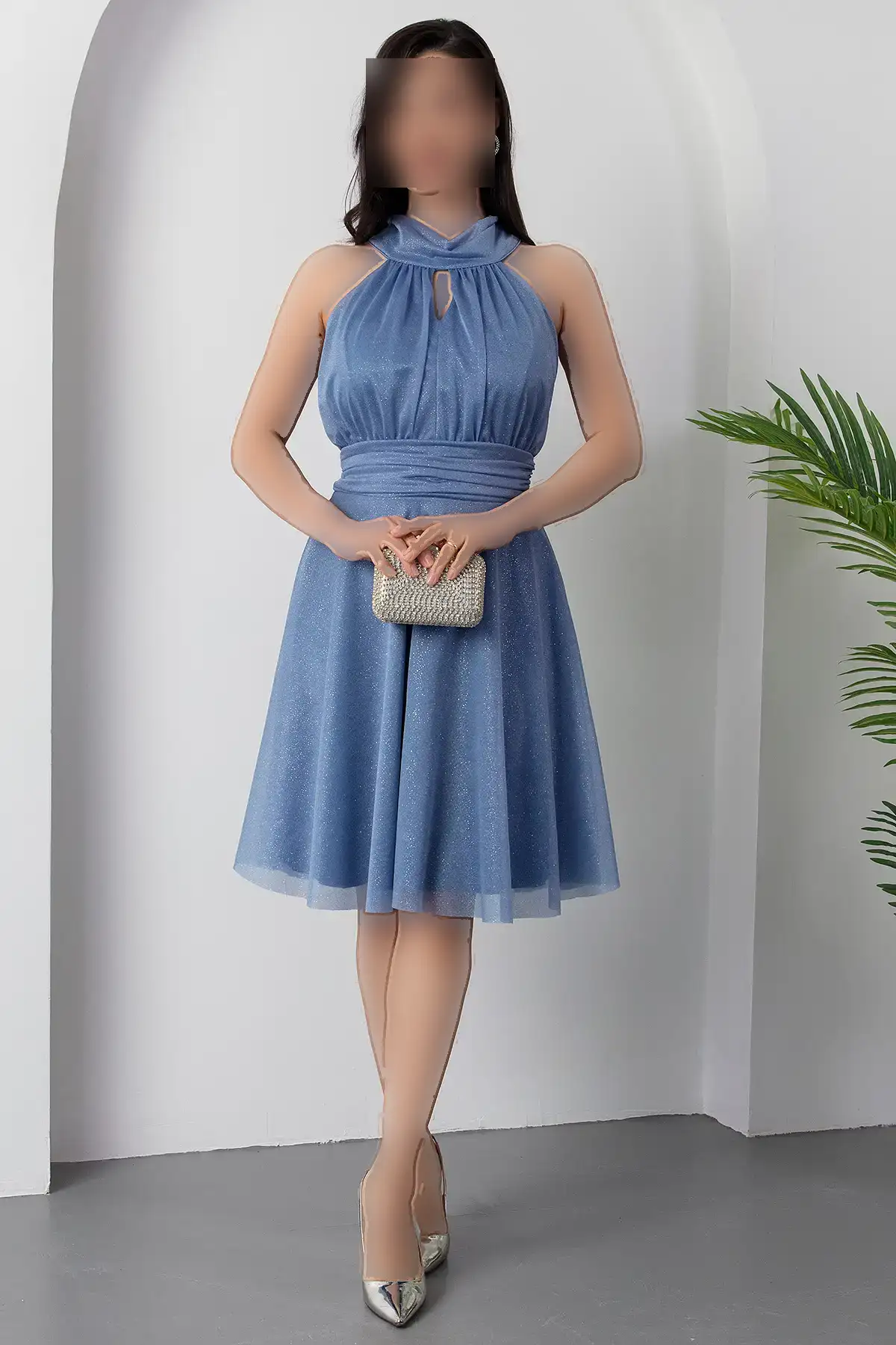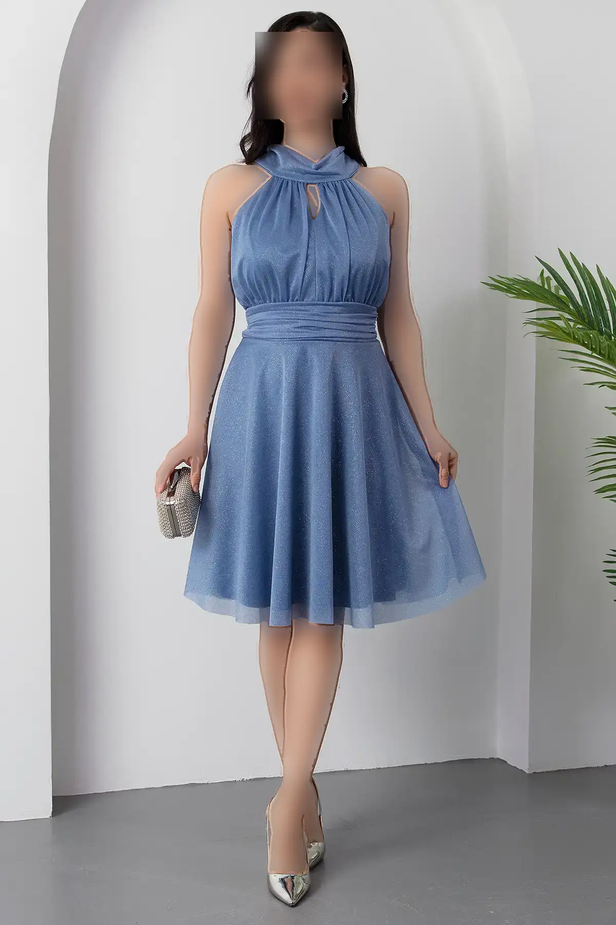 پیراهن توری نقرهای با یقه C 13376 – 11312