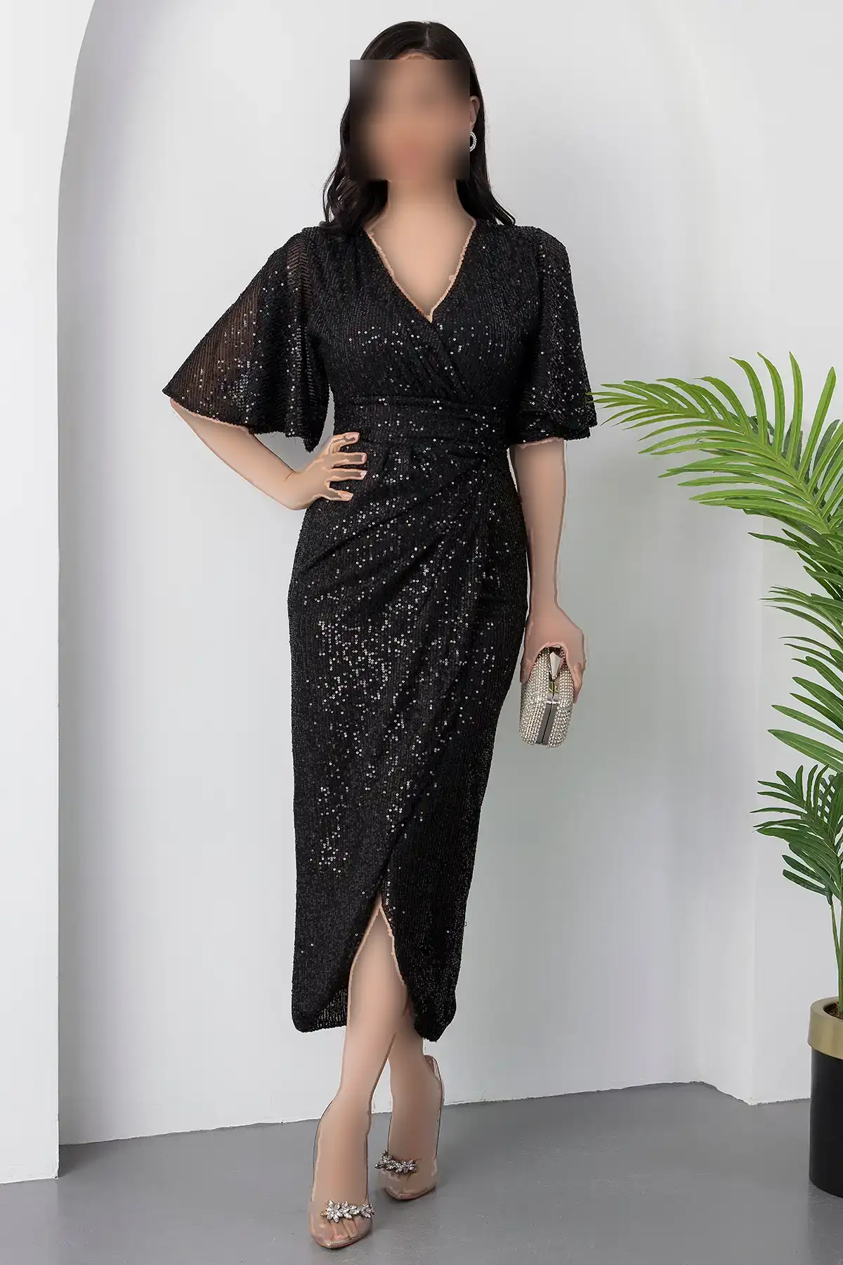 پیراهن زنانه مجلسی گزینه‌ای مناسب برای هر occasion است. این پیراهن با یقه کرواتی و چاک‌های زیبا، ظاهری شیک و متفاوت به شما می‌بخشد.