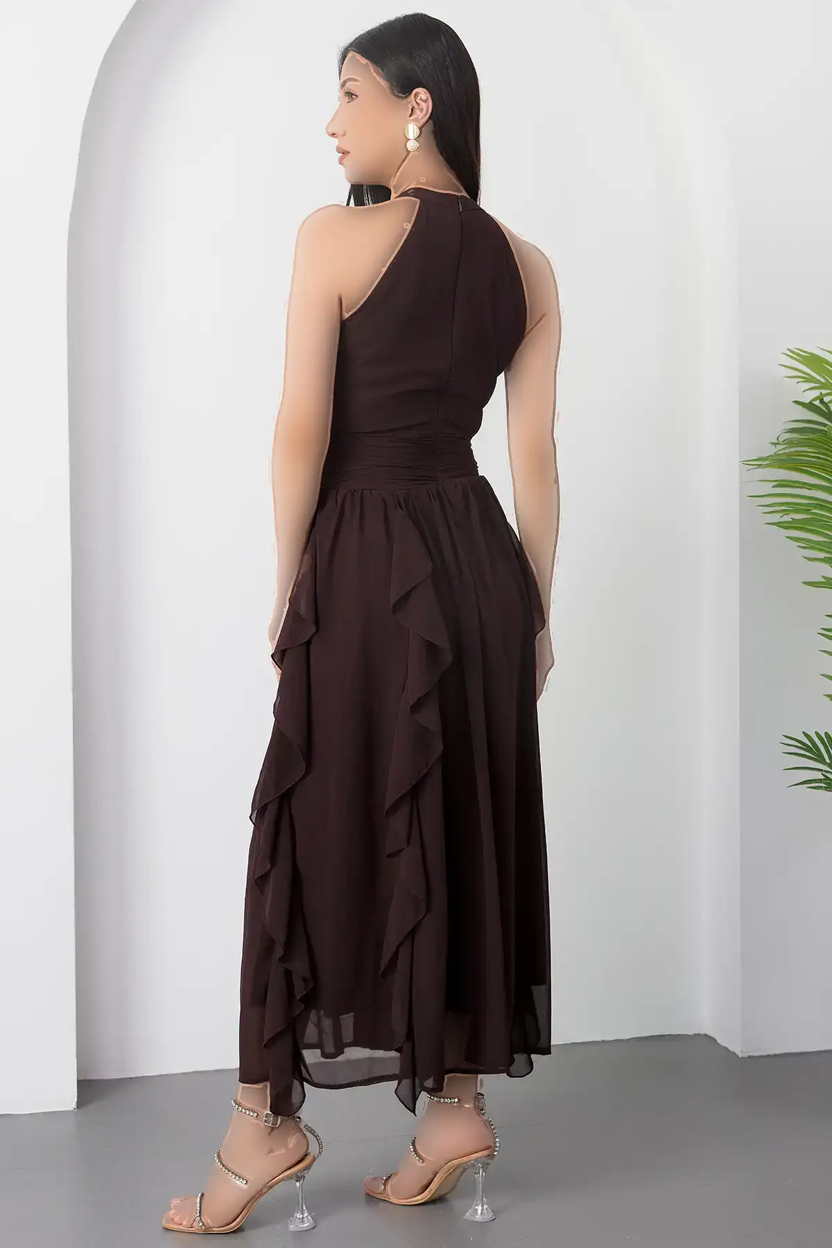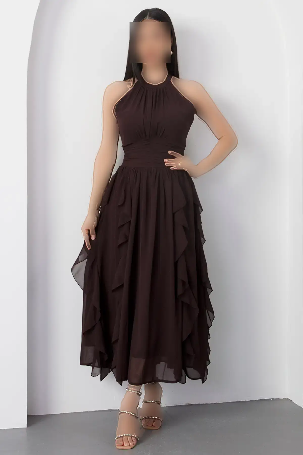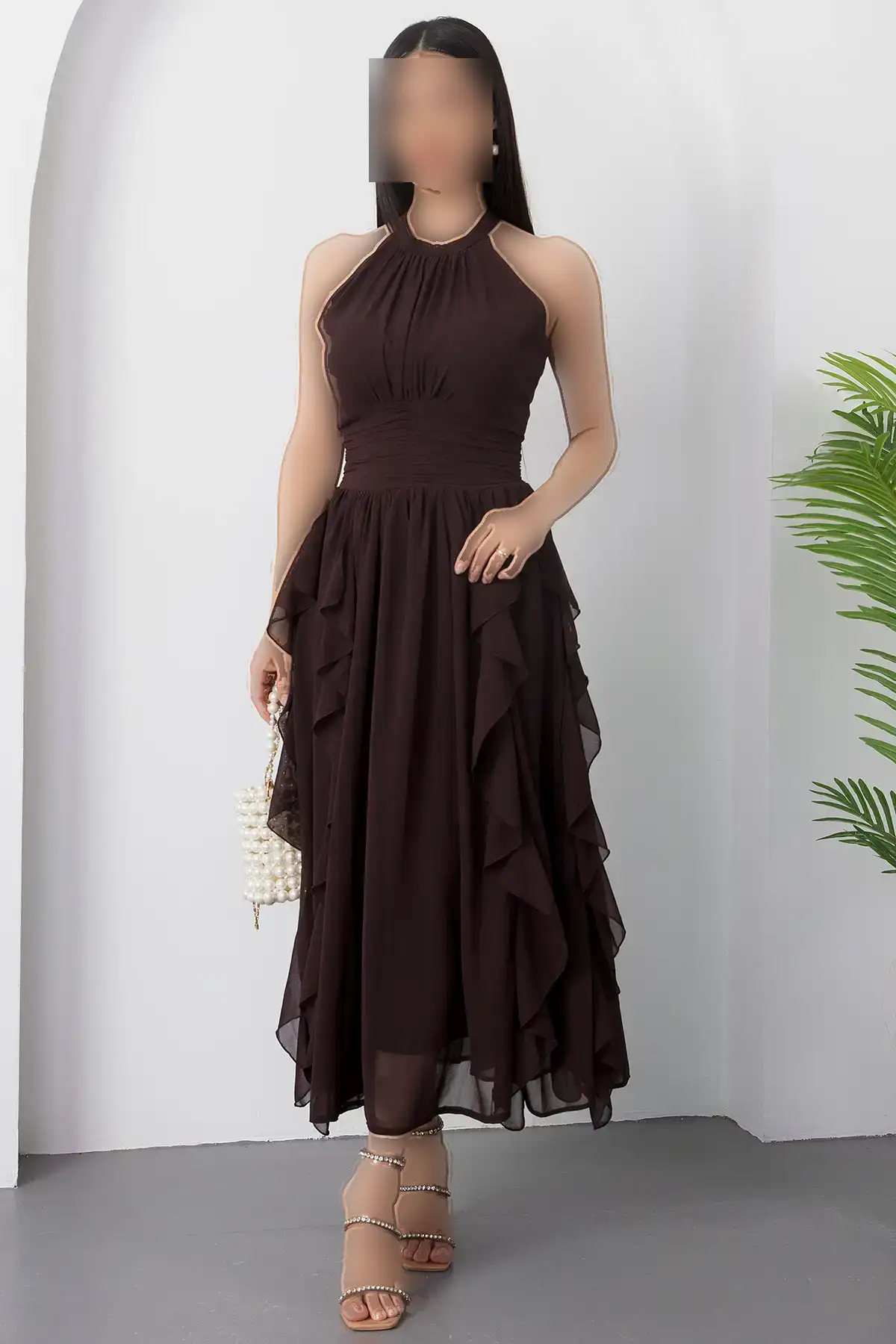پیراهن شوفونی آستین حلقهای با دامن پفدار ELS8561 – 11348