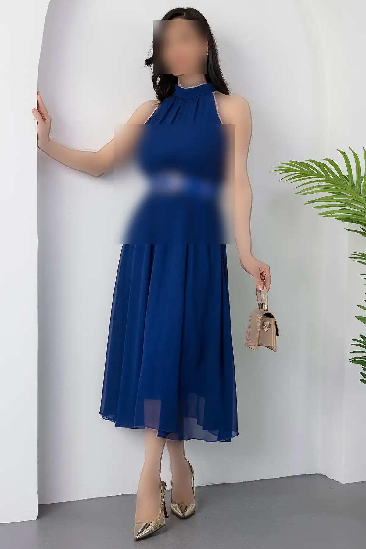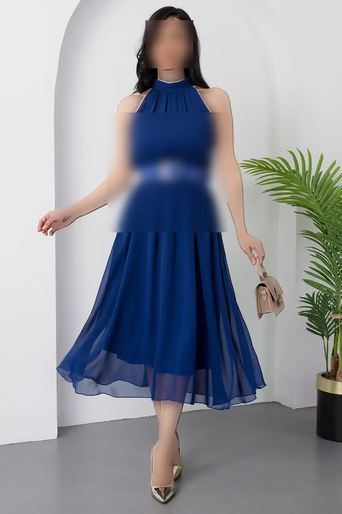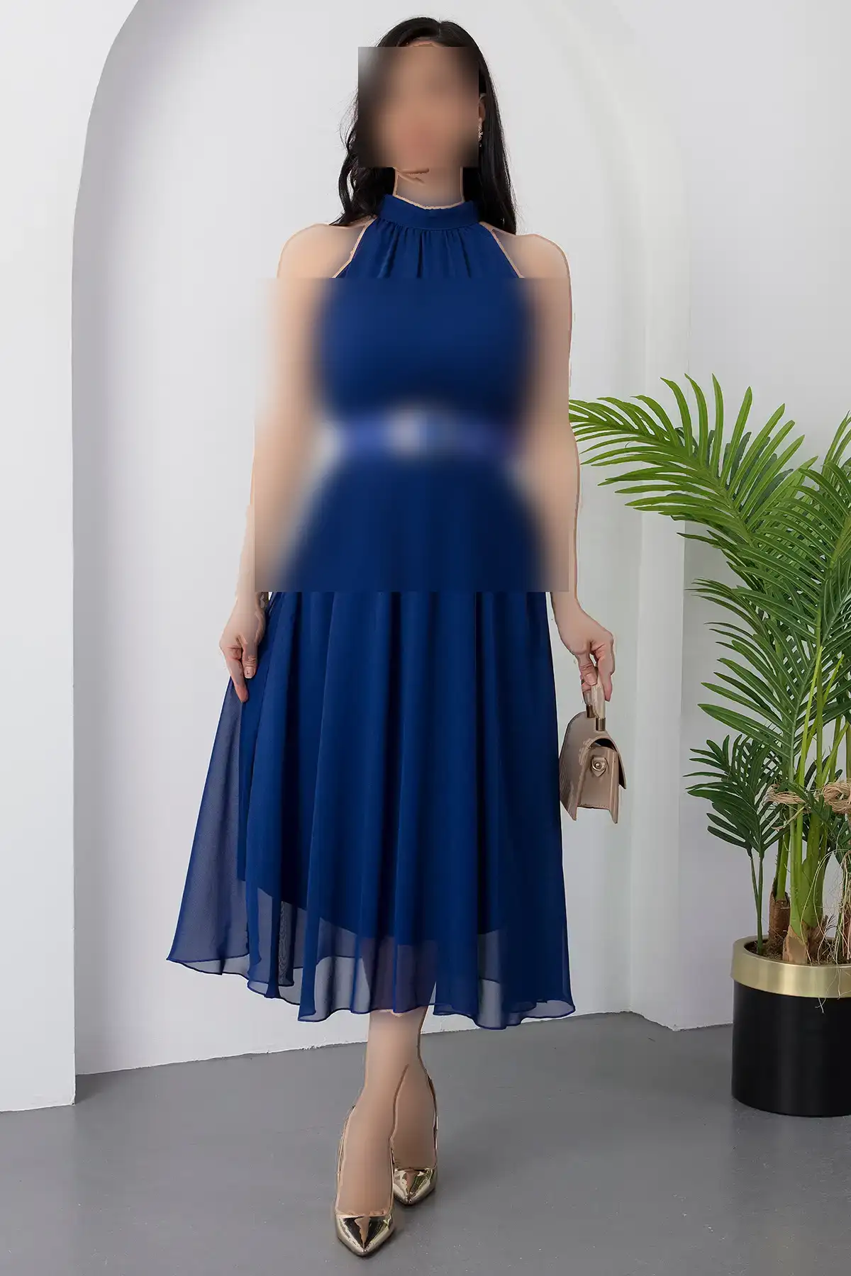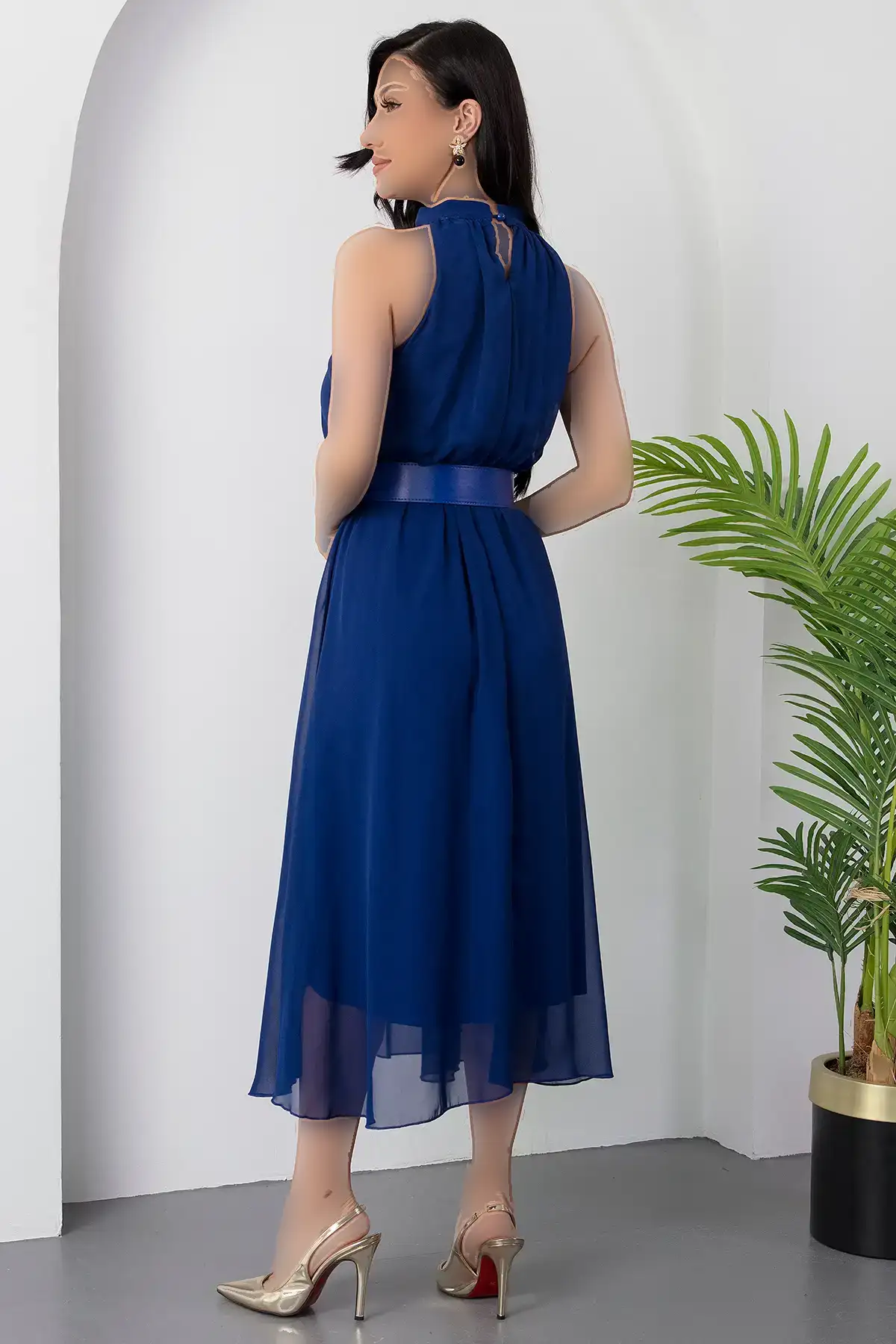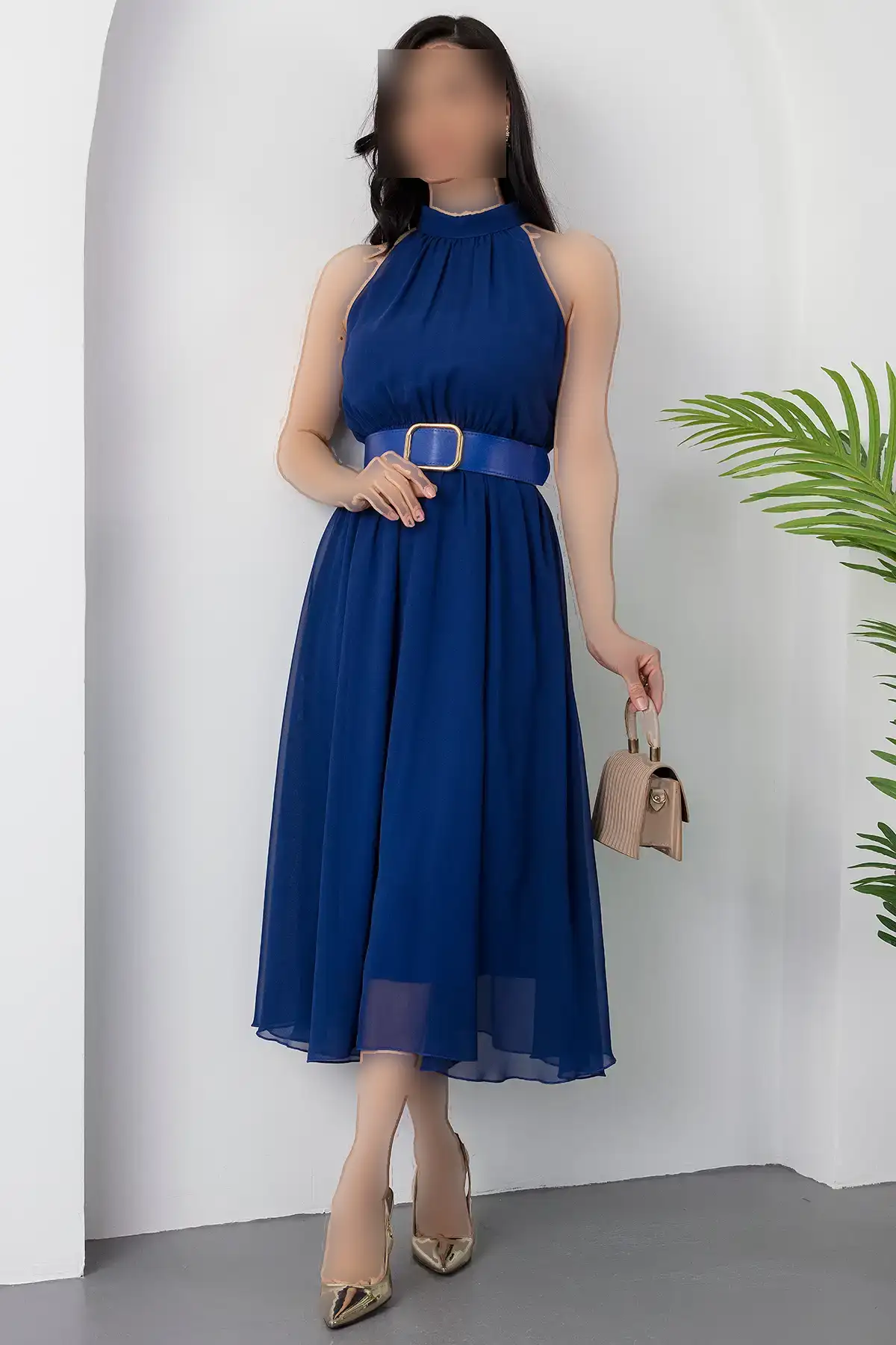 پیراهن شيفون با یقه هالتر و کمربند دار، دارای آستری مدل GRS3734 – 11391
