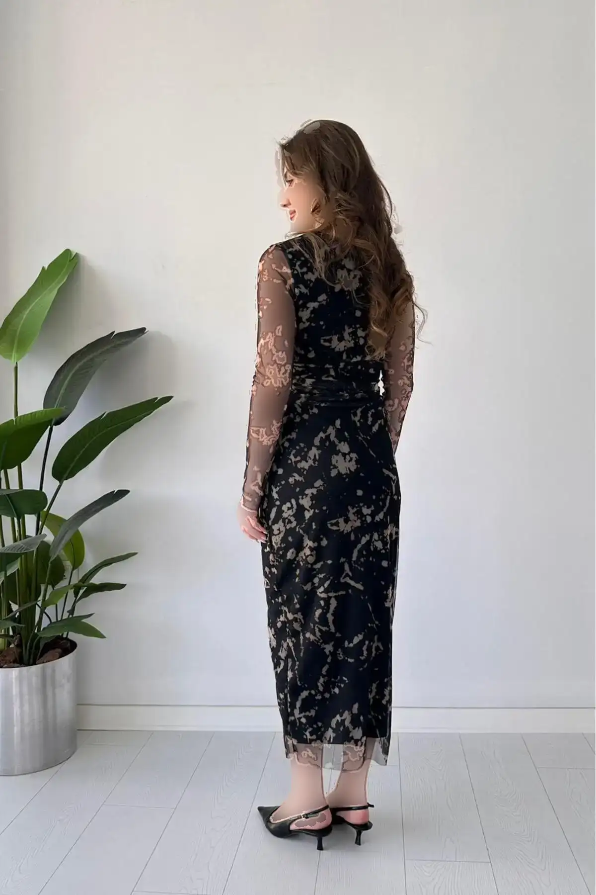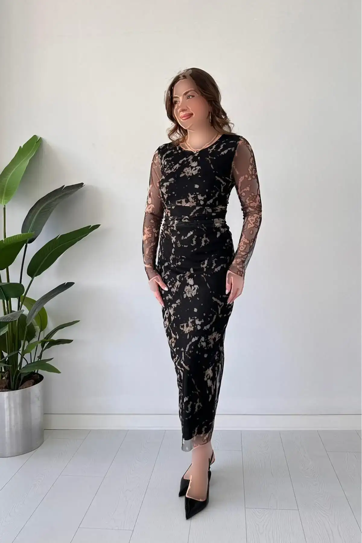 پیراهن مجلسی ترک زنانه توری سیاه – 11988
