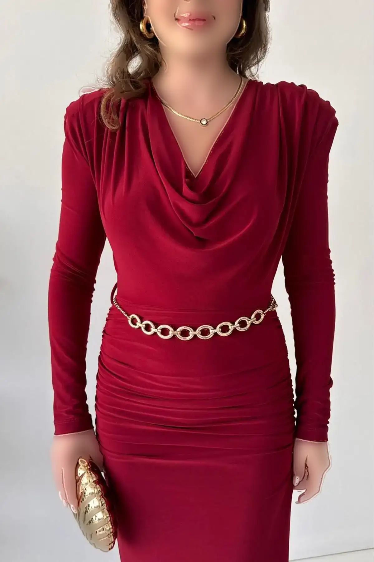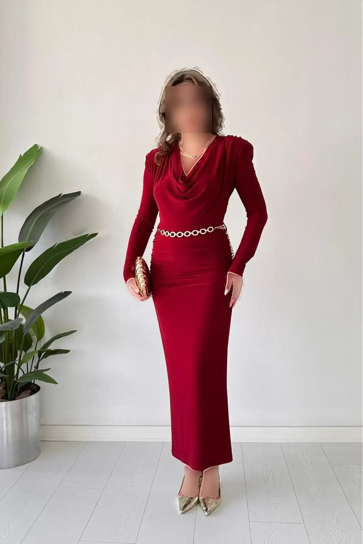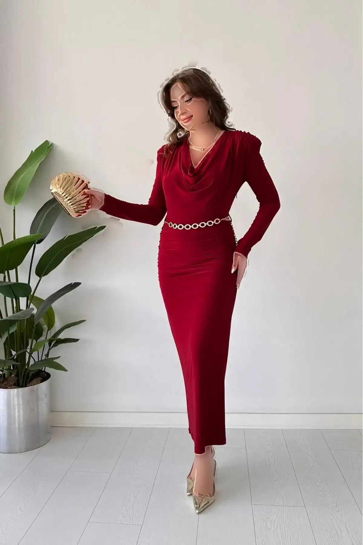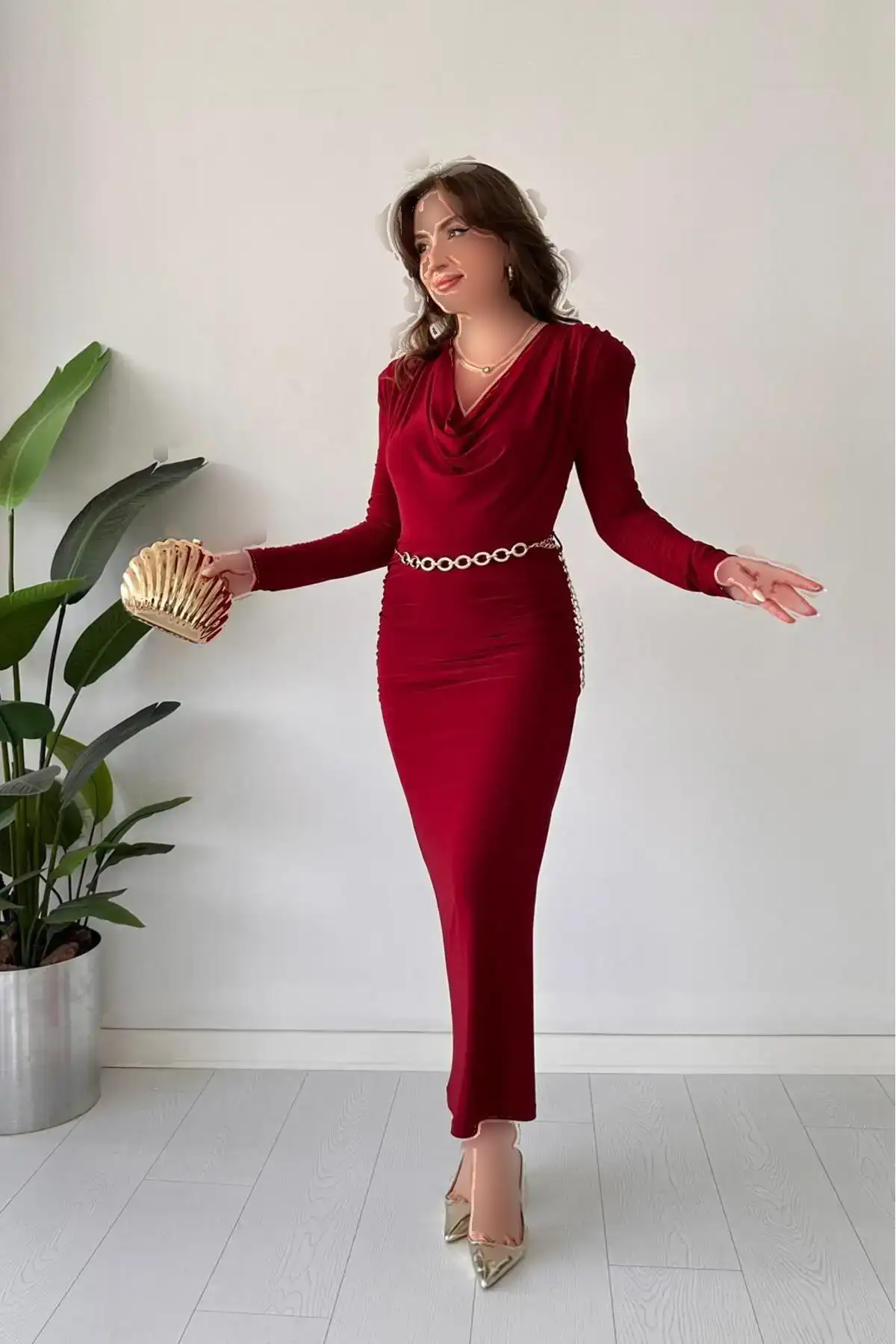 خانه » فروشگاه » پیراهن مجلسی زنانه با کمربند زنجیری رنگ زرشکی خاص- 11986