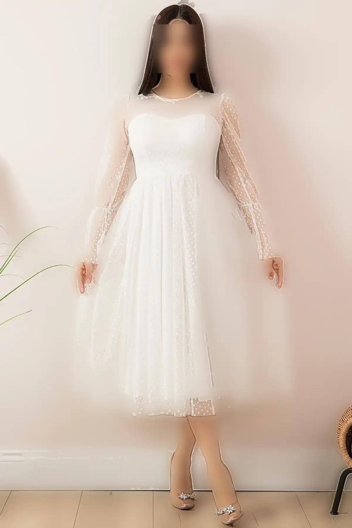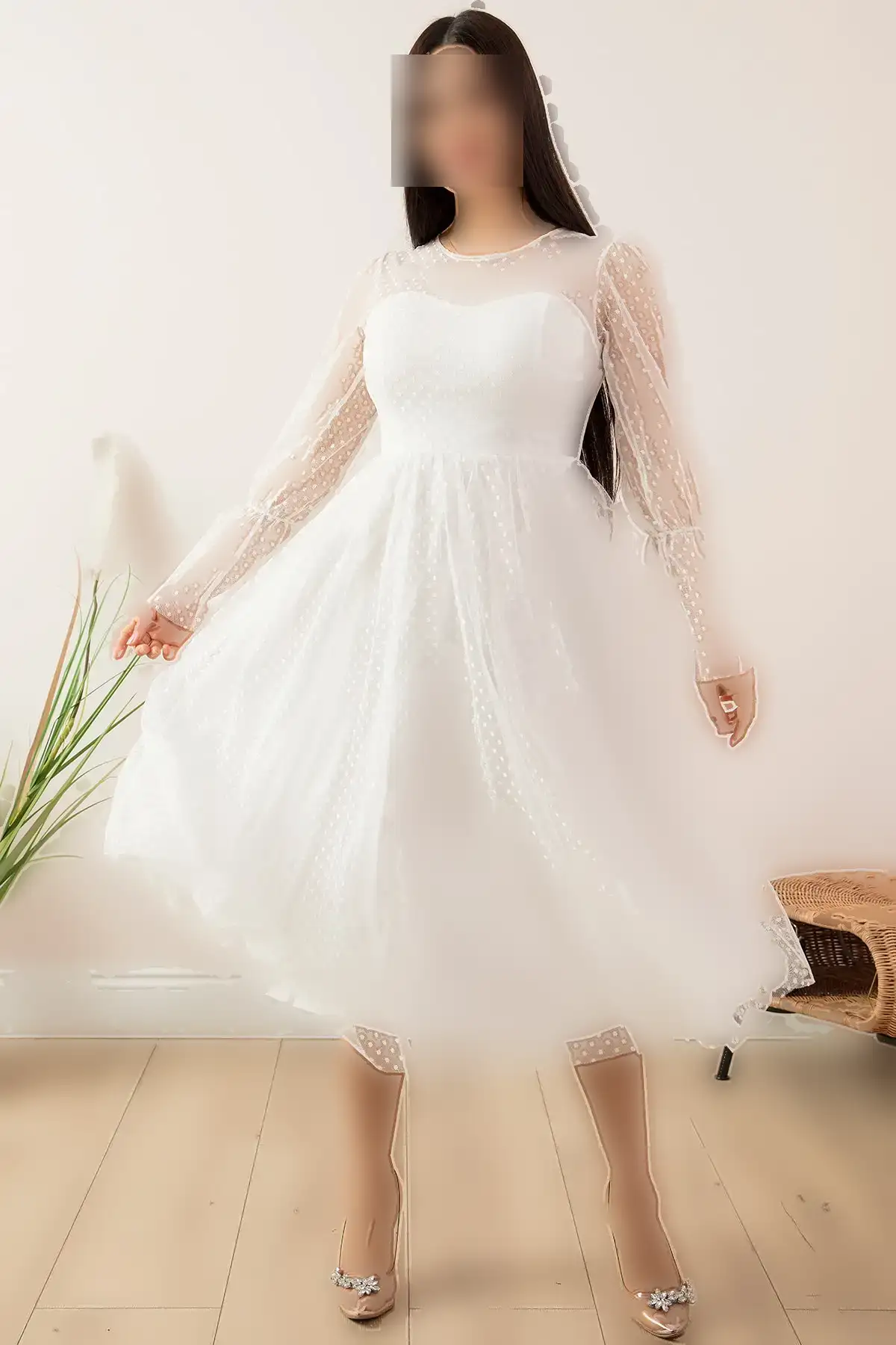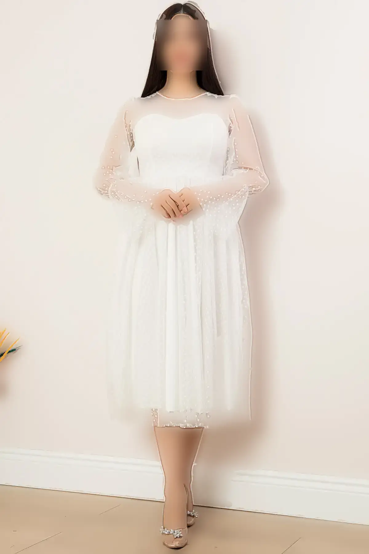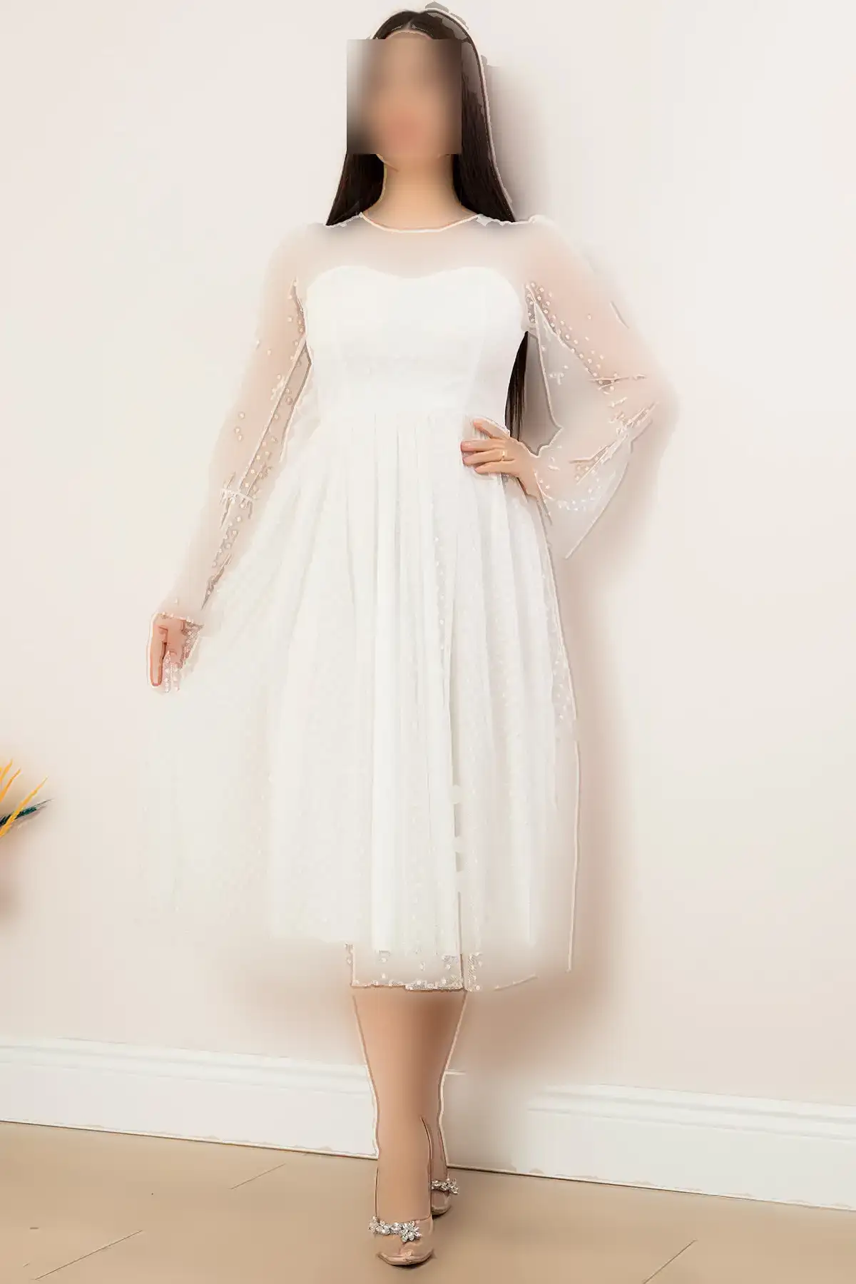 پیراهن مجلسی میدی با آستین‌های گلابی 13345 – 11371