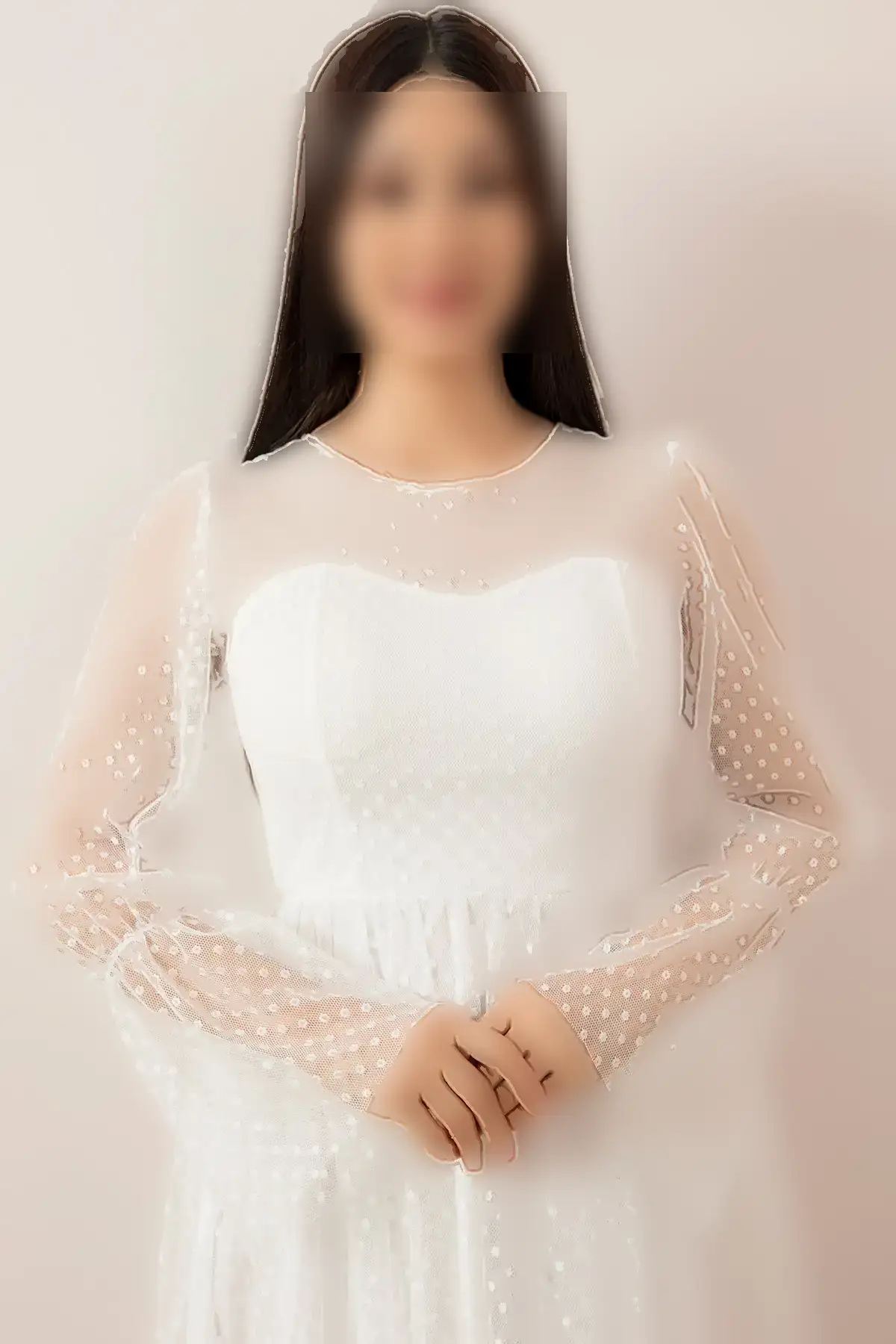 لباس شب بلند توری با آویز و لمسه دار 13278 - 11372