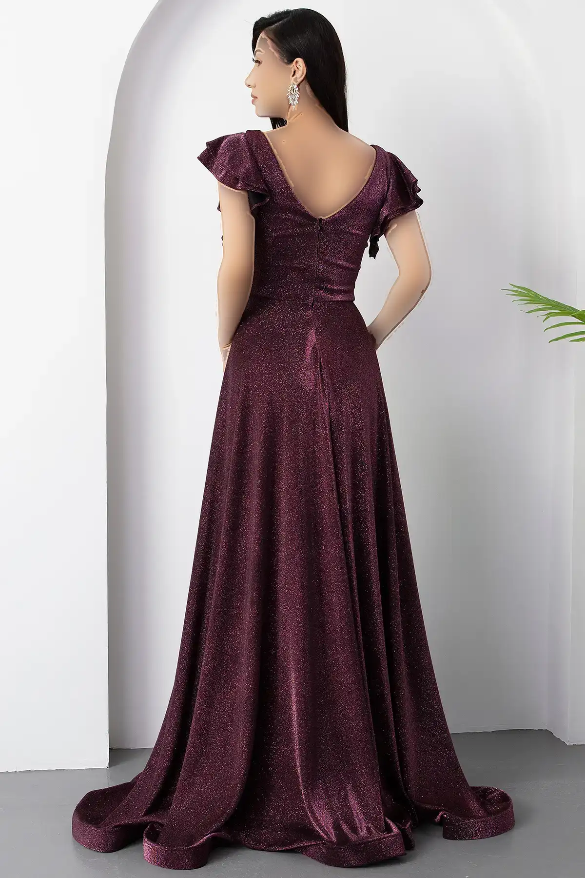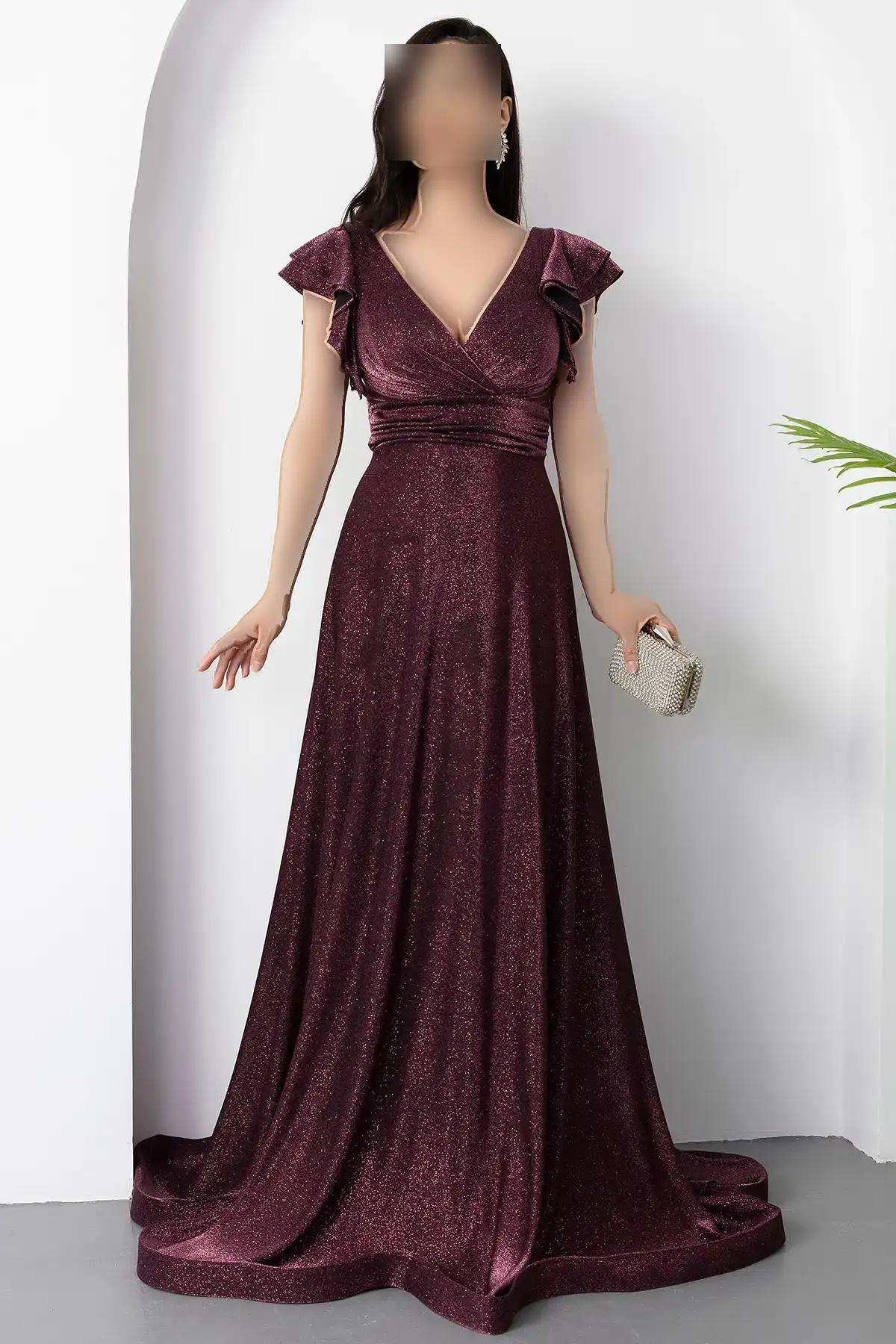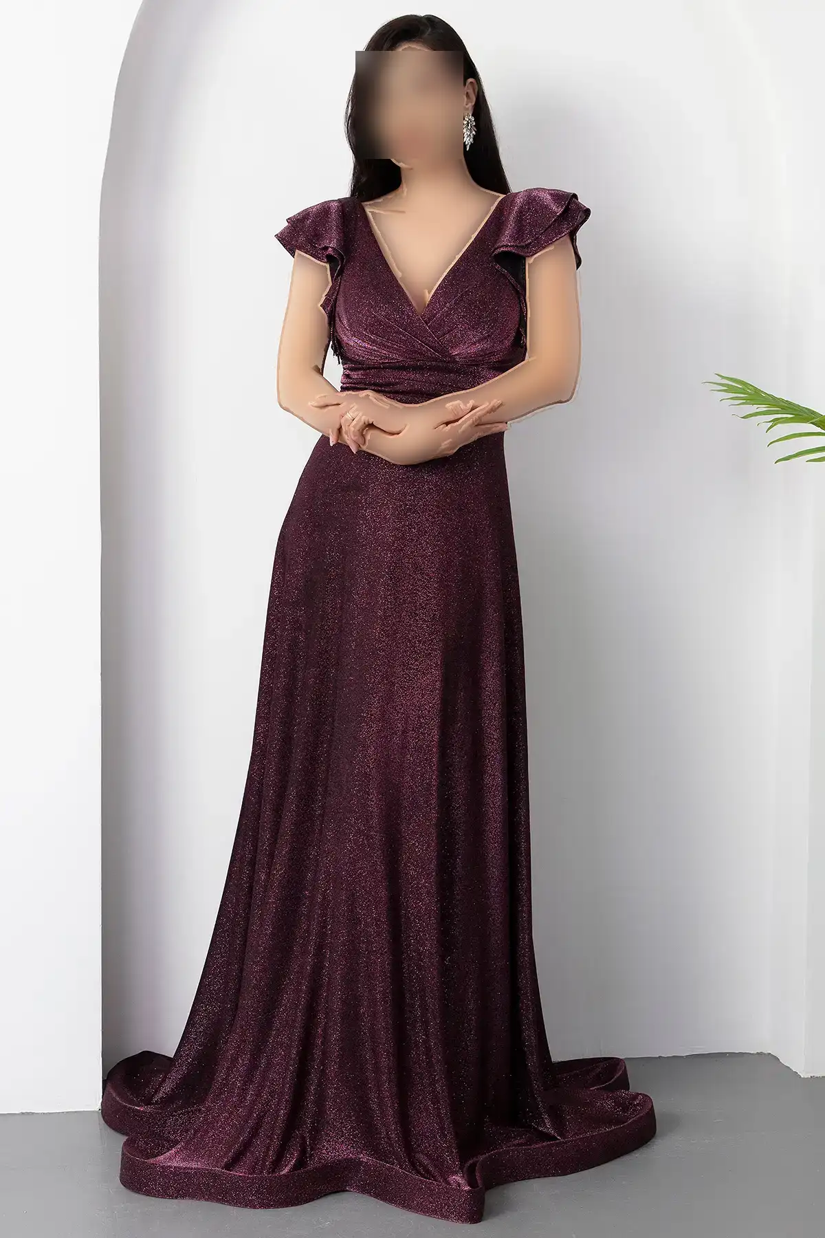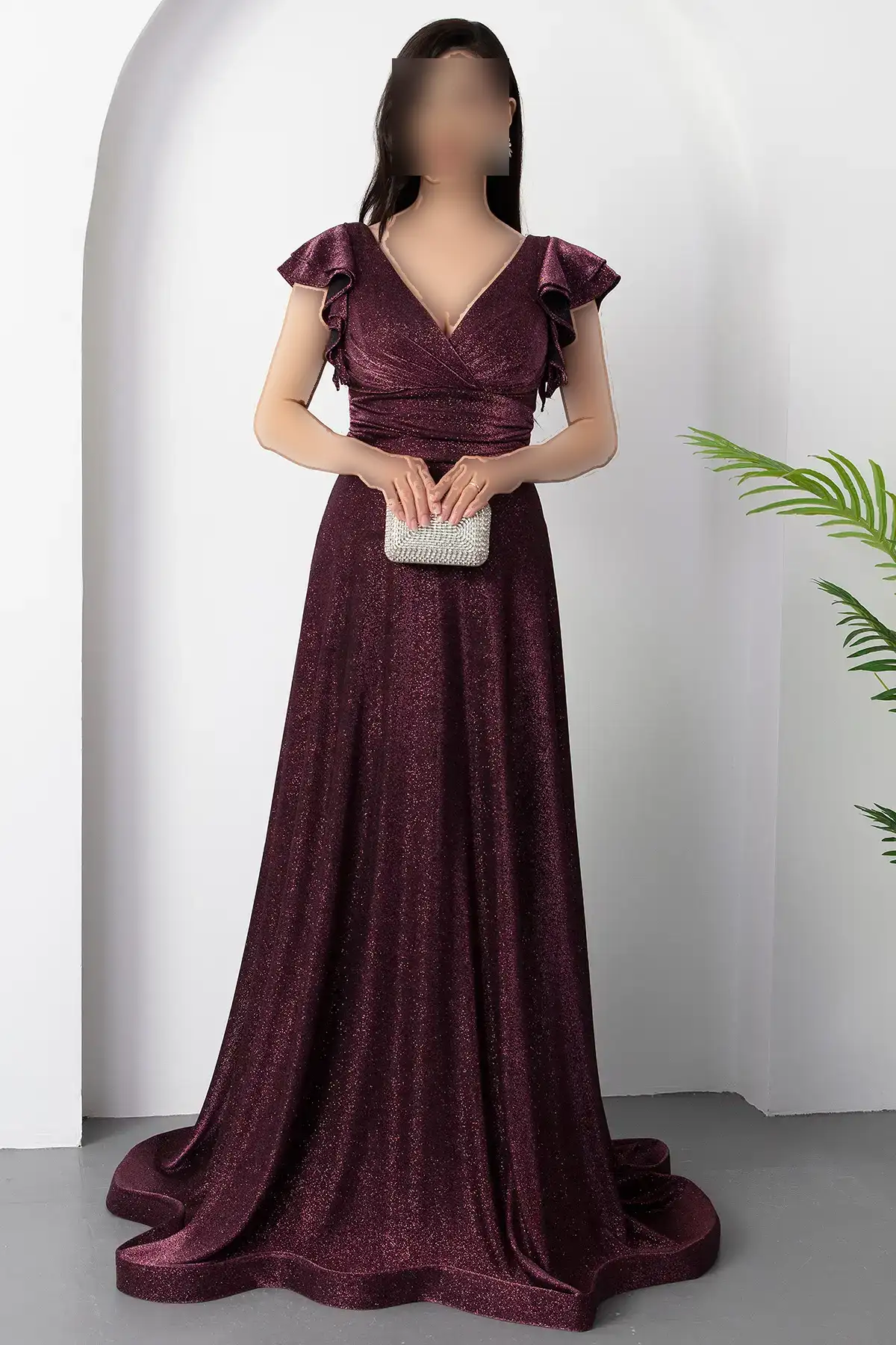 پیراهن مهمانی با آستین كلوش و نقرهای 39925 – 11306