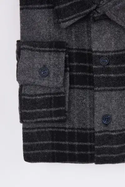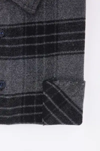 پیراهن چهارخانه کتان مردانه سایز بزرگ و آستین بلند و جیب – 13020