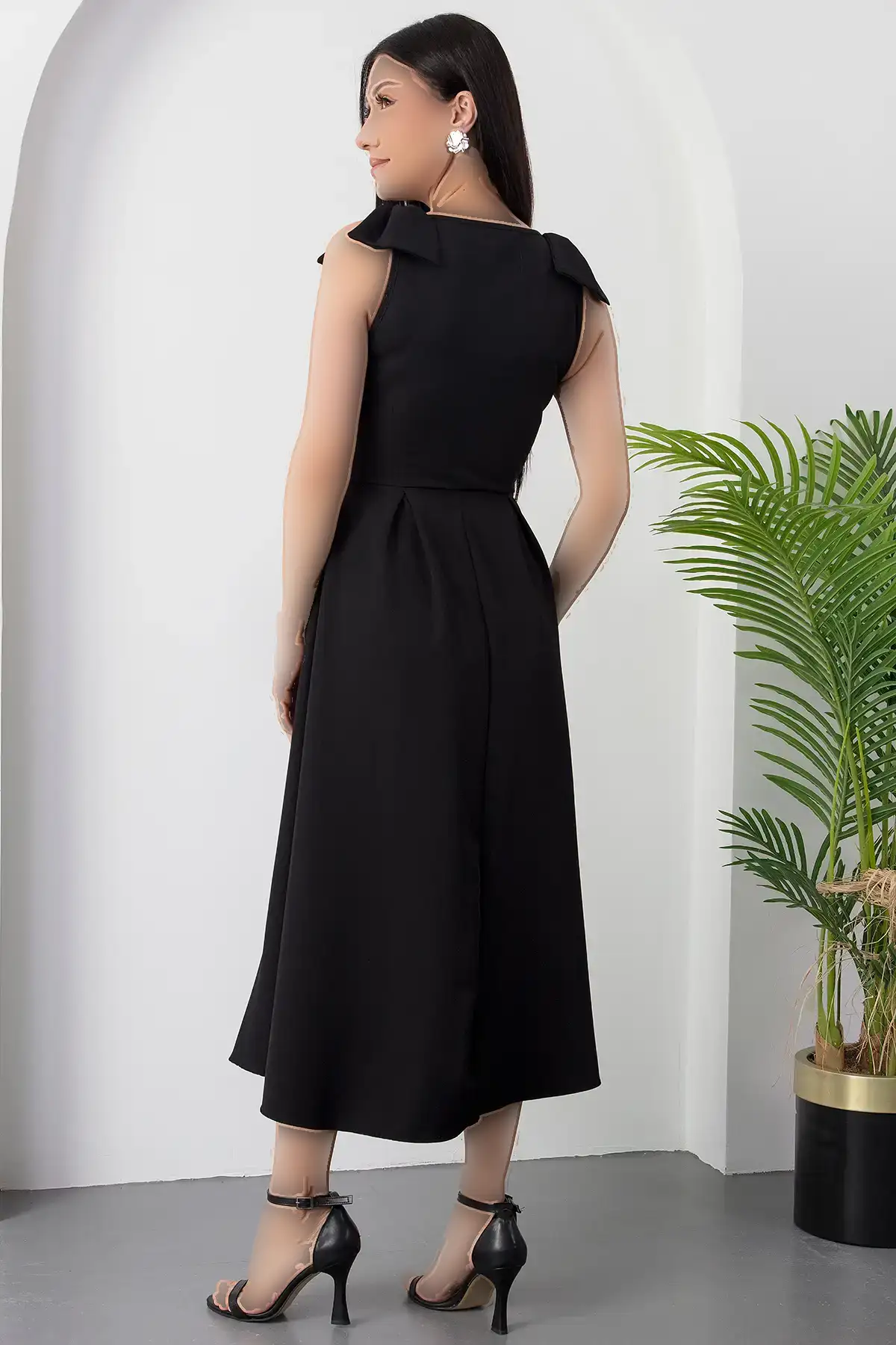 منجوق سنگی گلدوزی شده طرح خاص لباس بلند نخی شانه دار مشکی – 1361