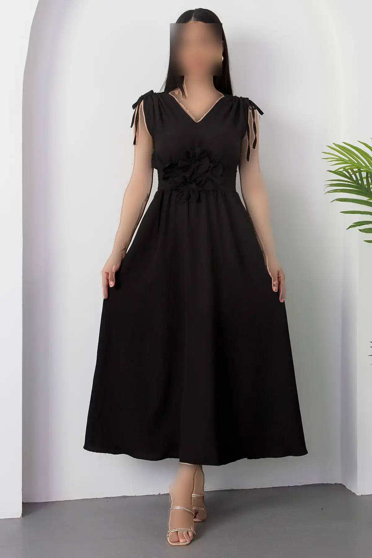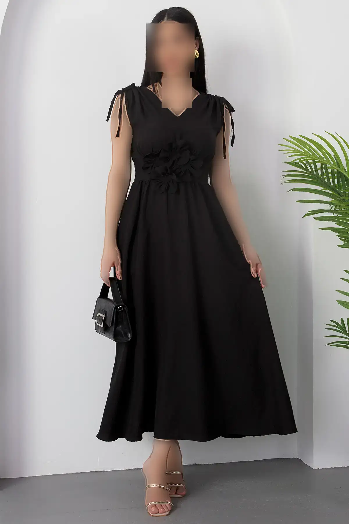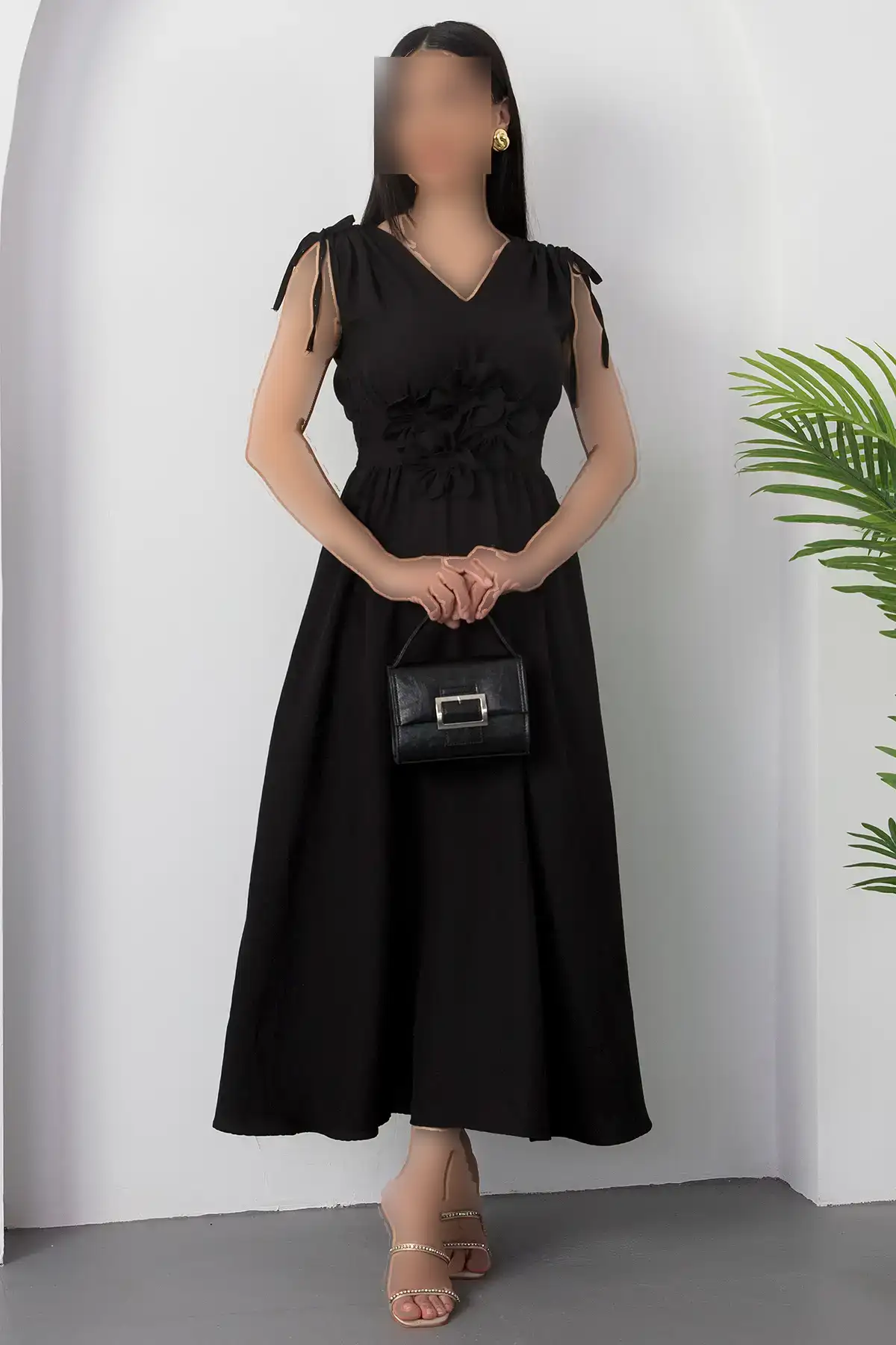 این پیراهن با رنگ مشکی و جزئیات زیبا برای فصلهای مختلف سال طراحی شده و به راحتی با اکسسوریهای متنوع قابل ست کردن است. شما میتوانید آن را با کفشهای پاشنهدار یا کفشهای راحتی بپوشید.