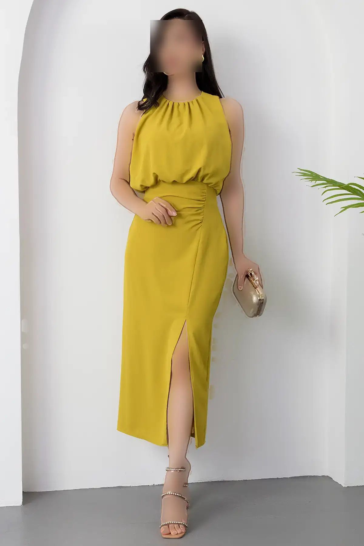جزئیات منحصر به فرد این پیراهن شامل یقه دوچرخه ای و کمربند کشی است که به زیبایی در کمر شما نشسته و فرم زیبایی را به اندامتان می‌دهد. این پیراهن همچنین به صورت بدون آستین طراحی شده است، که موجب راحتی بیشتر در روزهای گرم سال می‌شود.