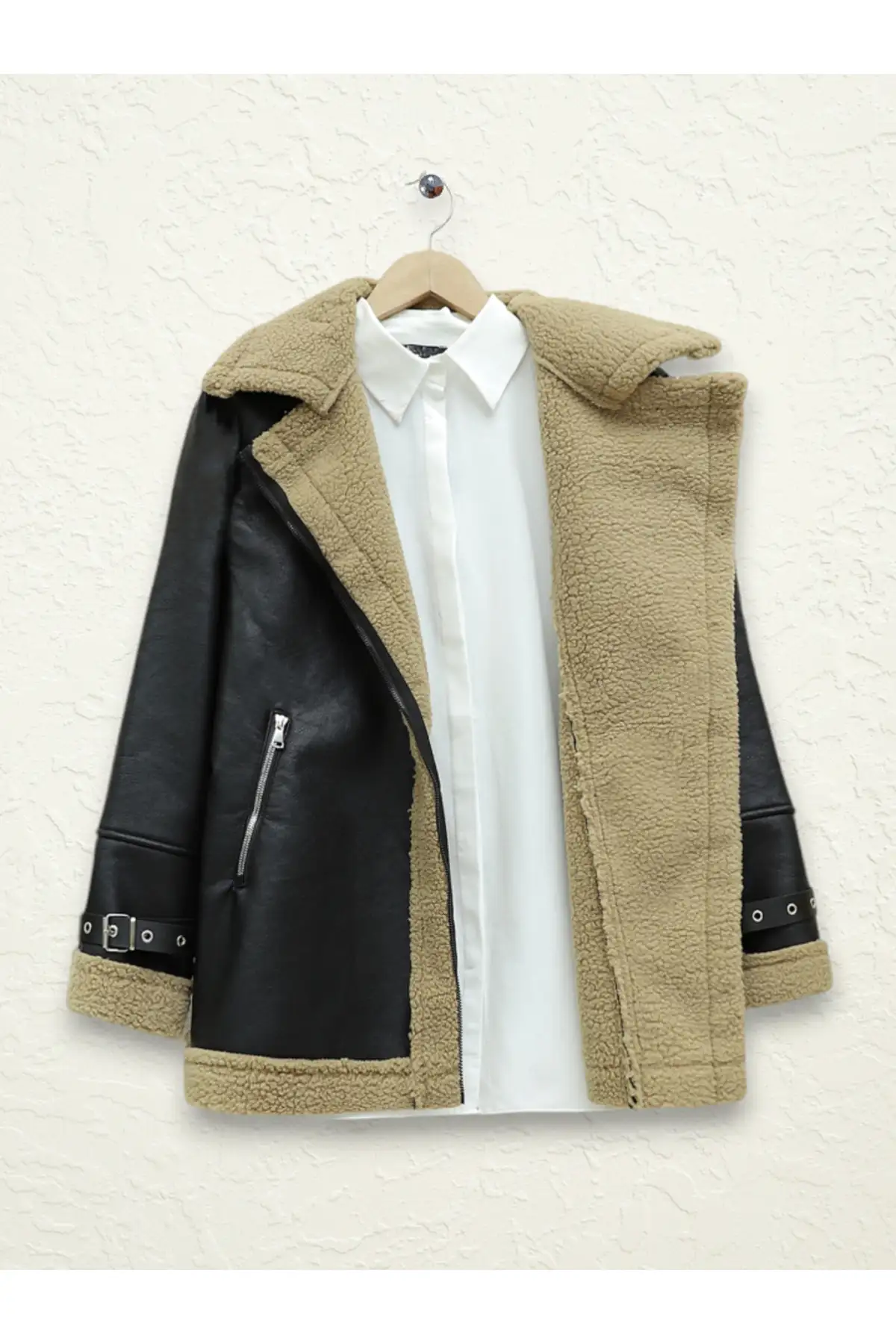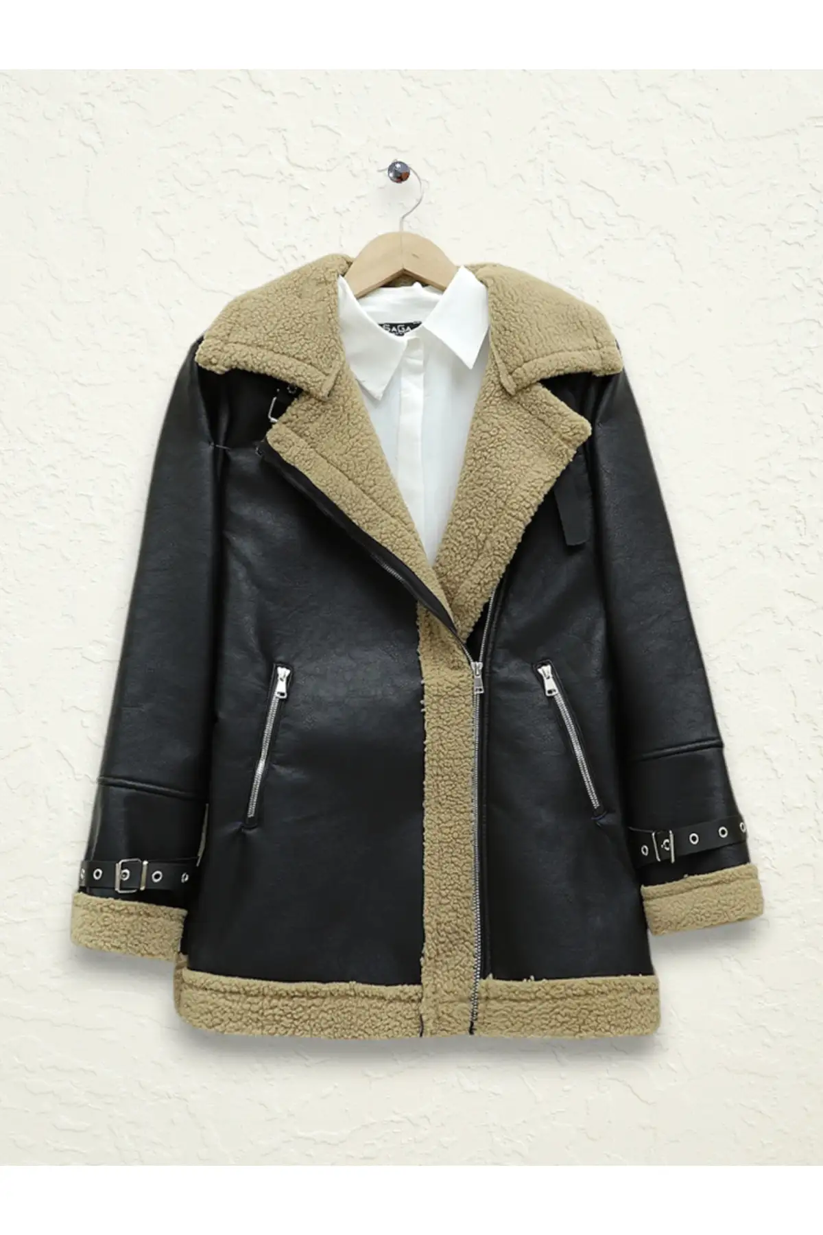 ژاکت چرم زنانه با آستر پشمی و زیپ – 11507