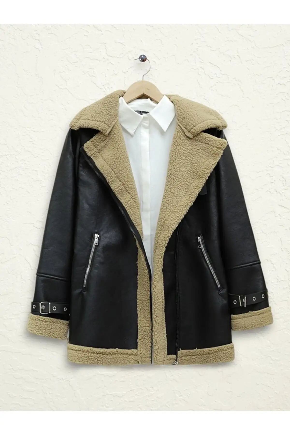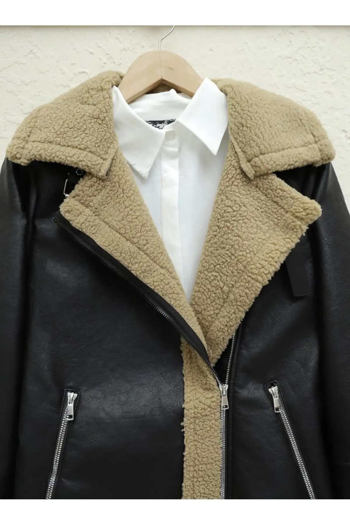 ژاکت چرم زنانه با آستر پشمی و زیپ