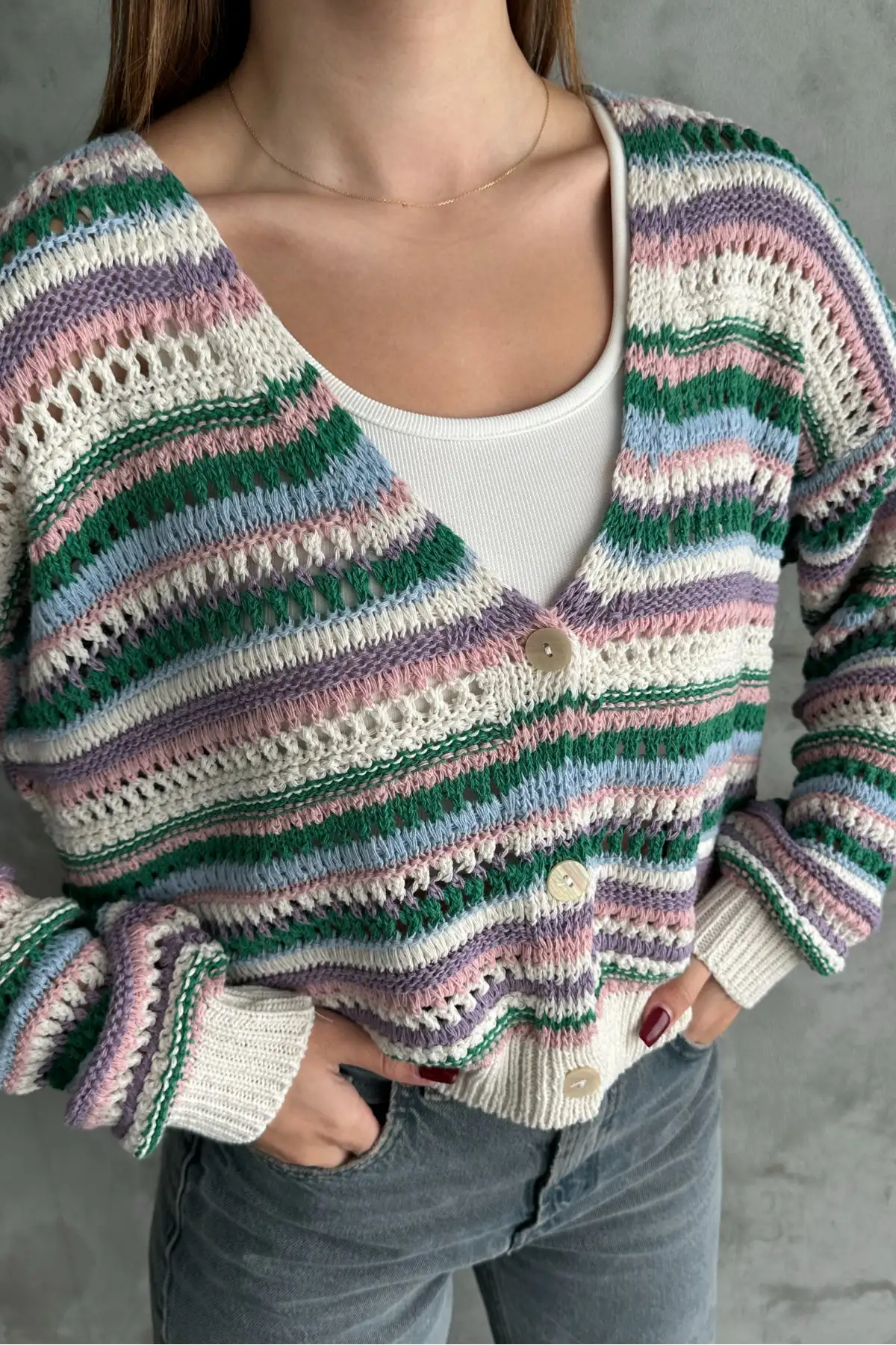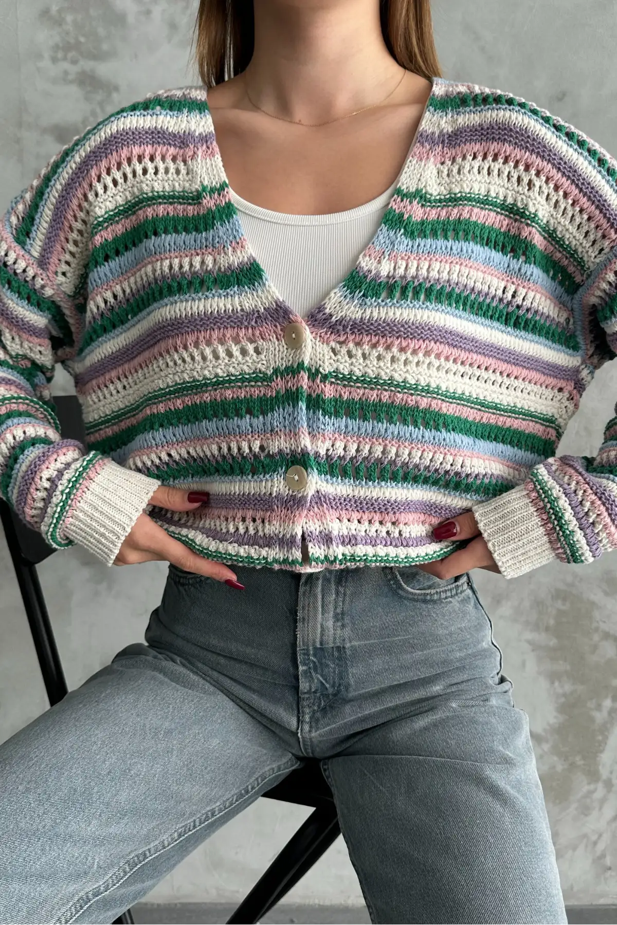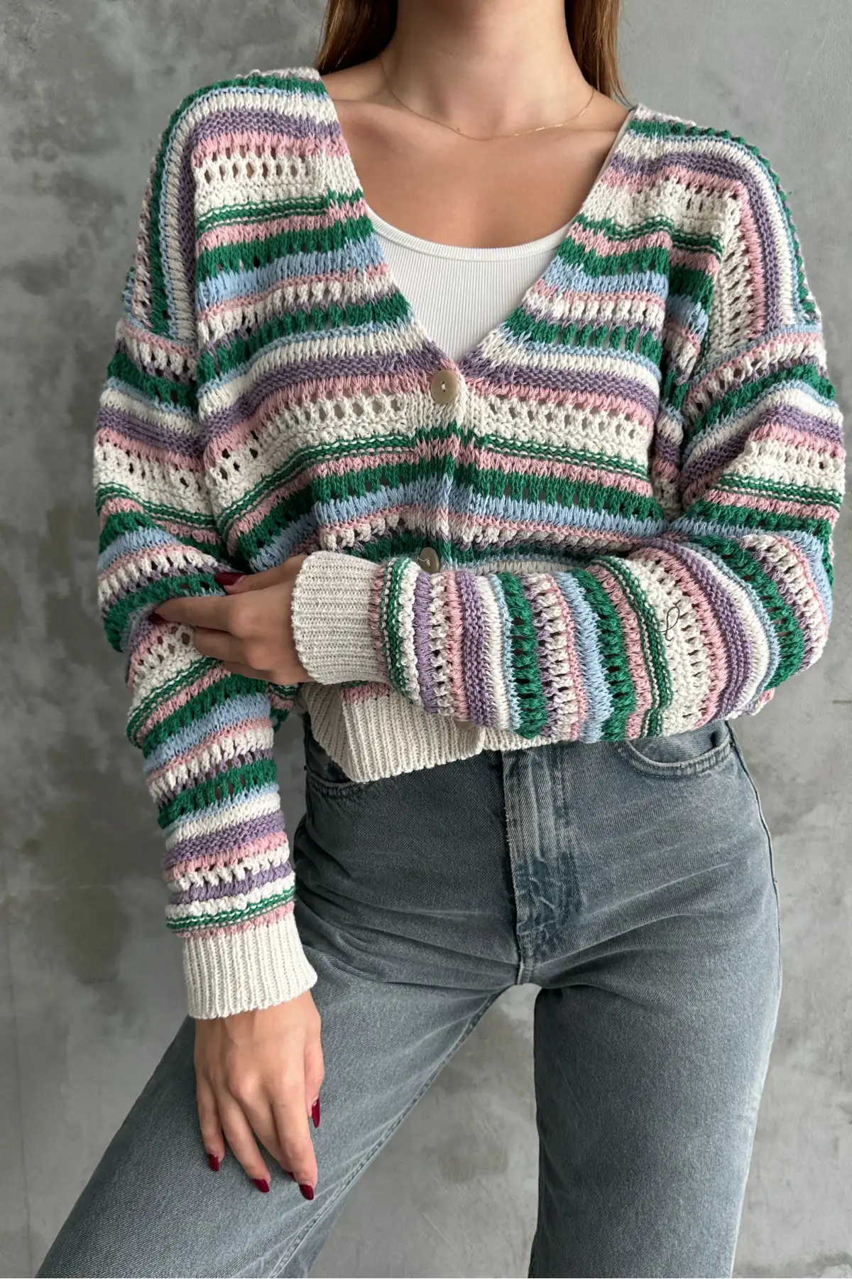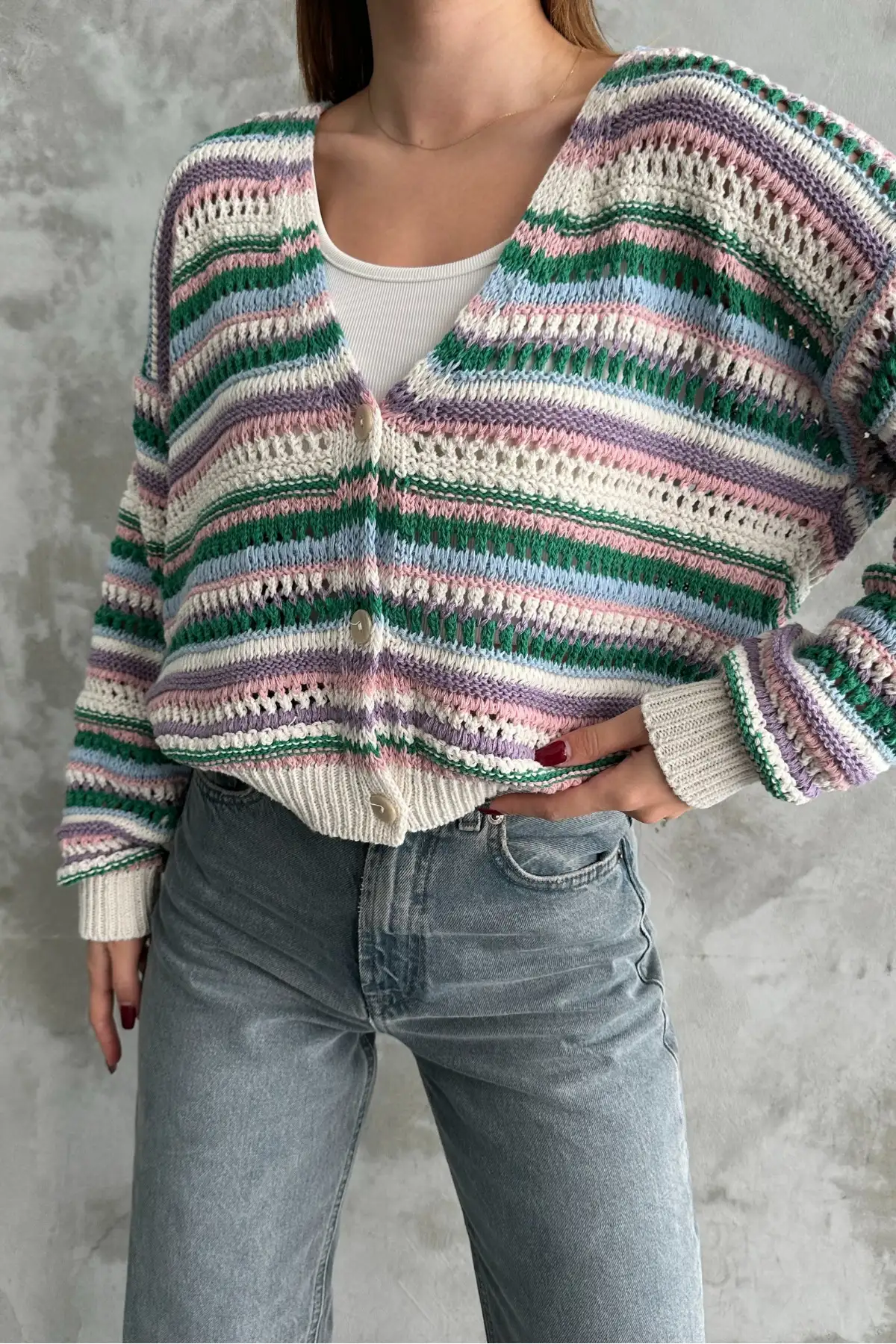 ژاکت بافتنی خطدار زنانه، ژاکت خطدار ترک – 11073