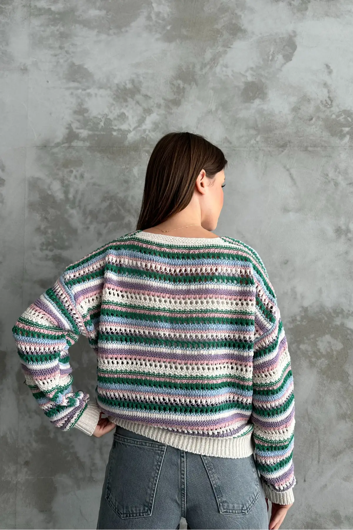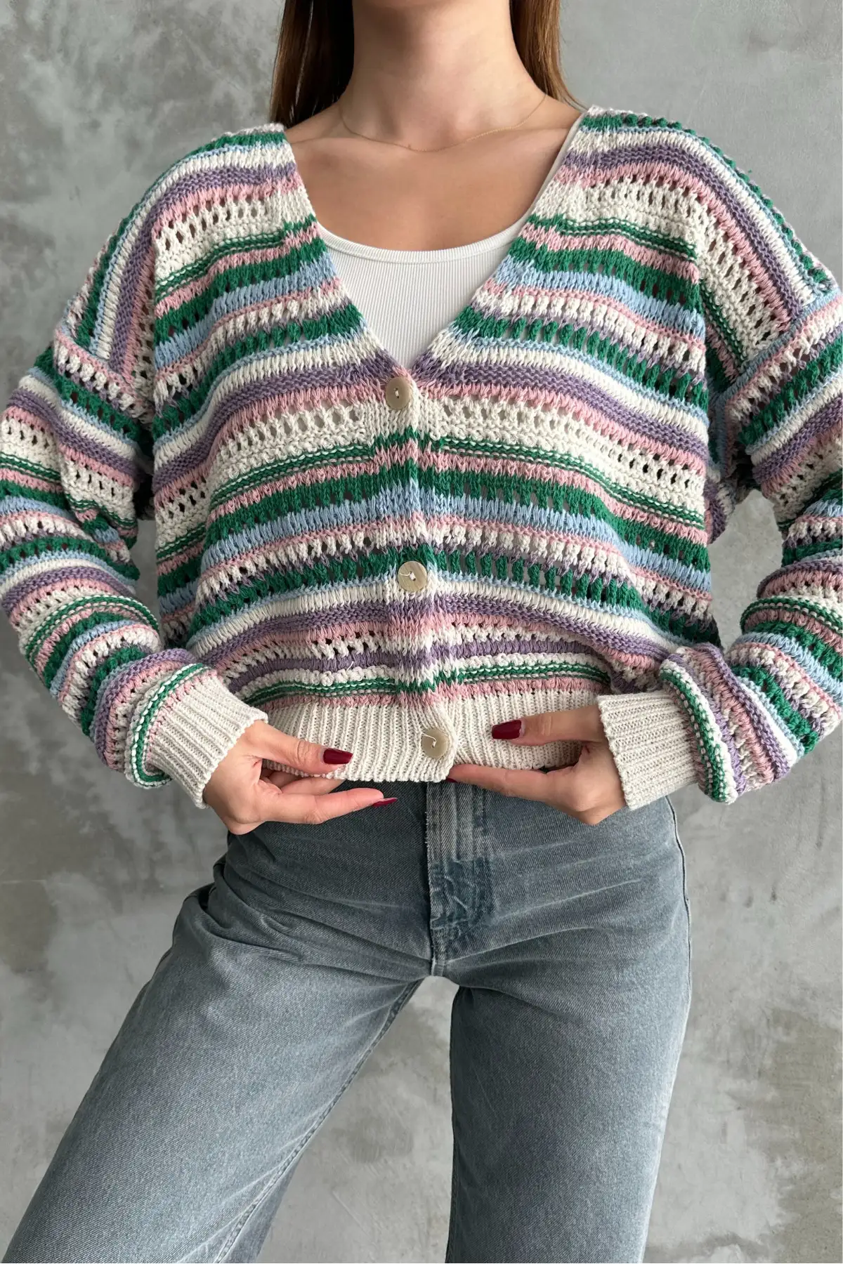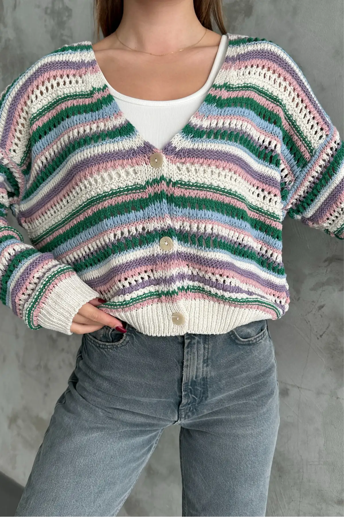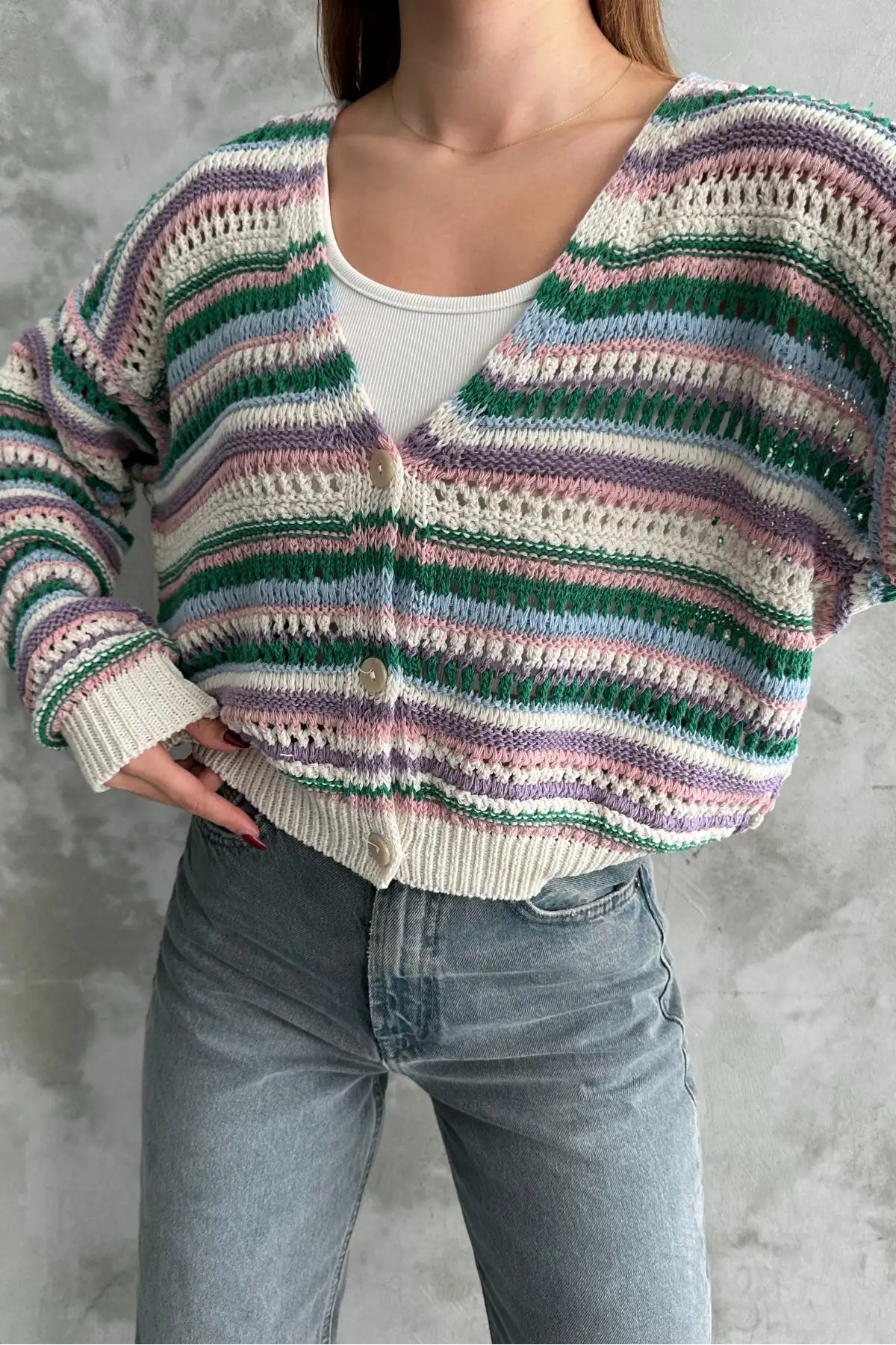 ژاکت بافتنی خطدار زنانه، ژاکت خطدار ترک – 11073