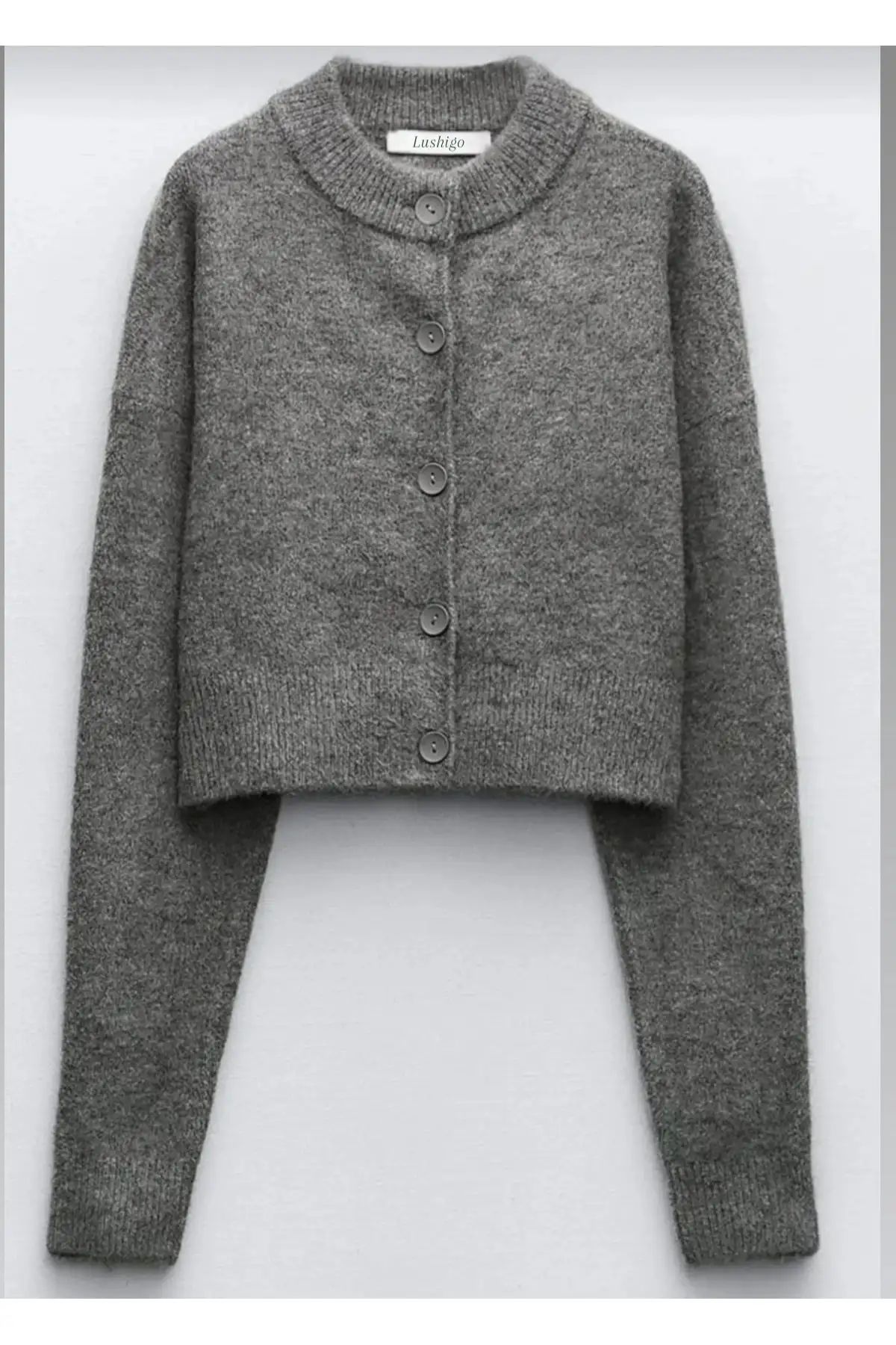 کاردی زنانه تیلیا کراپ خاکستری تیره بافتنی، انتخابی ایدئال برای تمامی فصلهاست. این کاردی با طراحی زیبا و مدرن، به راحتی با انواع لباسها ست میشود.