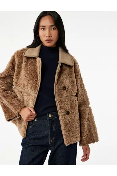 خانه » فروشگاه » کاپشن آستردار چرم سوئدی با یقه دکمه‌ای و بلند – 12681