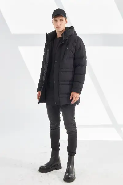 کاپشن ترک پفی کلاه‌دار مردانه ضد آب
