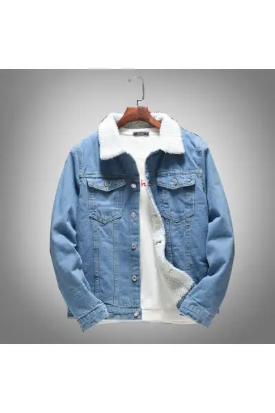 کاپشن جین مردانه با رنگ آبی روشن و داخل با پشم مصنوعی ترک – 12879