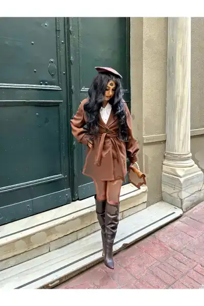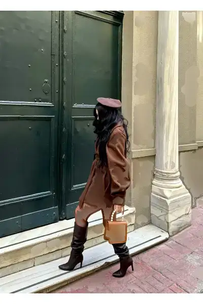 کاپشن زنانه با آستین بادکنکی و کمربند نخی با طراحی خاص و منحصر به فرد خود، می تواند شما را جذاب تر از همیشه کند. آستین های بادکنکی آن باعث ایجاد ظاهری شیک و مدرن می شود.جنس پارچه این کاپشن از با کیفیت ترین مواد انتخاب شده است که نه تنها به راحتی شما کمک می کند، بلکه دوام بالا نیز دارد. طراحی کمربند نخی آن، تناسب را برای شما به ارمغان می آورد.رنگ قهوه ای این کاپشن به راحتی با دیگر لباس های شما ست می شود. این لباس به شما این امکان را می دهد که با ترکیب های مختلف، استایل خاص خود را ایجاد کنید.وجود جیب های دوتایی در این کاپشن، مکان مناسبی برای نگهداری وسایل شخصی شما ایجاد می کند. طراحی ساده و شیفته کننده آن، باعث می شود توجه همه را جلب کند.