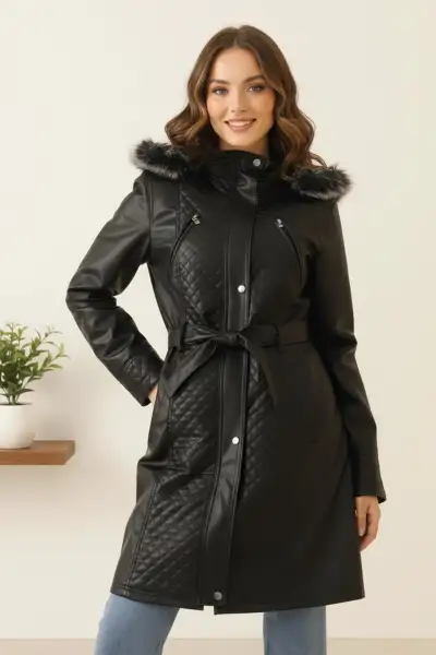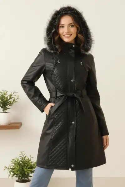 کاپشن زنانه جدید با کلاه و آستر پشمی مشکی – 12695
