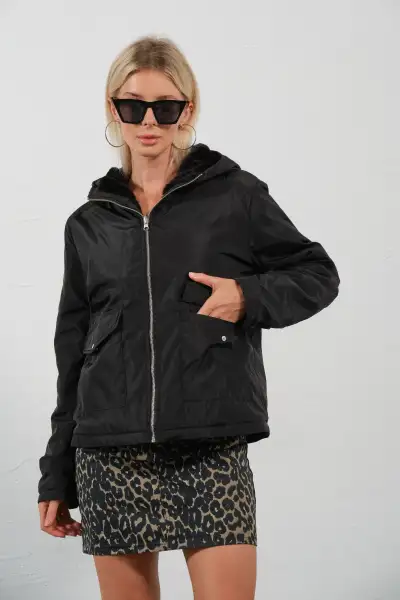 کاپشن زنانه کلاه دار ترک یکی از بهترین انتخابها برای فصلهای سرد سال است. این کاپشن دو طرفه بوده و از دو نوع پارچه مختلف استفاده کرده است. یک سمت آن از میکرو و سمت دیگر آن از شِرپا با پوشش مصنوعی تشکیل شده است.