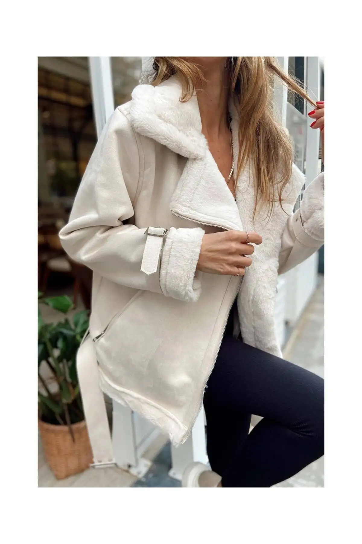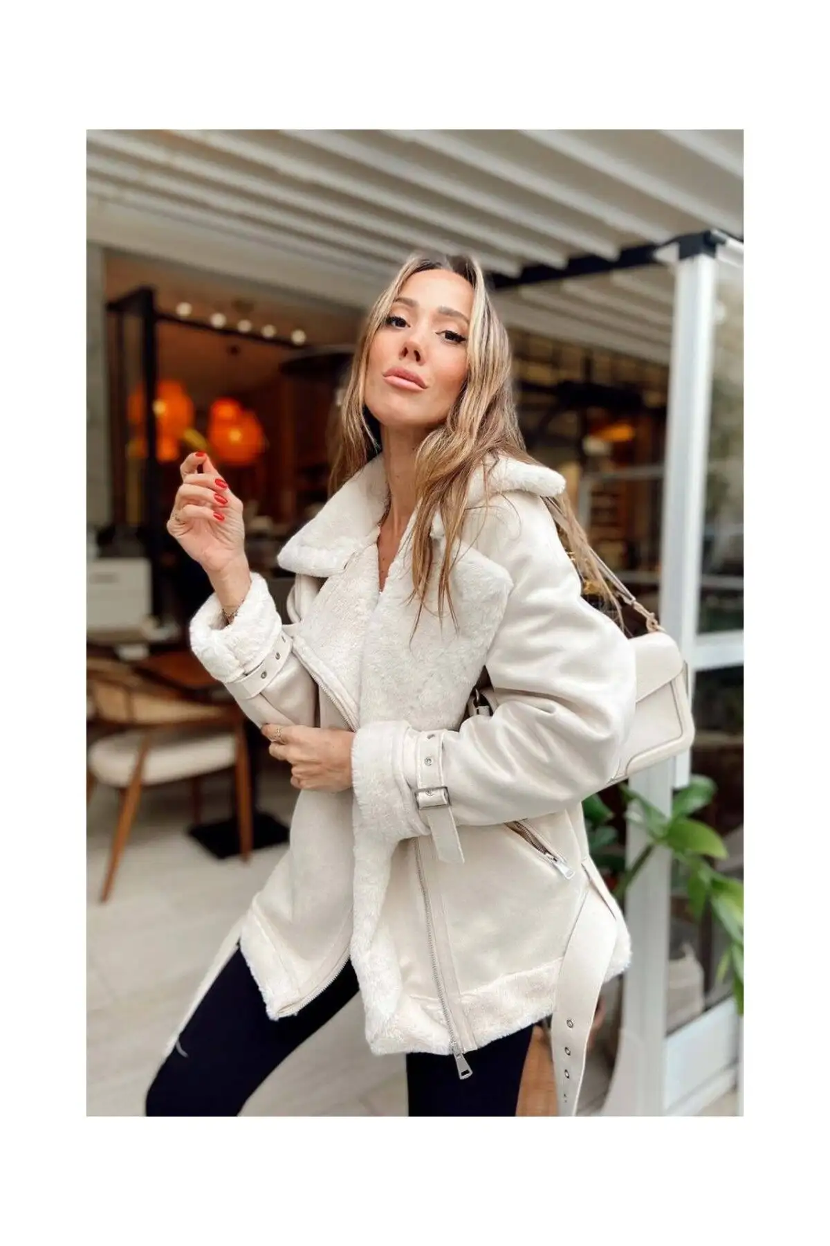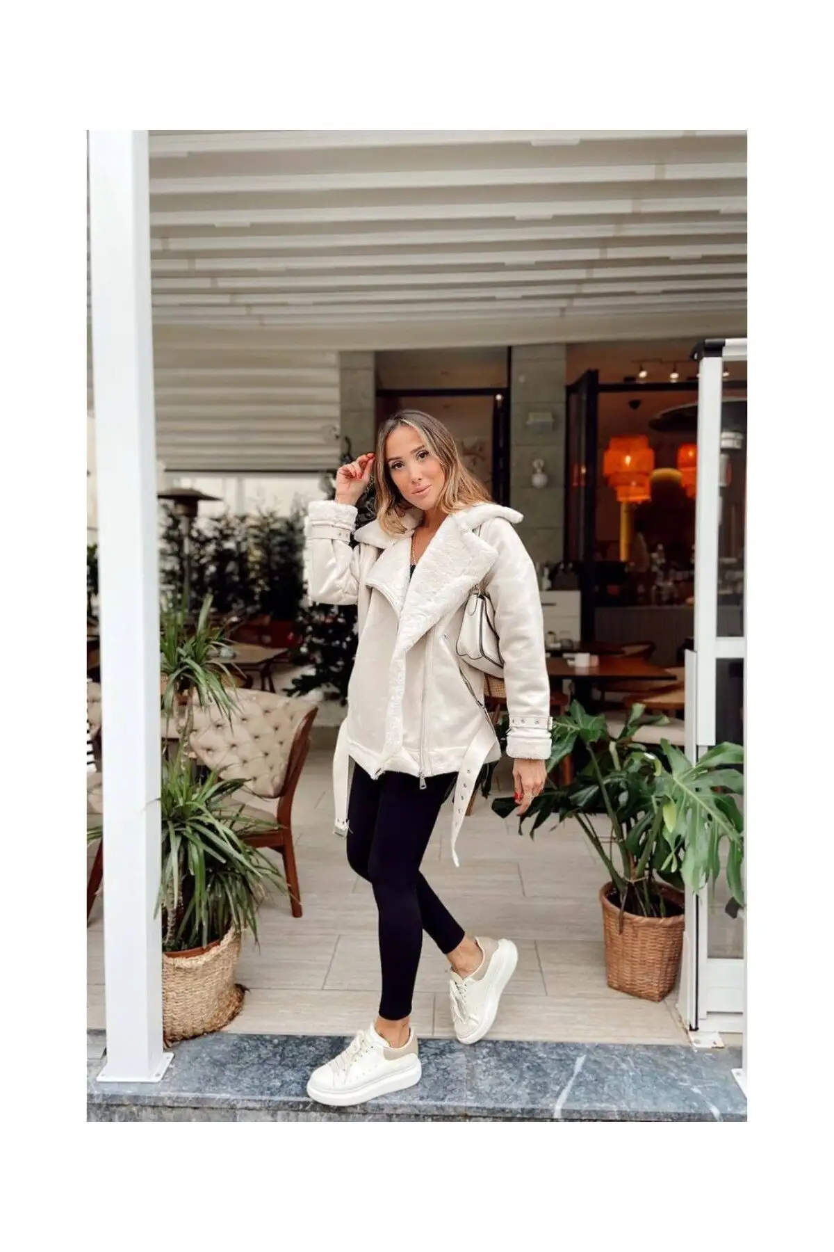 کاپشن سوئدی زنانه با جزئیات کمربند رپیتلی – 9902