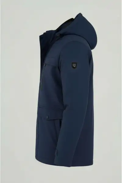 کاپشن مردانه کلاه قابل جدا ترکیب پنبه و پلی استر به رنگ سرمهای – 12291