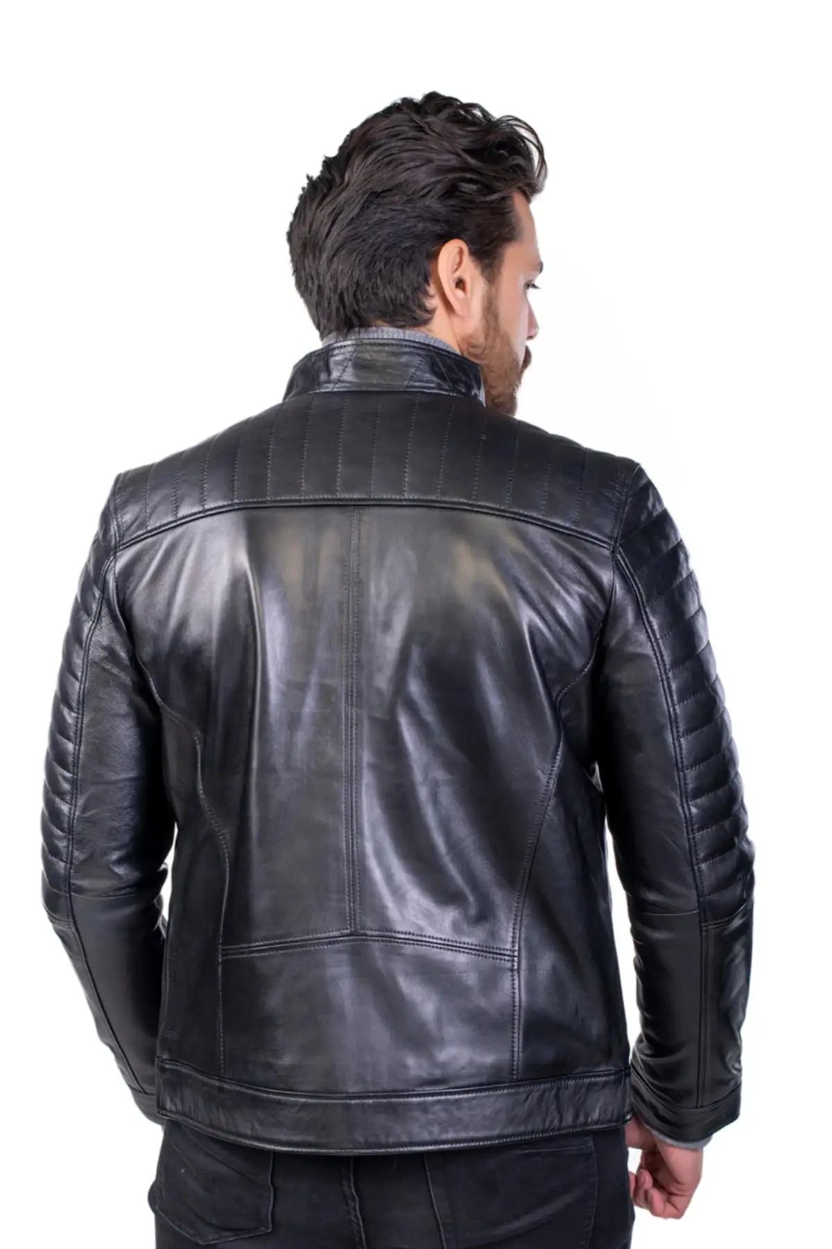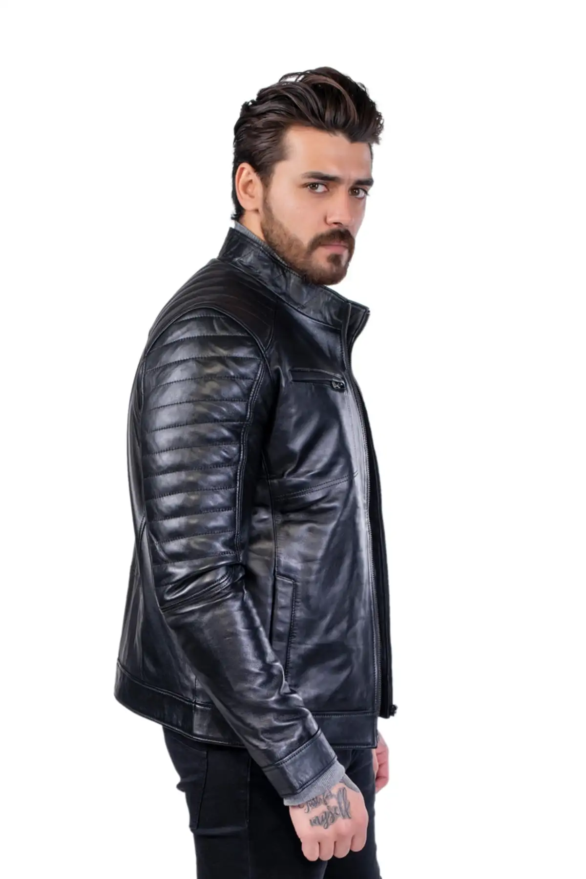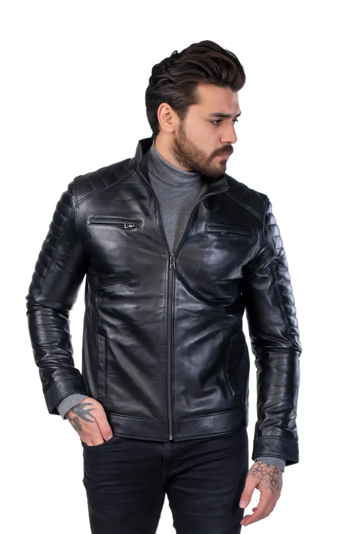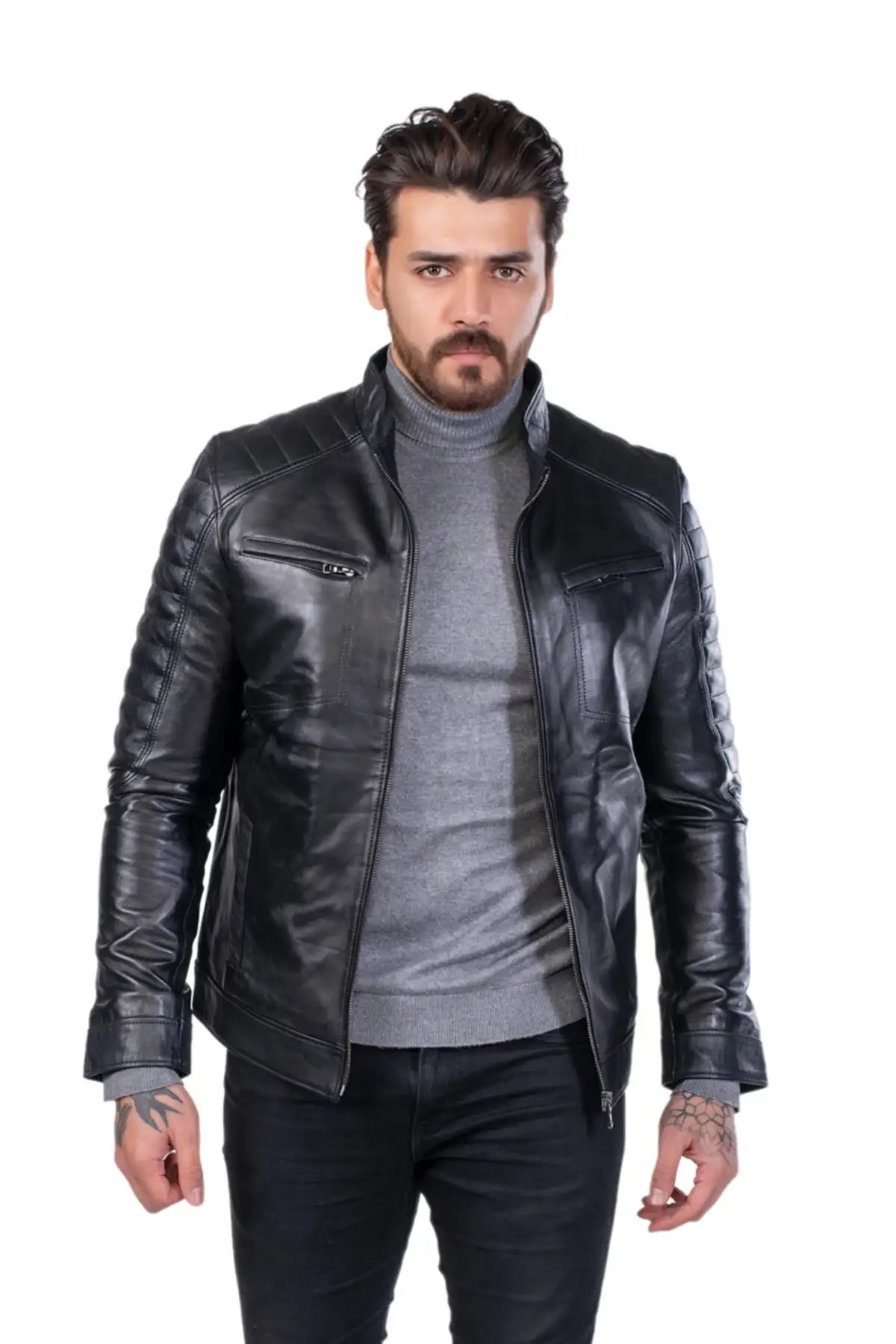 کاپشن مشکی مردانه از چرم اصل طبیعی