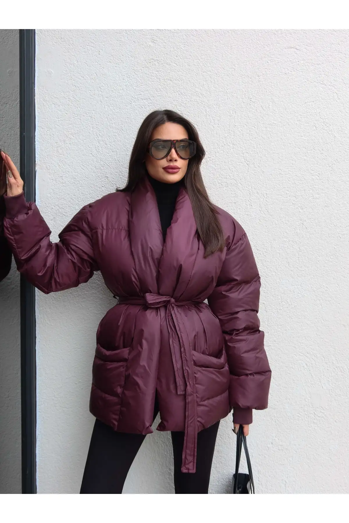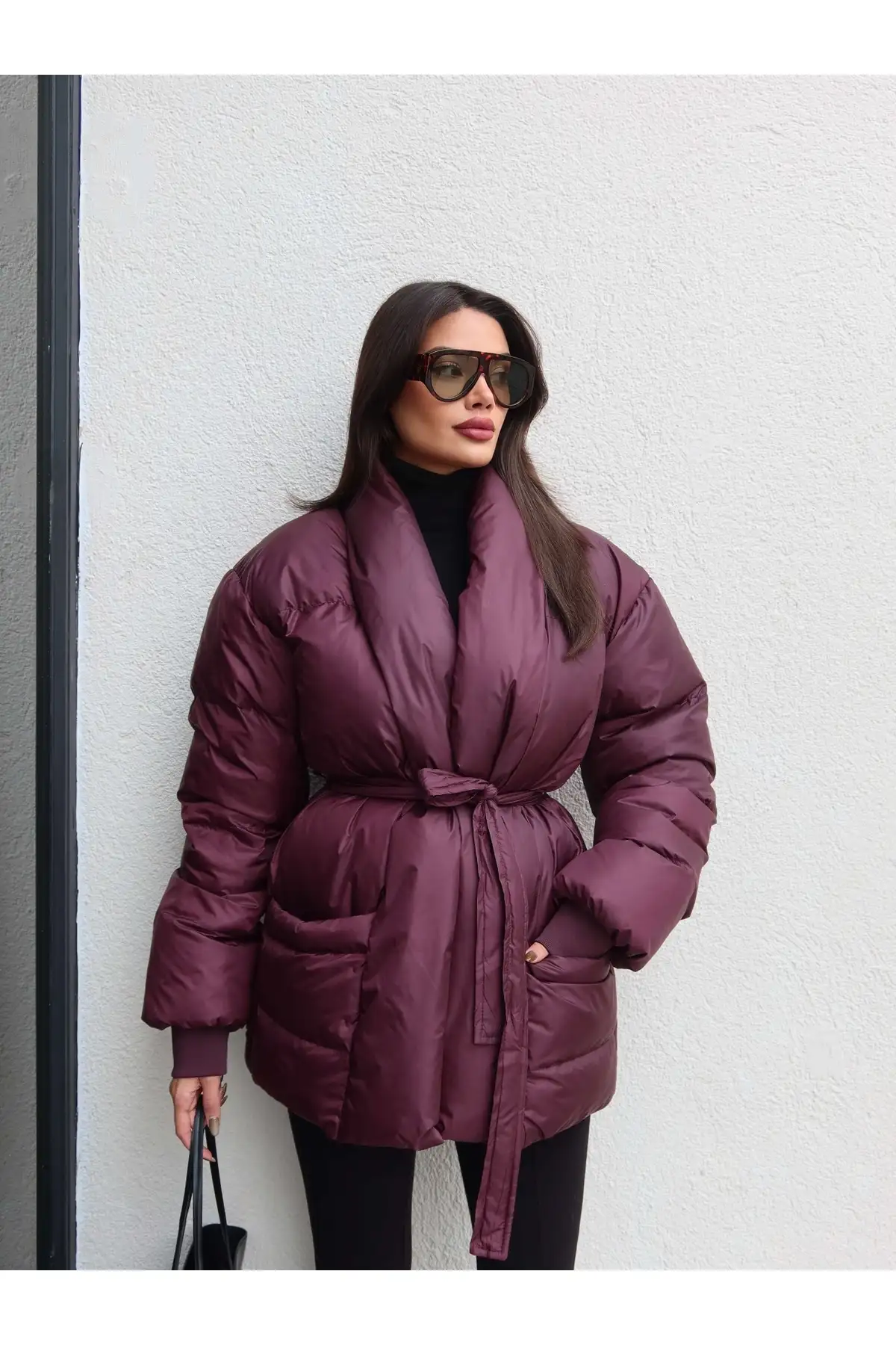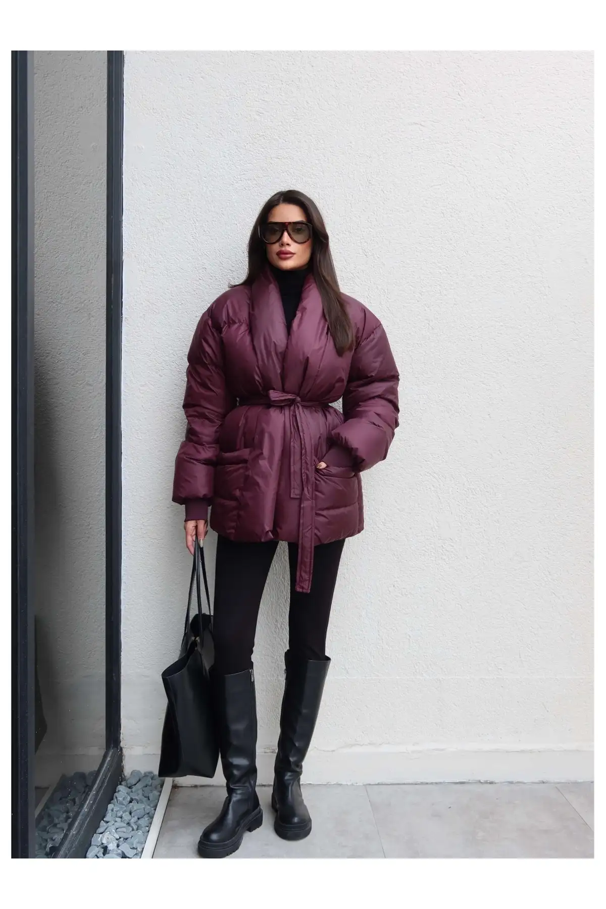کاپشن پفی با کمربند زنانه از برند مشهور ESRAHELVACI ترکیه