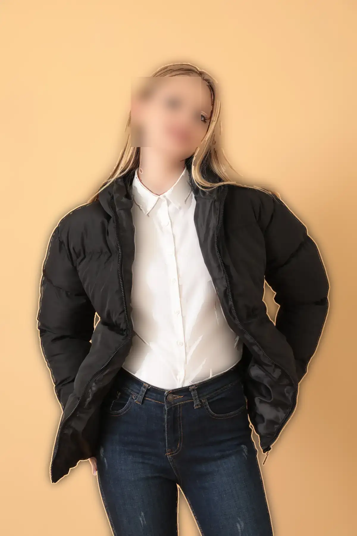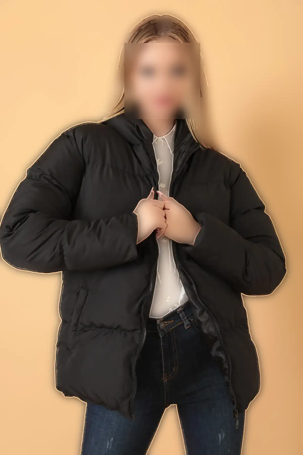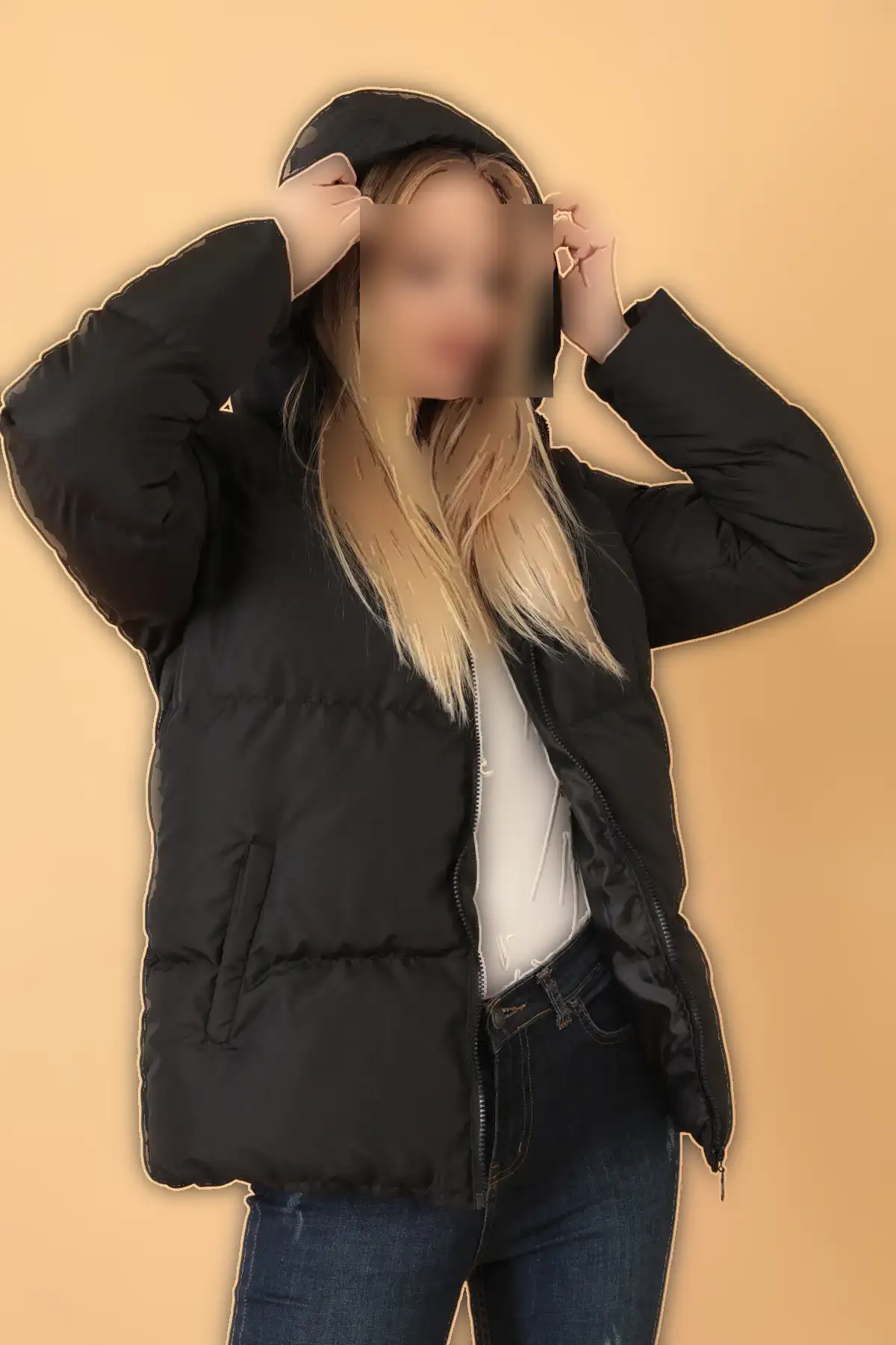 کاپشن پفی سیاه زنانه با کلاه – 11493