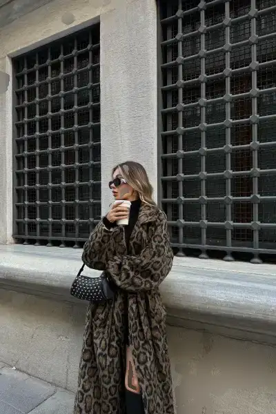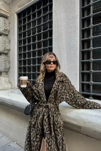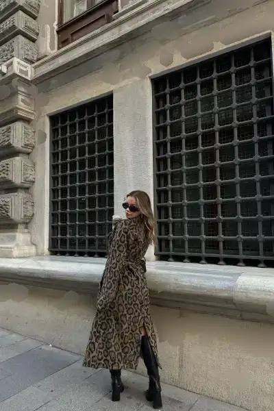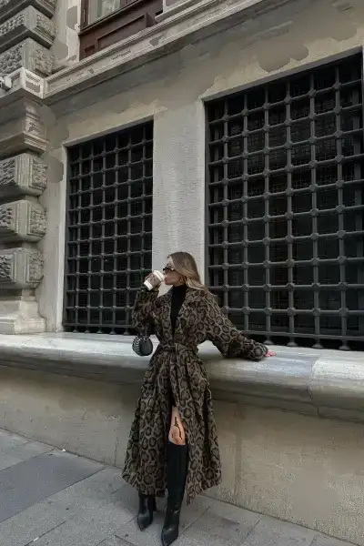 کاپشن قهوه‌ای با کمربند پلنگی یک انتخاب شیک و مدرن برای فصل‌های سرد سال است. ا
