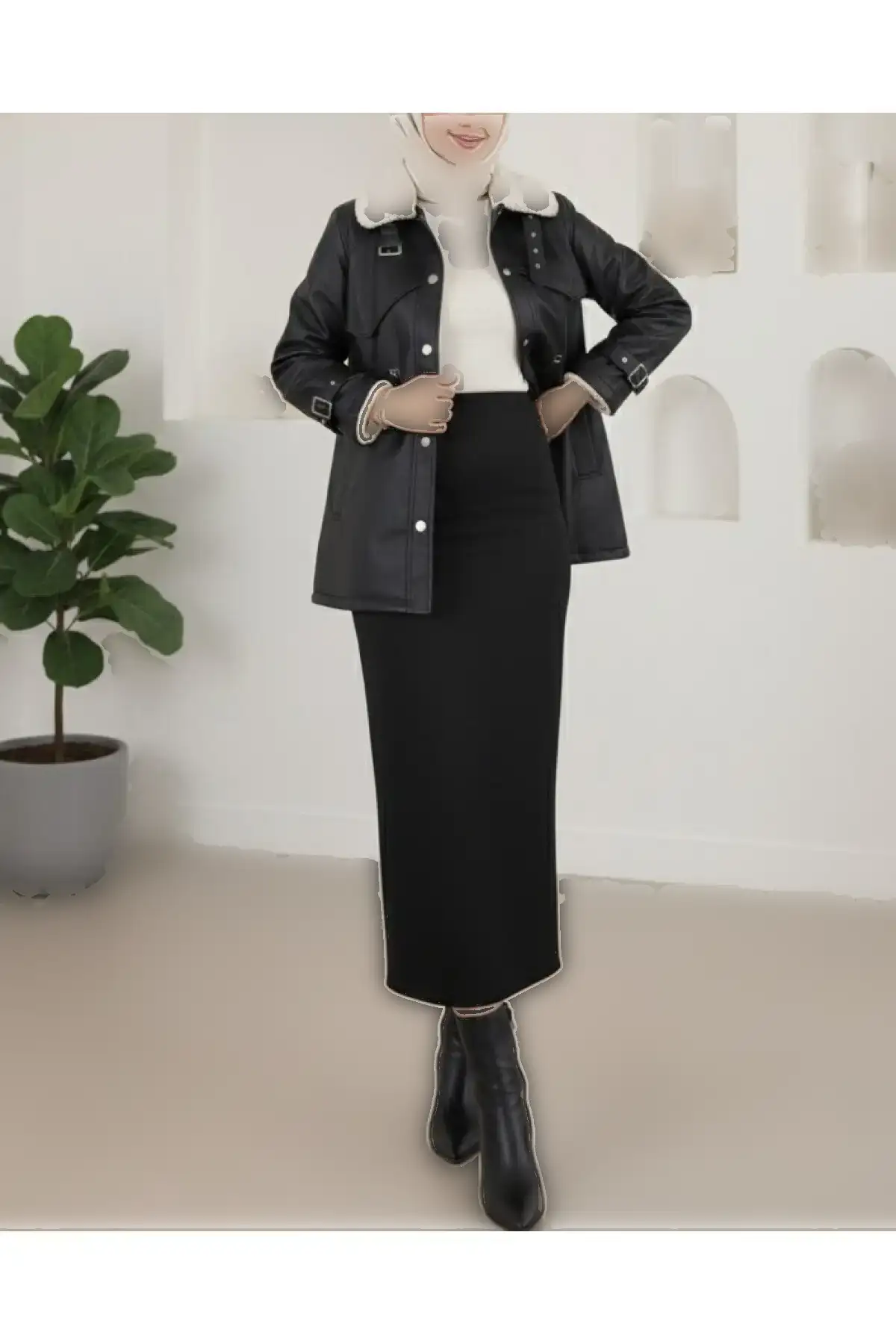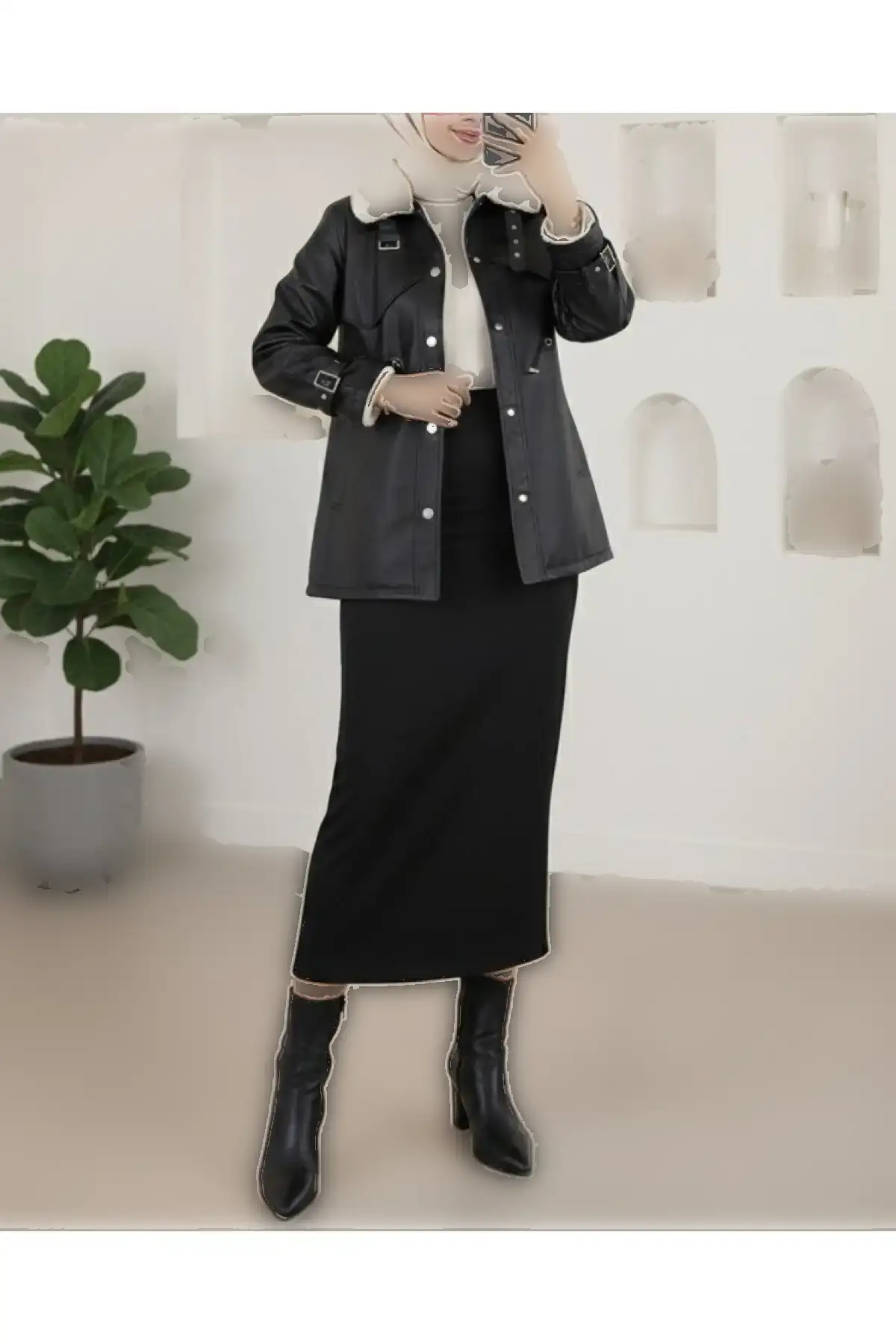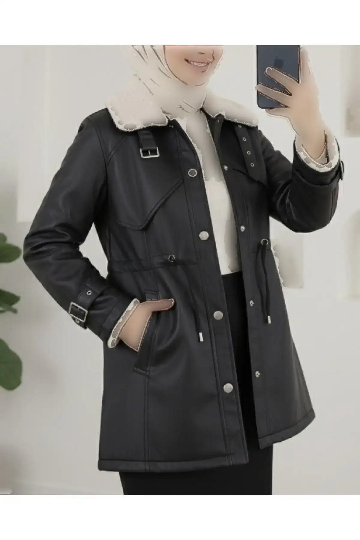 کاپشن چرمی مشکی زنانه داخل پشمی ترک