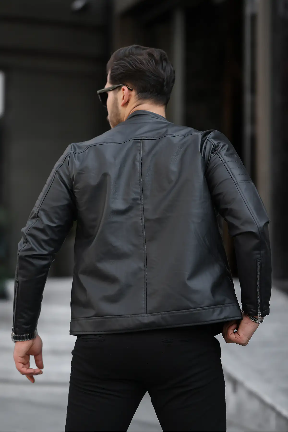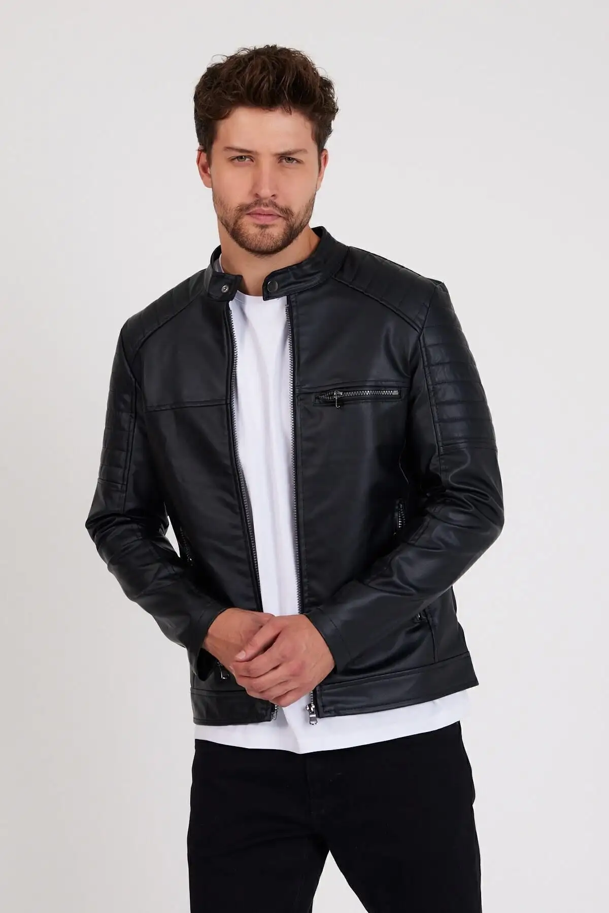 کاپشن چرم ترک مشکی اندامی مردانه – 11921