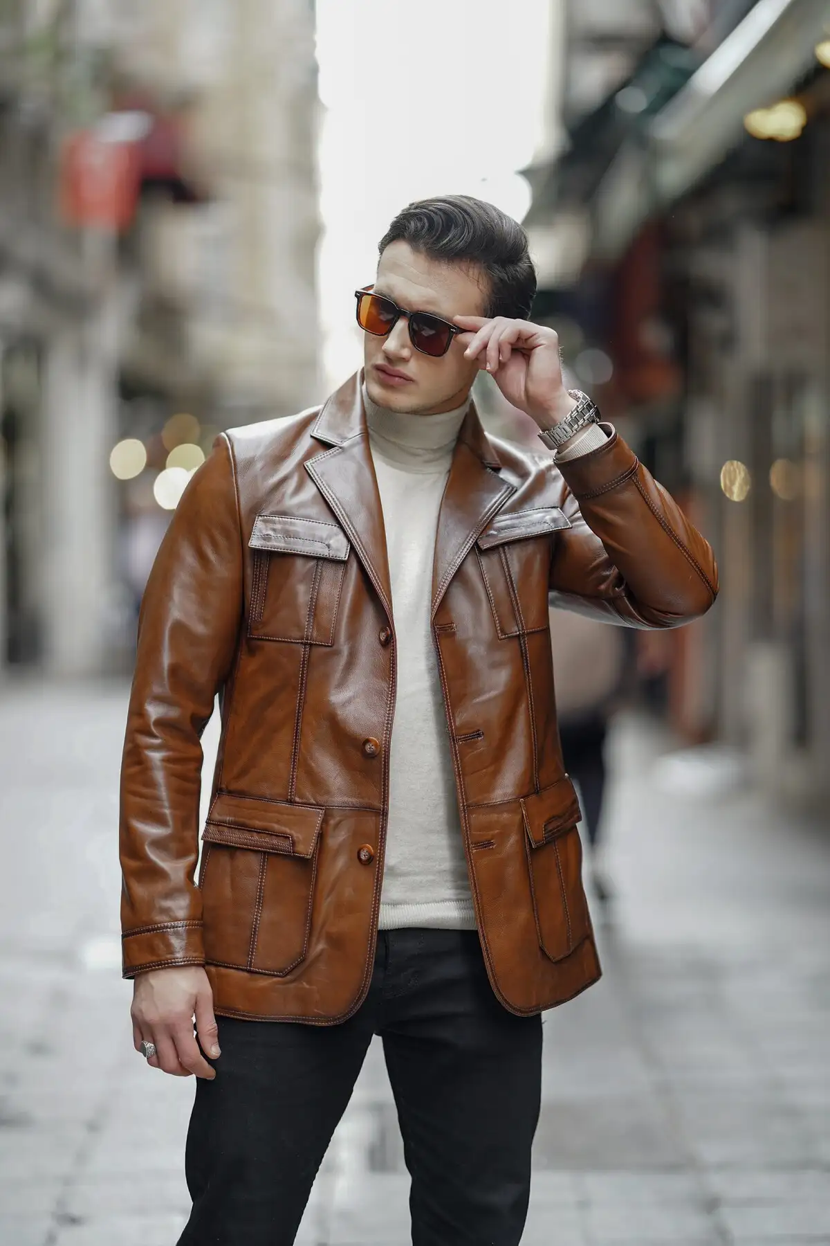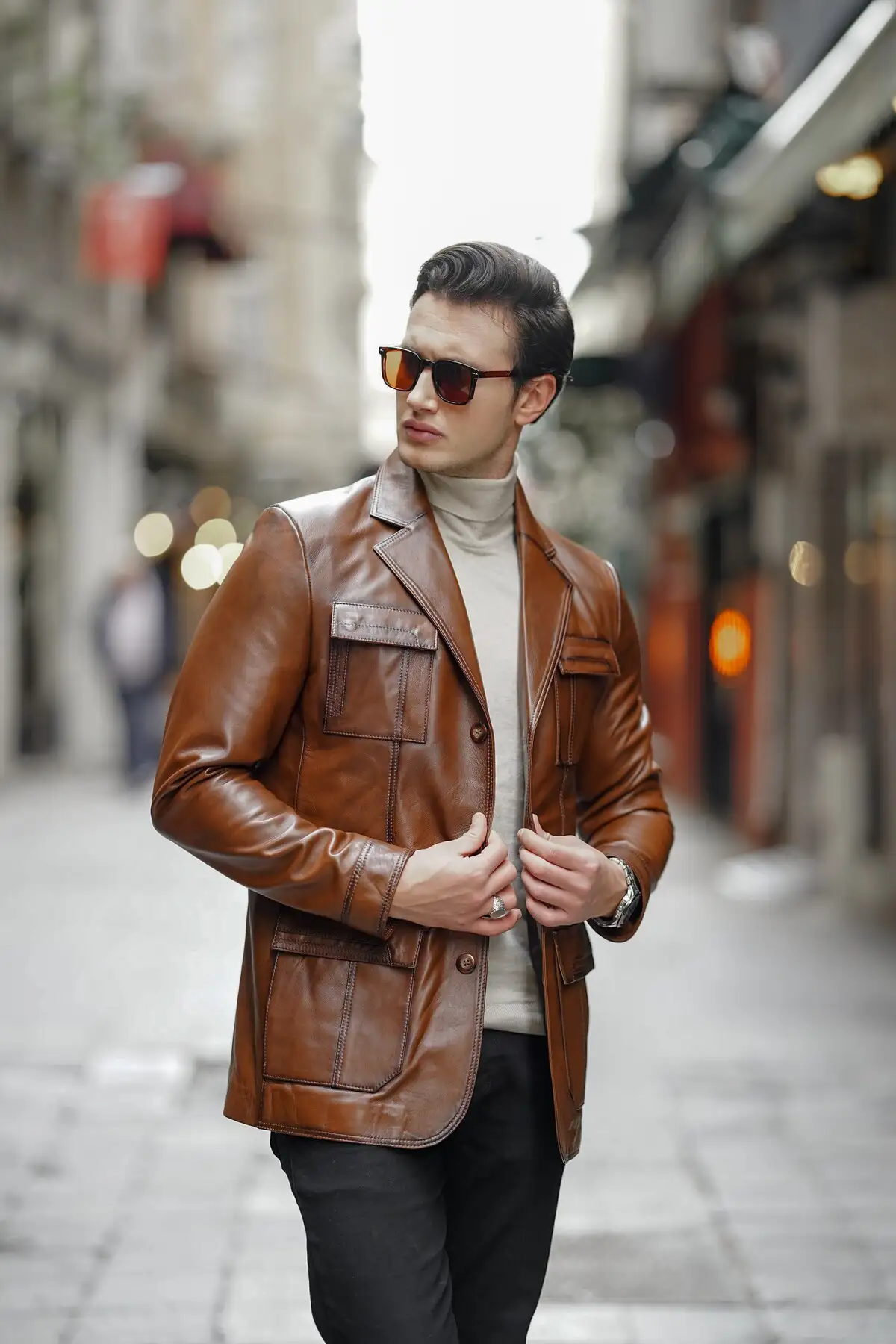 کاپشن چرم طبیعی ترک اورجینال مردانه
