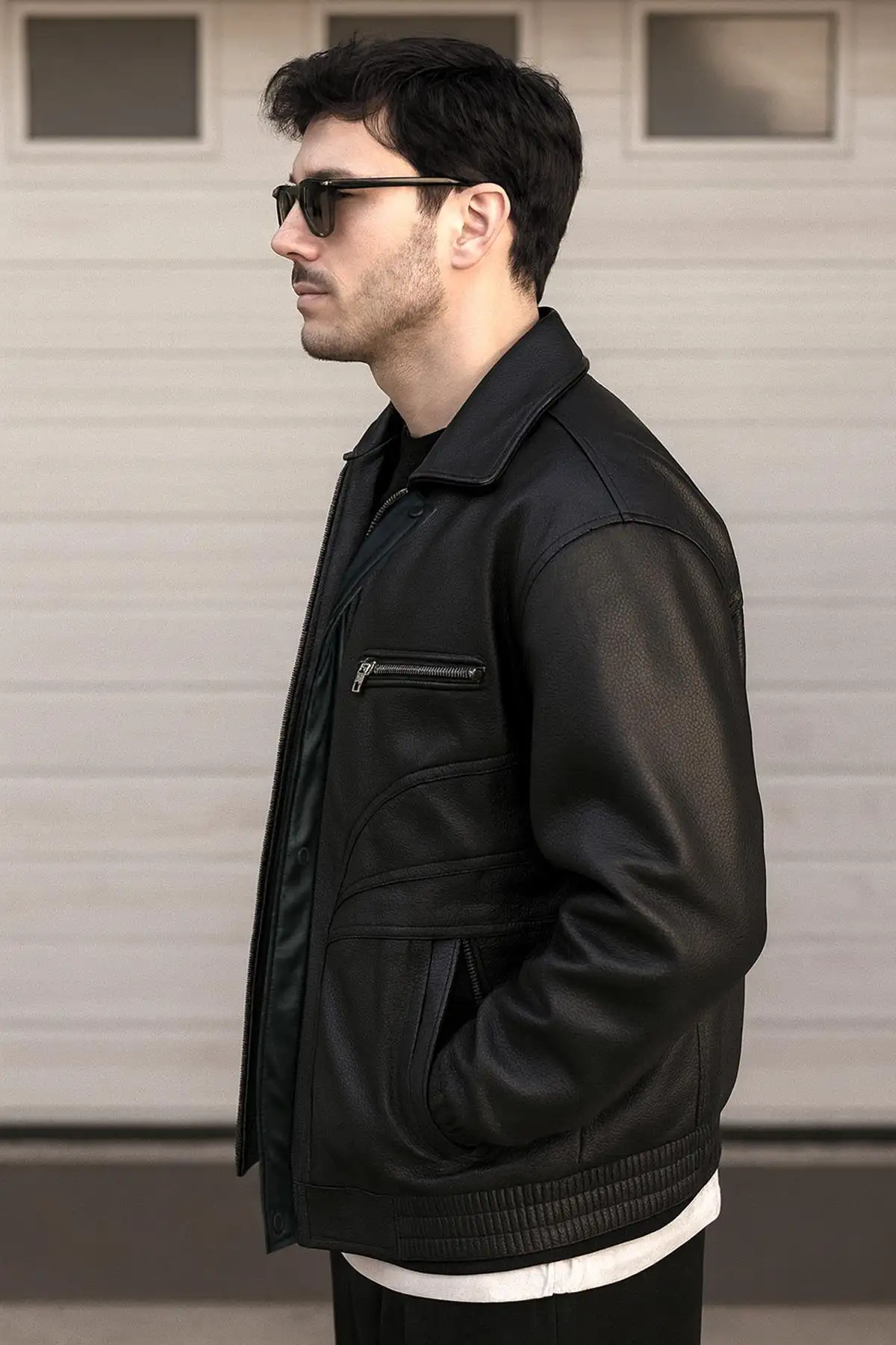 کاپشن چرم مردانه ترک اورجینال اورسایز