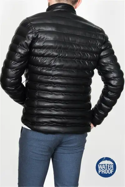 کاپشن چرم مردانه مشکی با طراحی باریک و داخل پُر از پشم و جیب داخلی – 13076