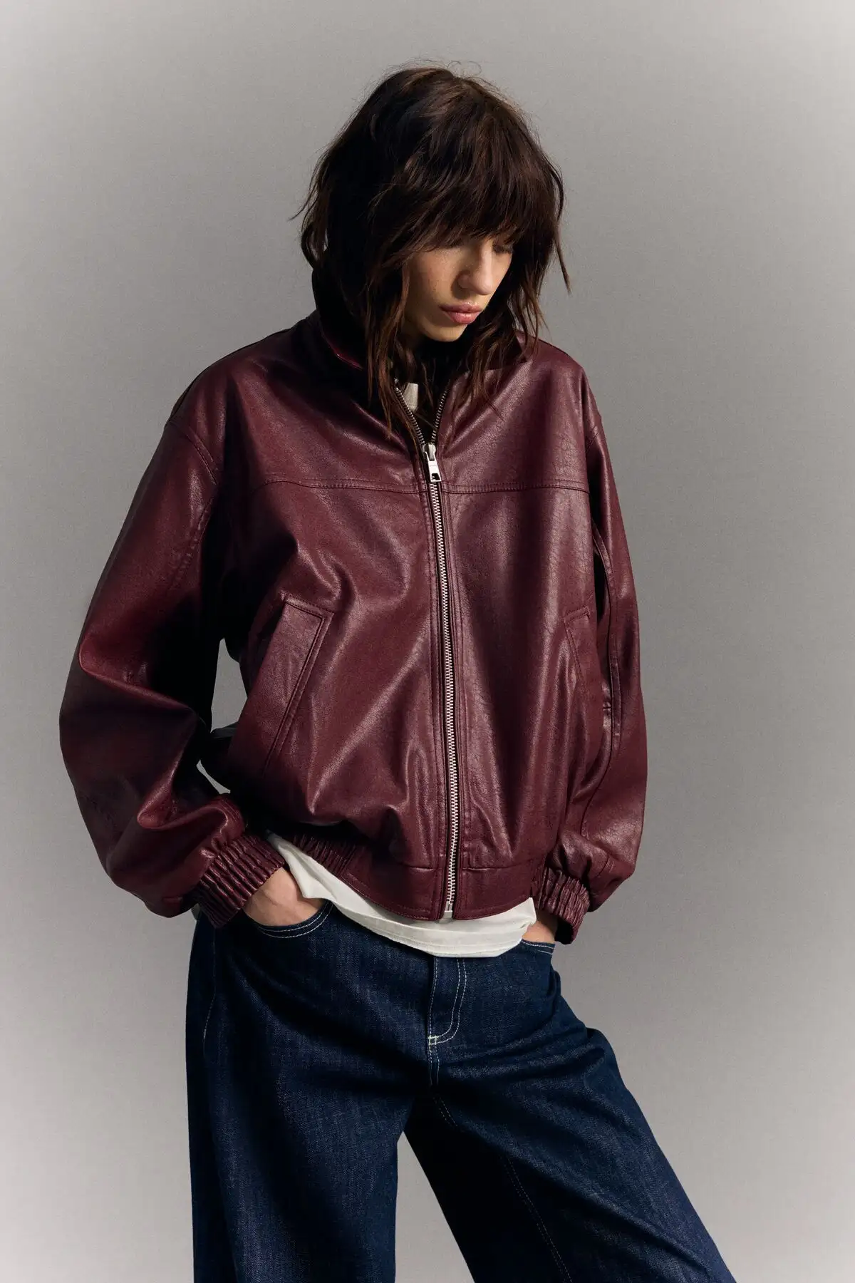کاپشن چرم مصنوعی سایز بزرگ از برند Bershka اصل