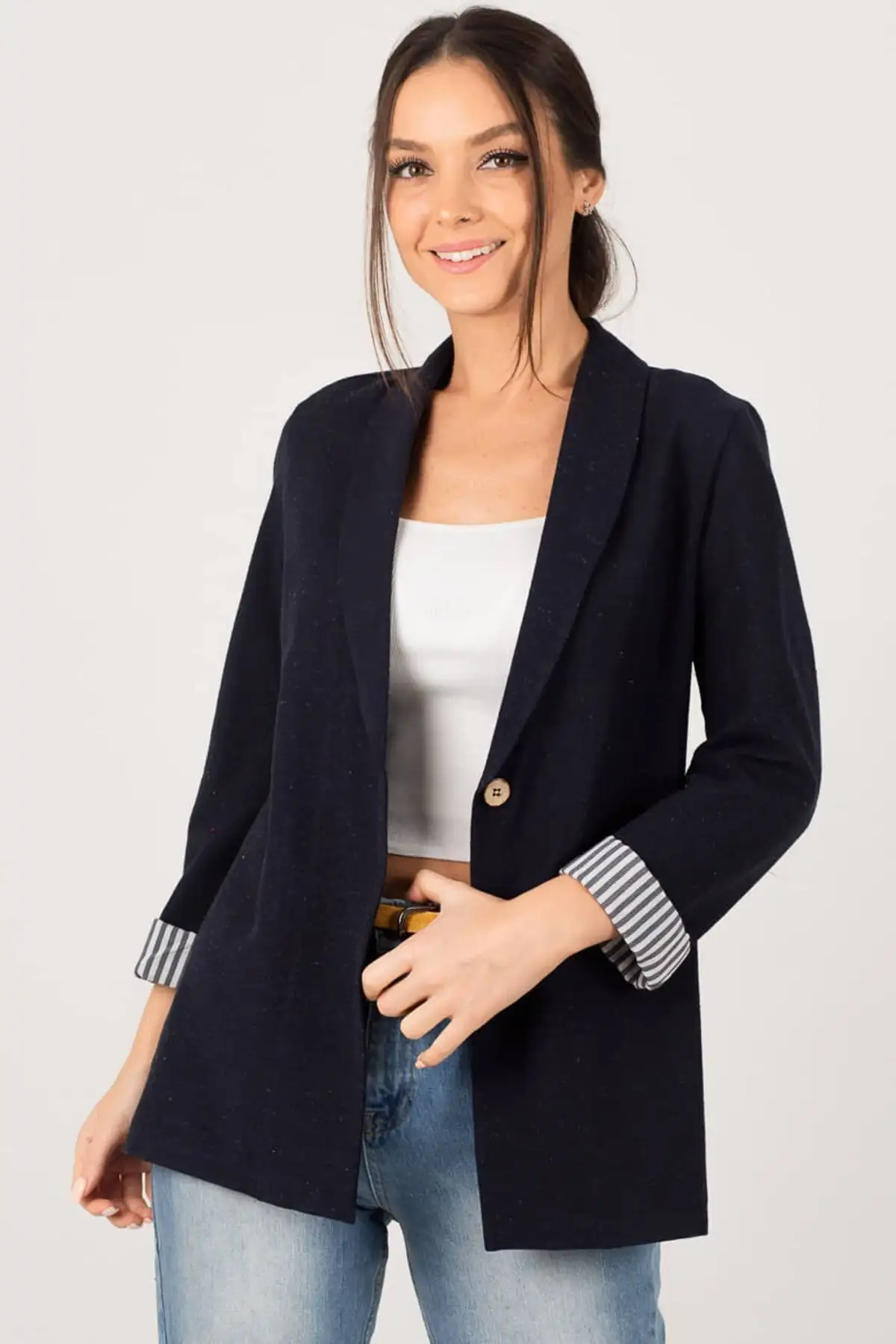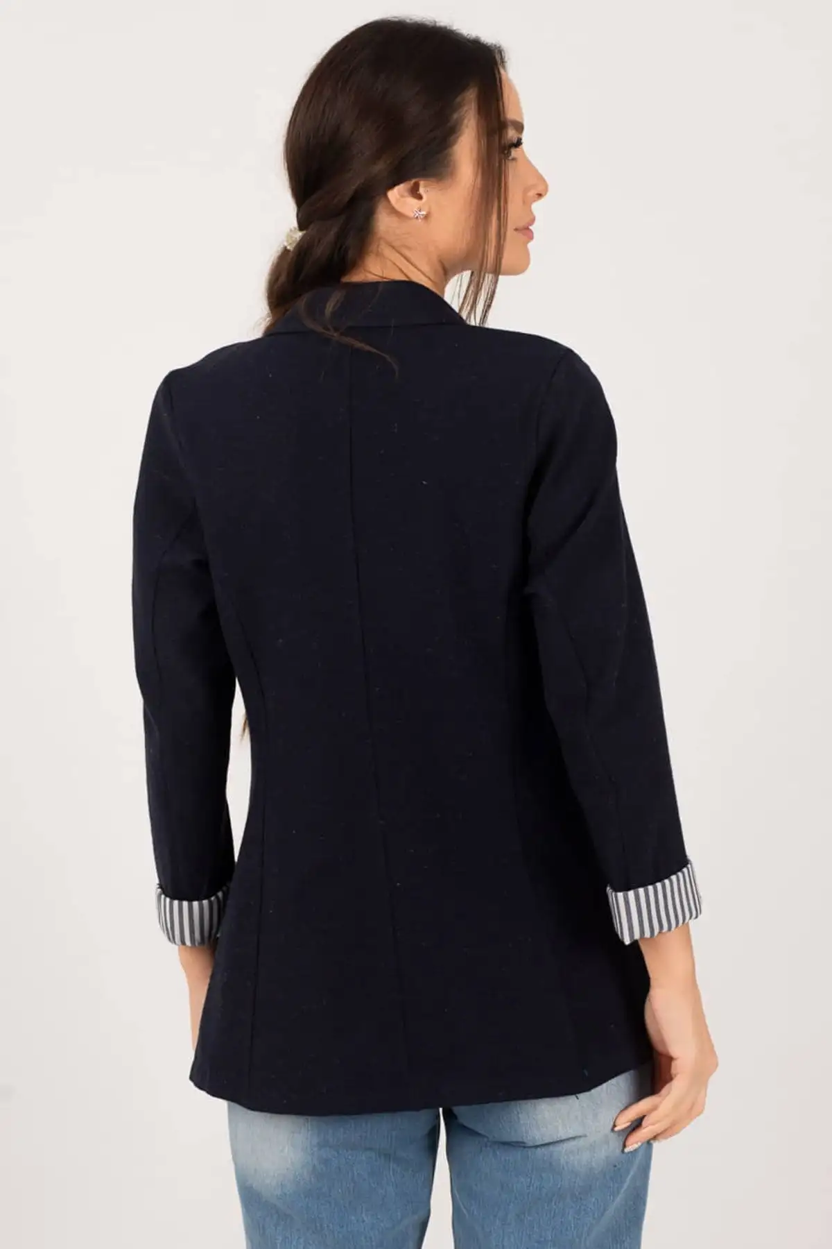 کت تک دگمهای زنانه با رنگ سرمهای تیره و آستینهای طرح دار – 11859