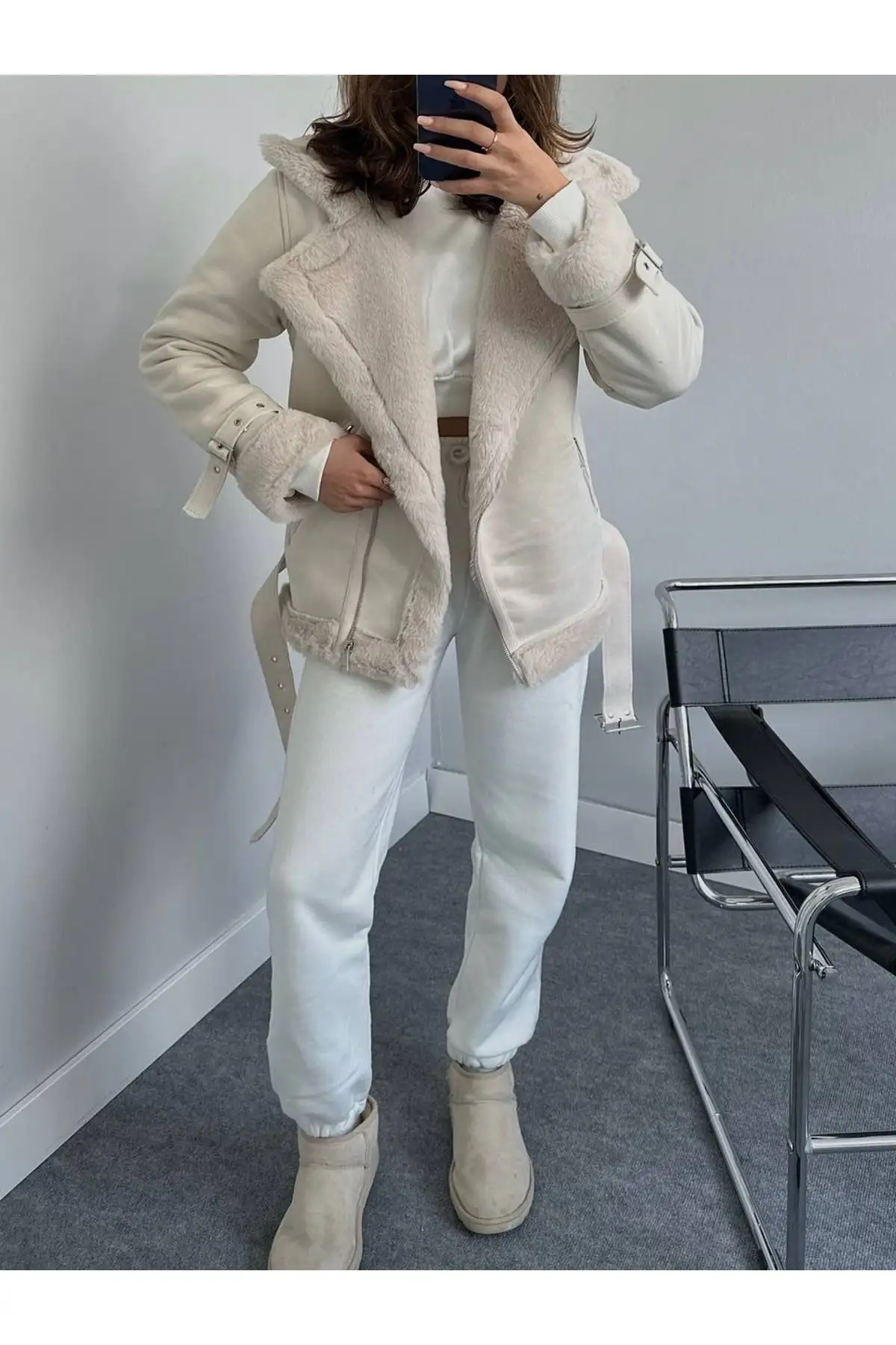 کت جیر زنانه با جزئیات کمربند و طراحی خاص فصل جدید – 9895