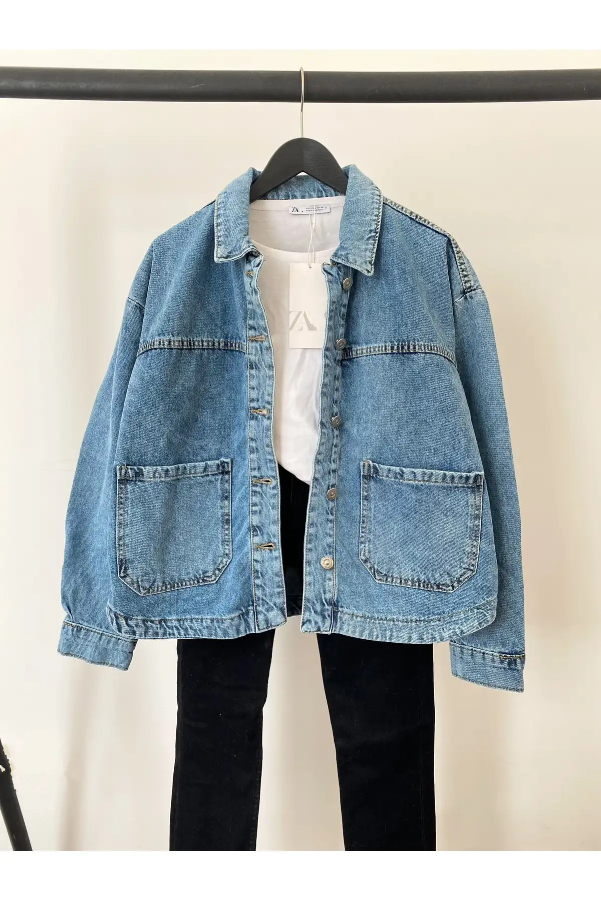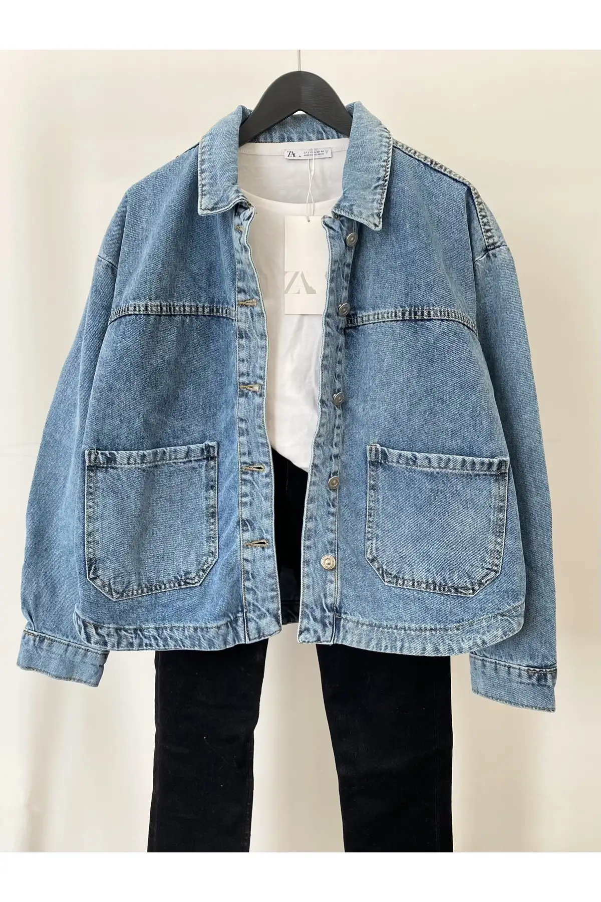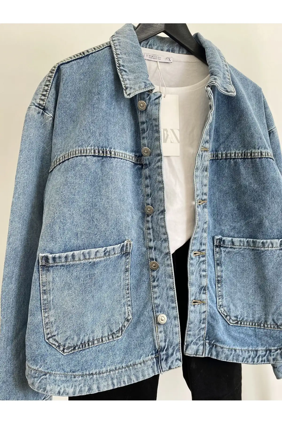 کت جین با جیبهای بزرگ قالب بزرگ زنانه