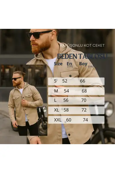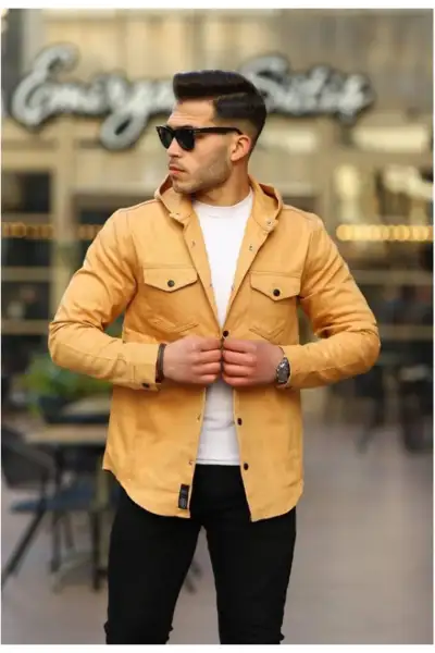کت جین کلاهدار مردانه ترک به رنگ خردلی روشن – 12883