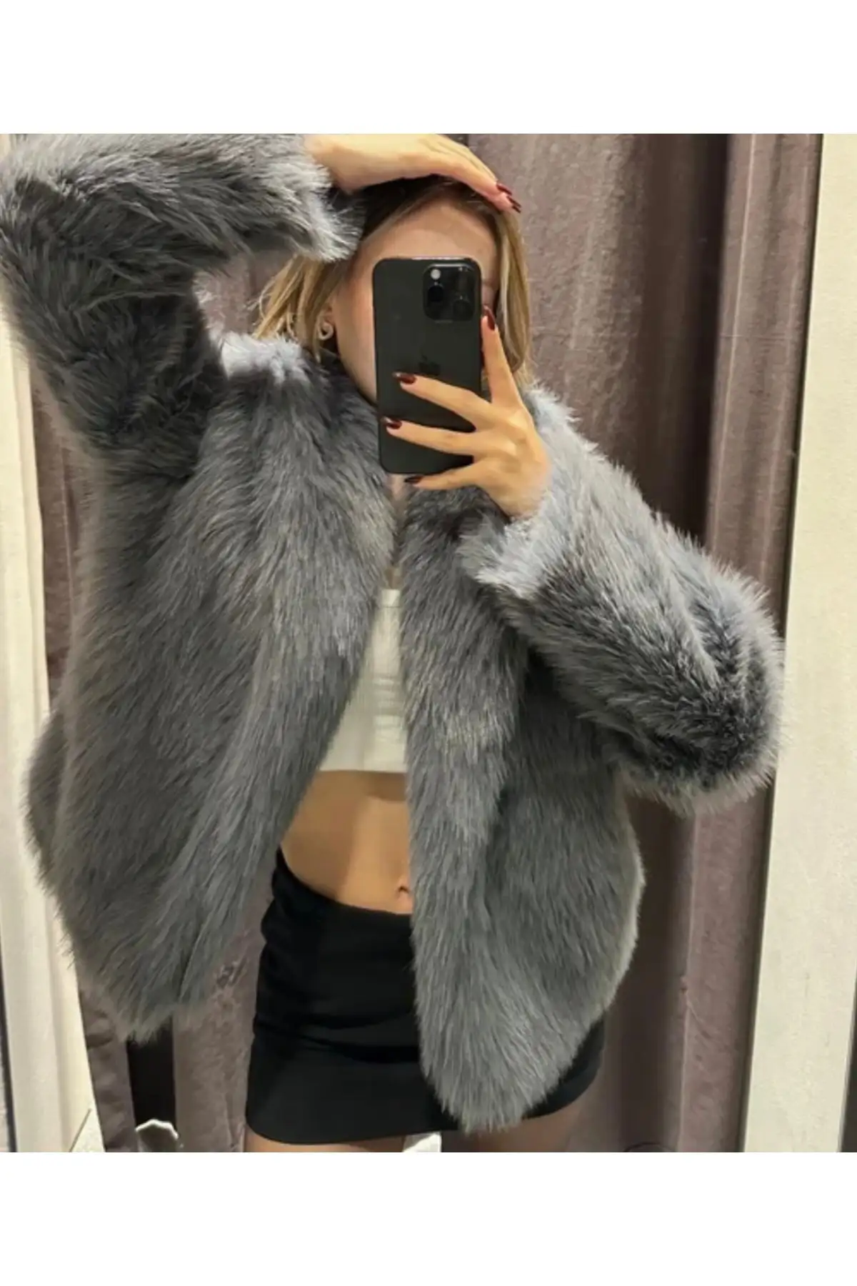 کت خز اورجینال ترک پرمیوم آنترسیت زنانه – 11908