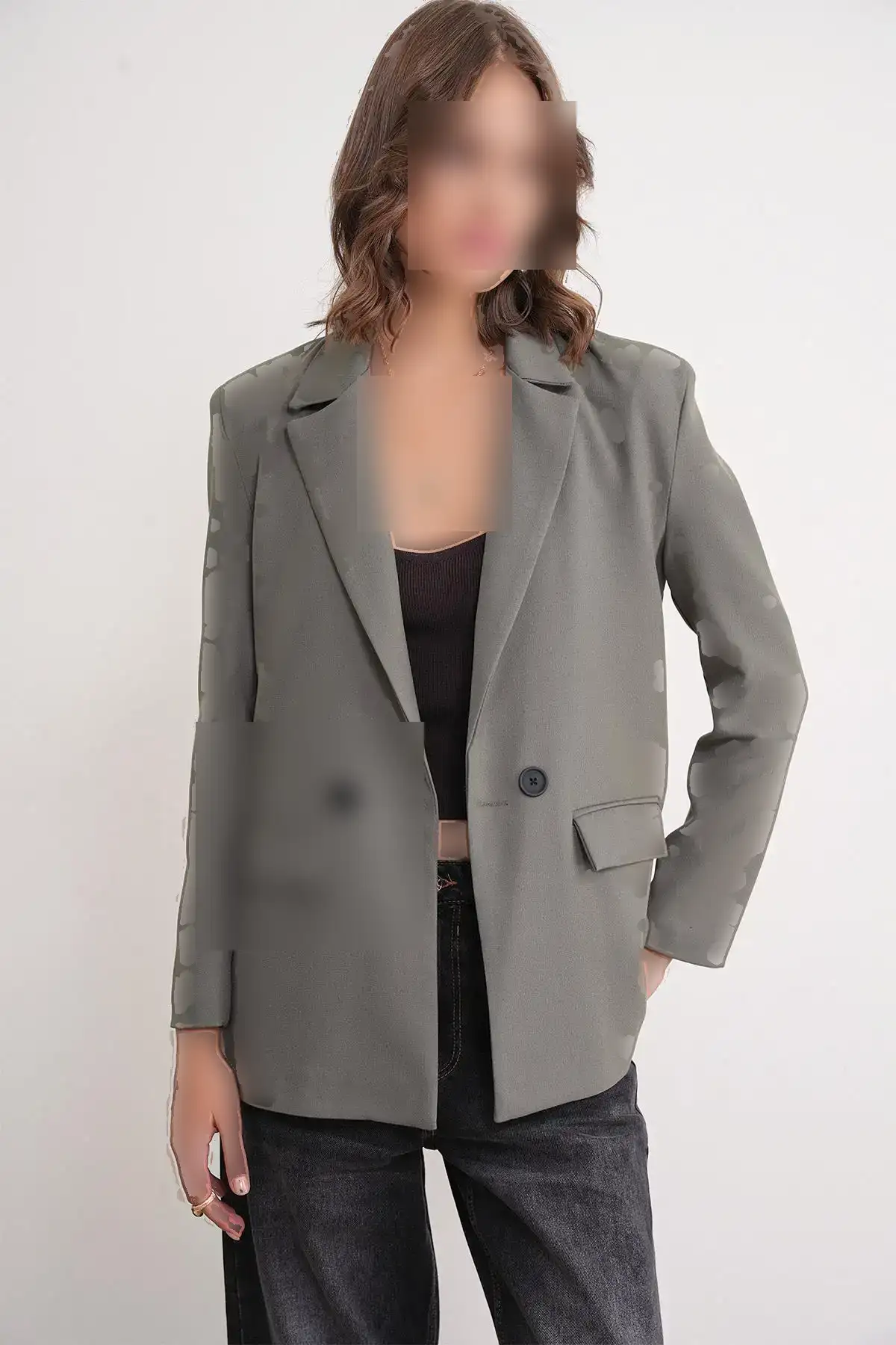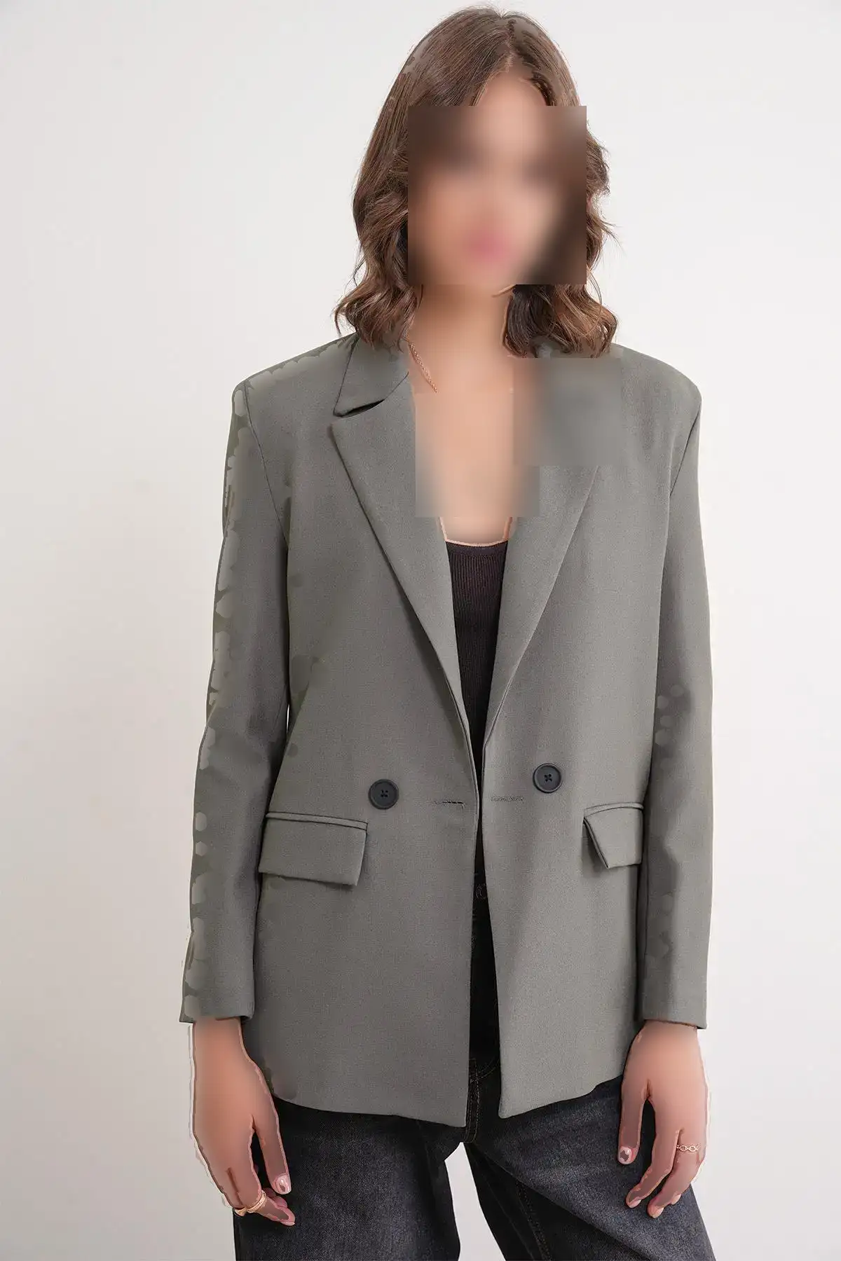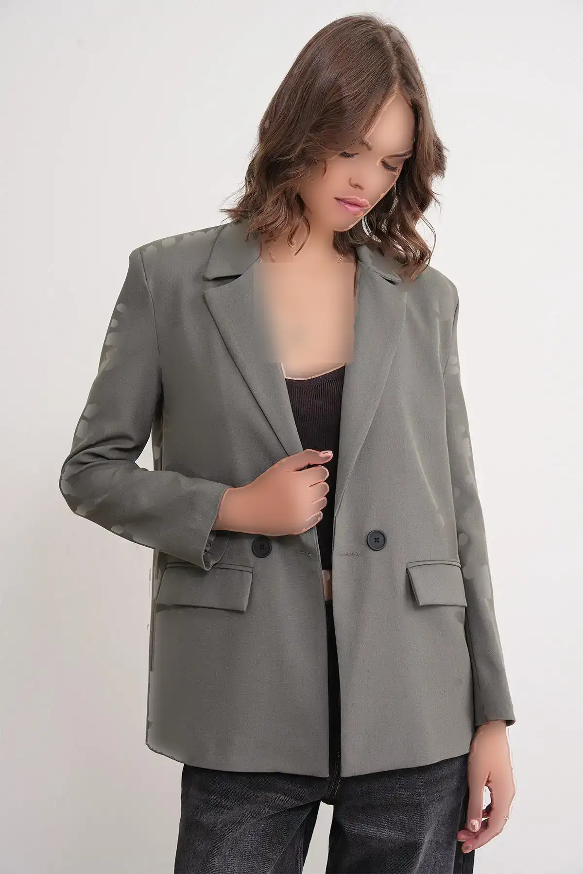 کت زنانه اداری با رنگ زیتونی ترک با طراحی شیک و مدرن، انتخابی مناسب برای استایلهای روزمره و رسمی شماست.