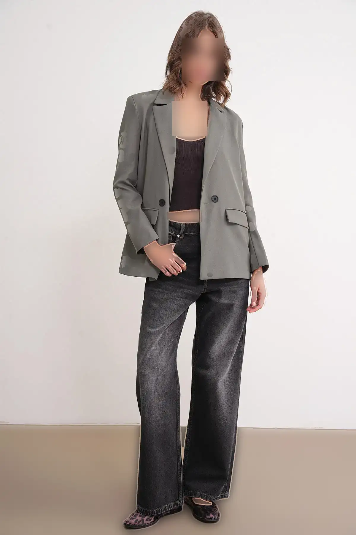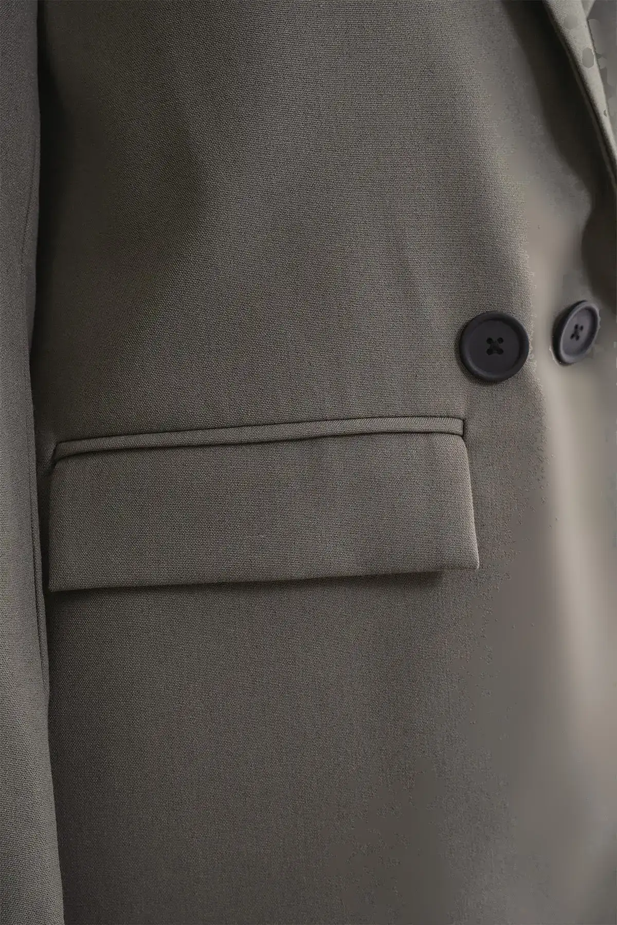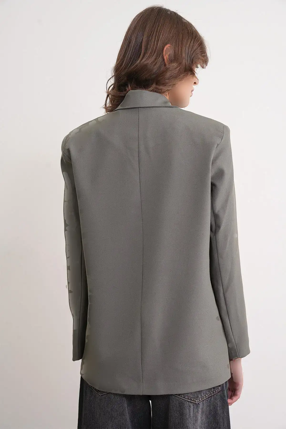 کت زنانه اداری با رنگ زیتونی ترک با طراحی شیک و مدرن، انتخابی مناسب برای استایلهای روزمره و رسمی شماست.