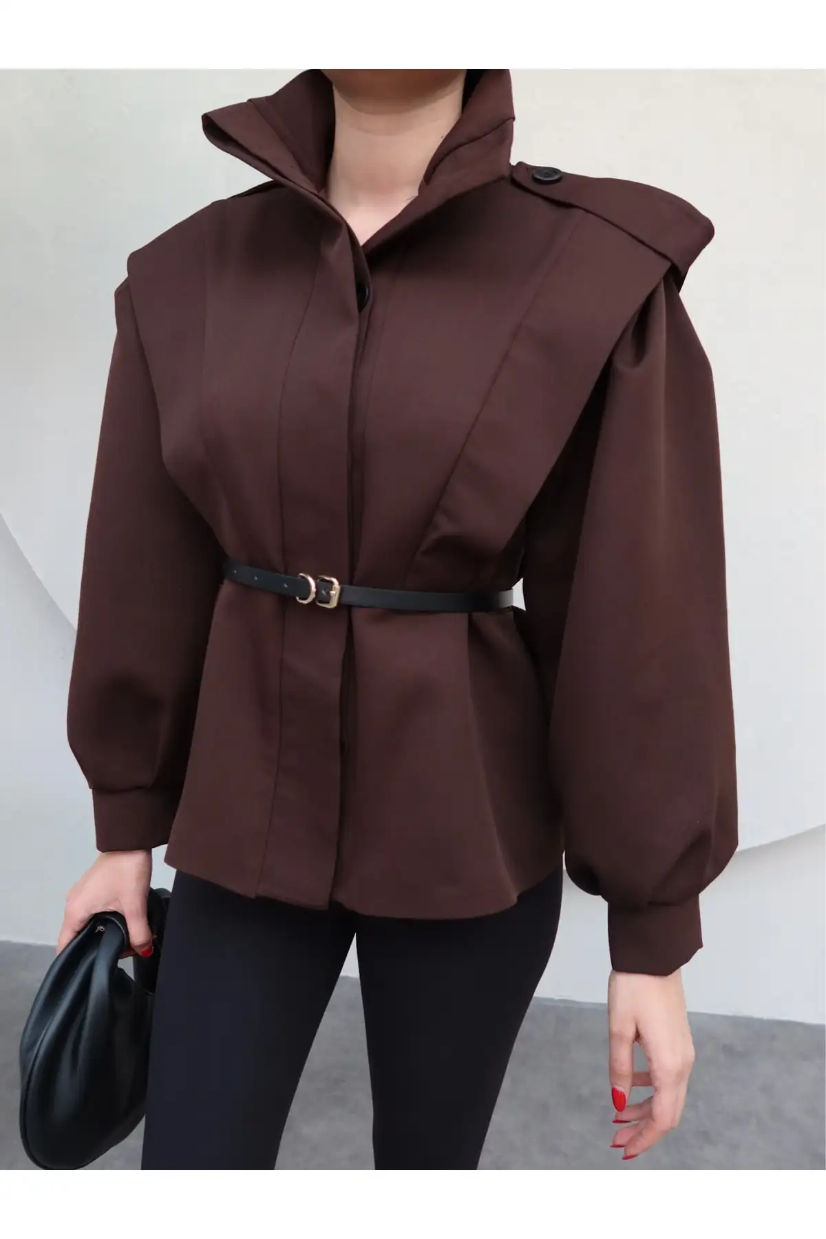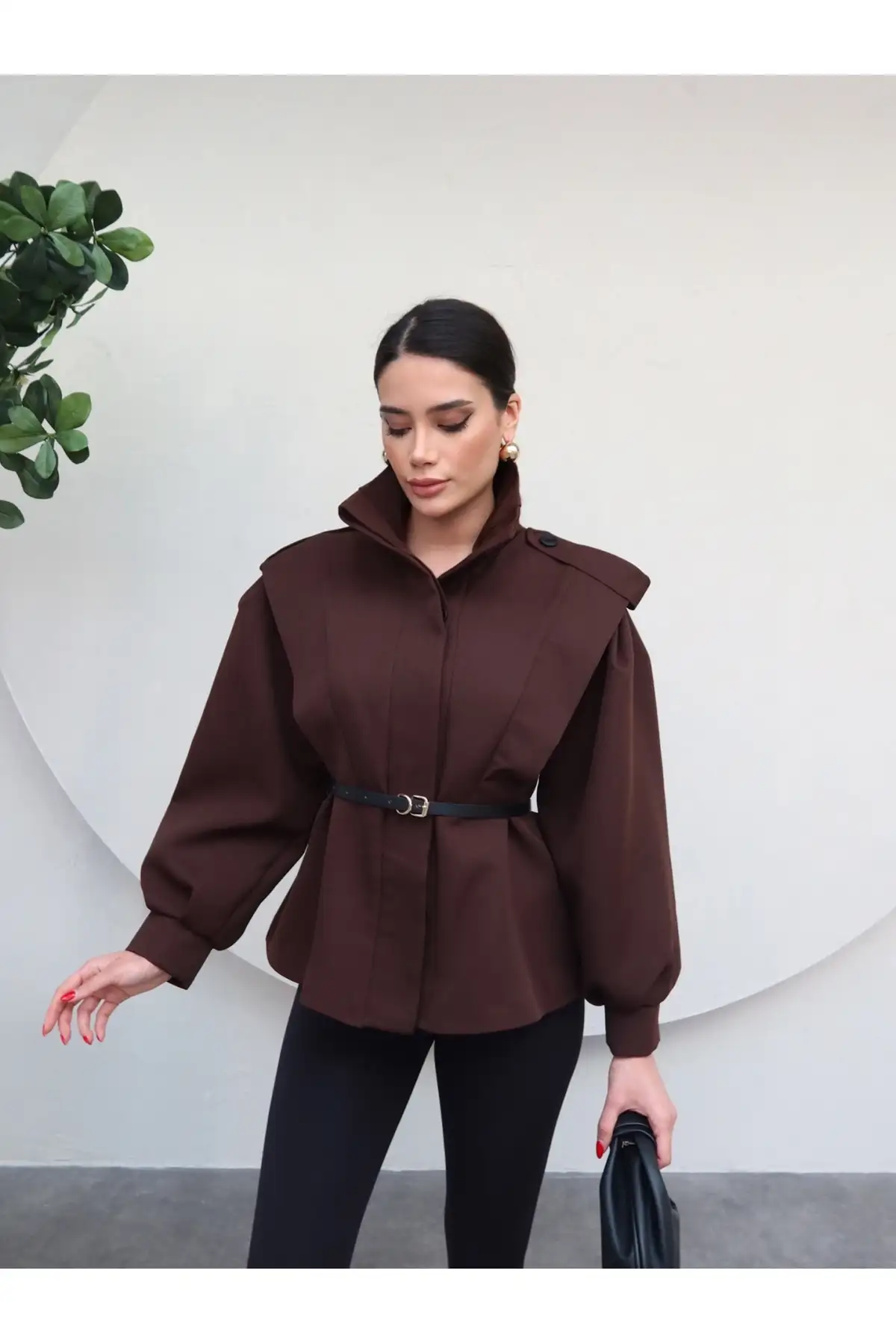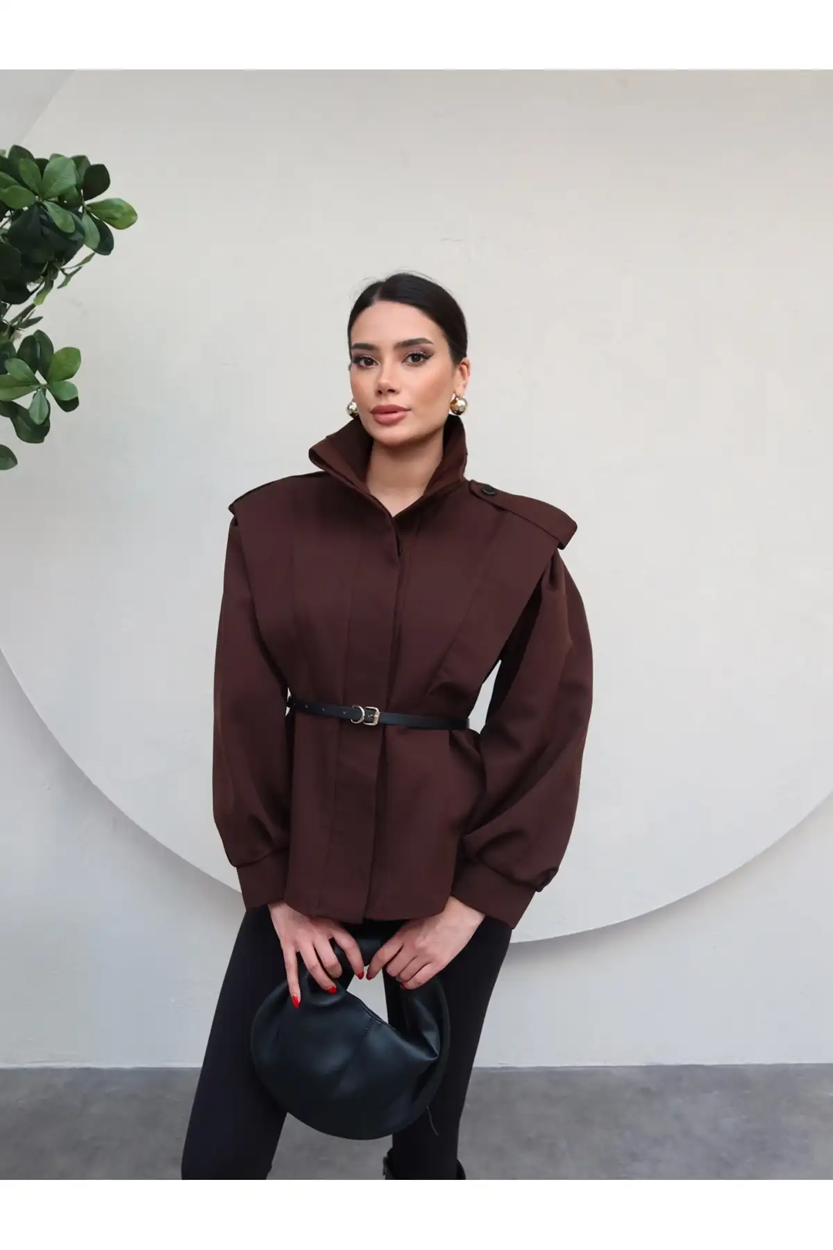 کت زنانه ترک با کمر رنگ قهوهای تلخ